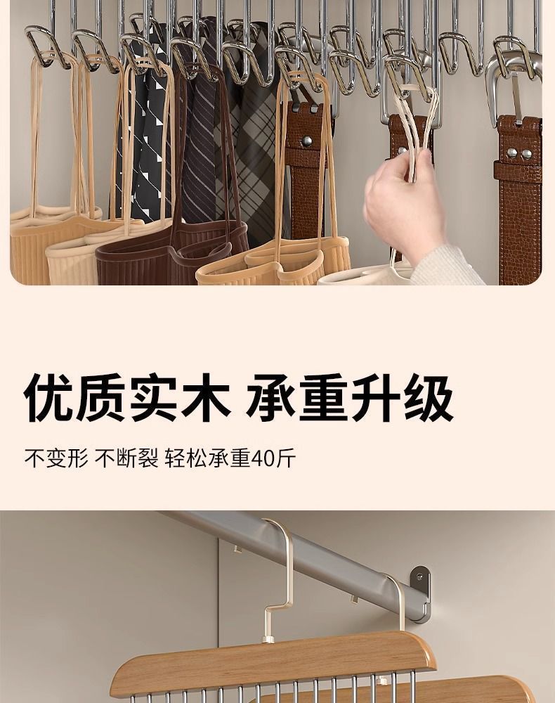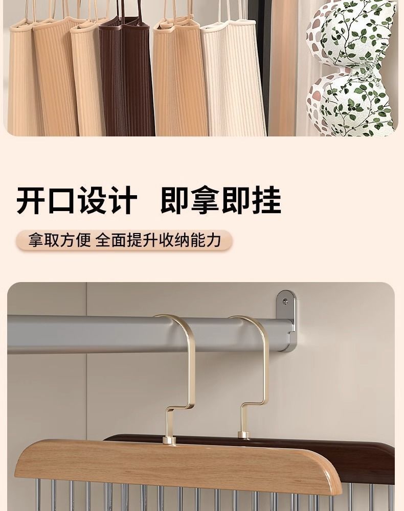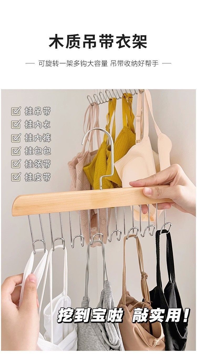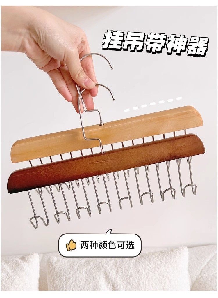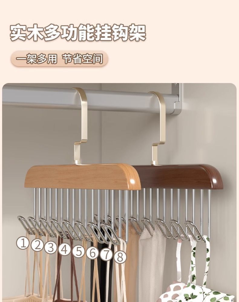 吊带衣架木质家用多功能内衣背心收纳多钩宿舍实木挂钩波浪除螨垫