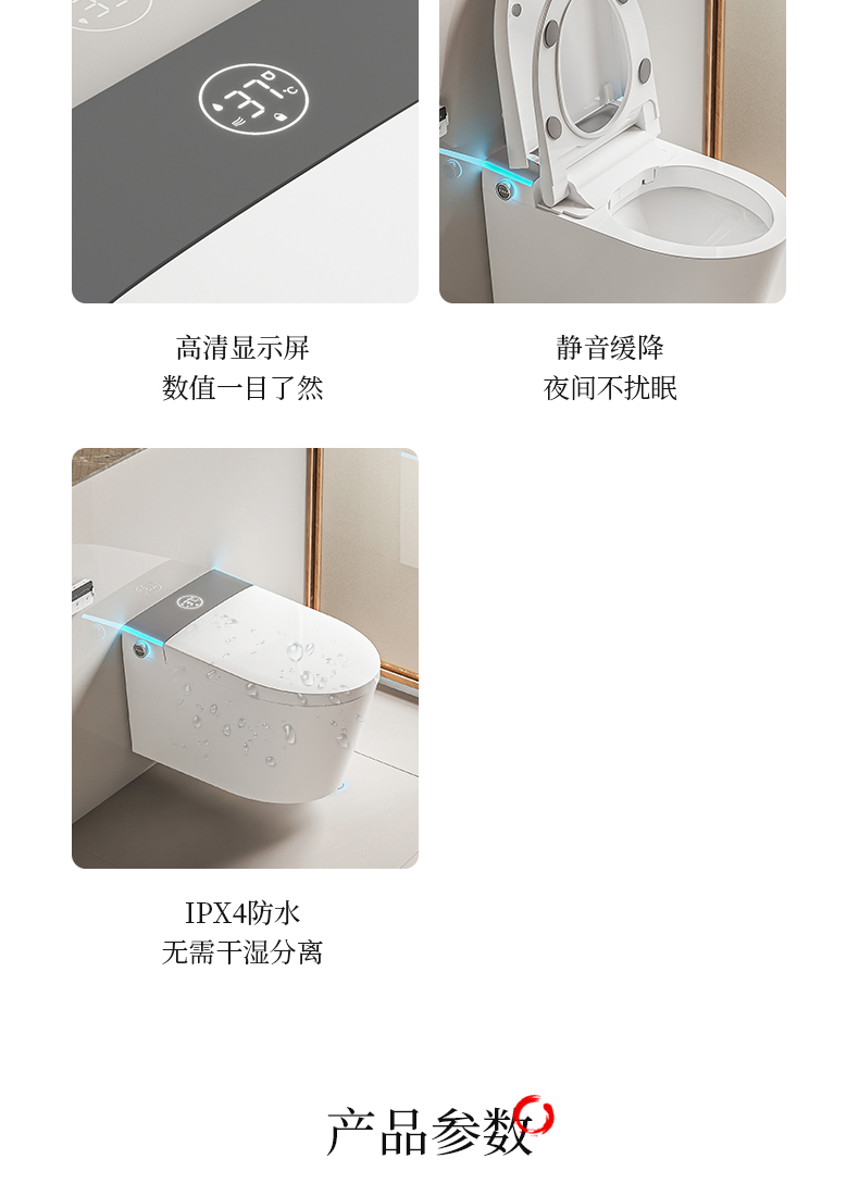 日本横田正野壁挂式智能马桶隐藏式内置泡沫盾脚感全自动墙排坐便