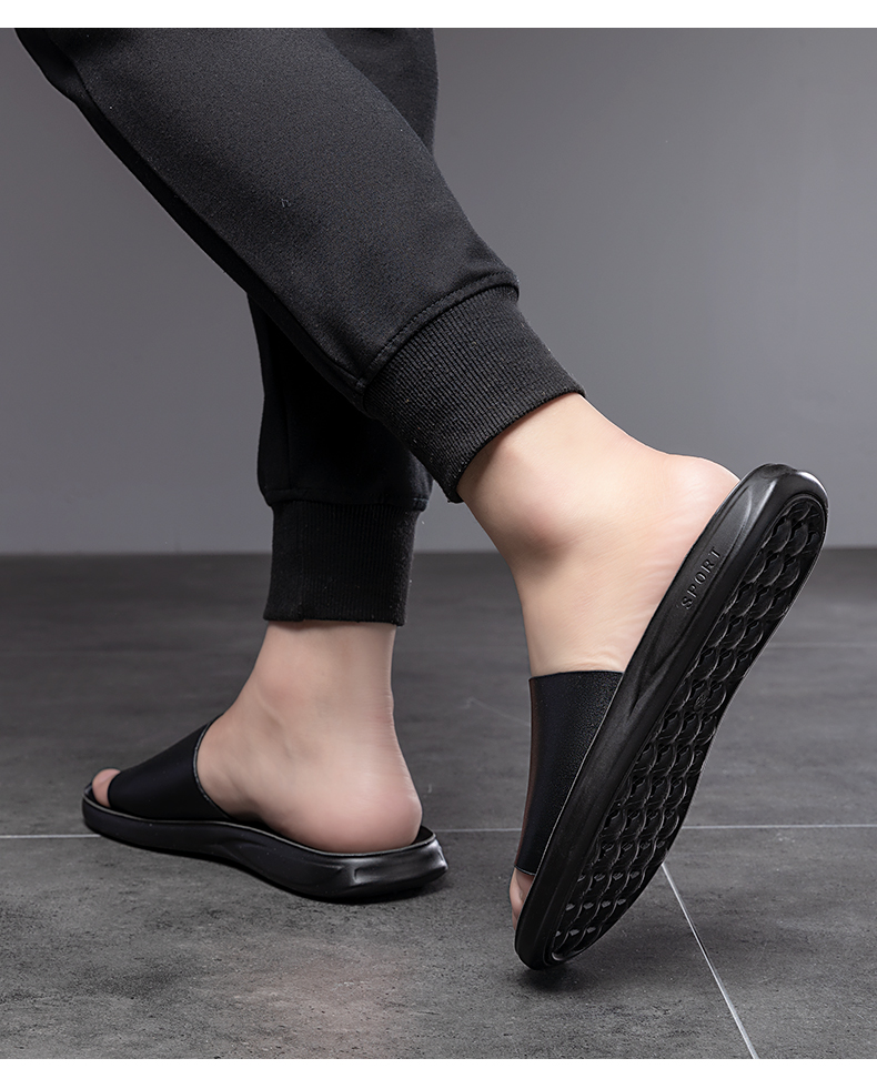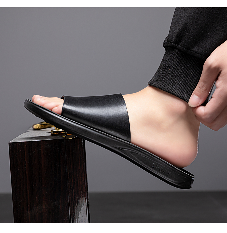 真皮凉鞋男夏季外穿拖鞋凉拖一字拖韩版沙滩鞋防滑时尚室外拖鞋潮