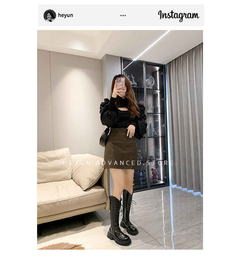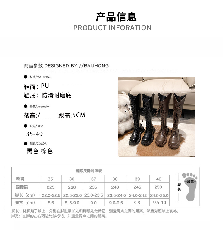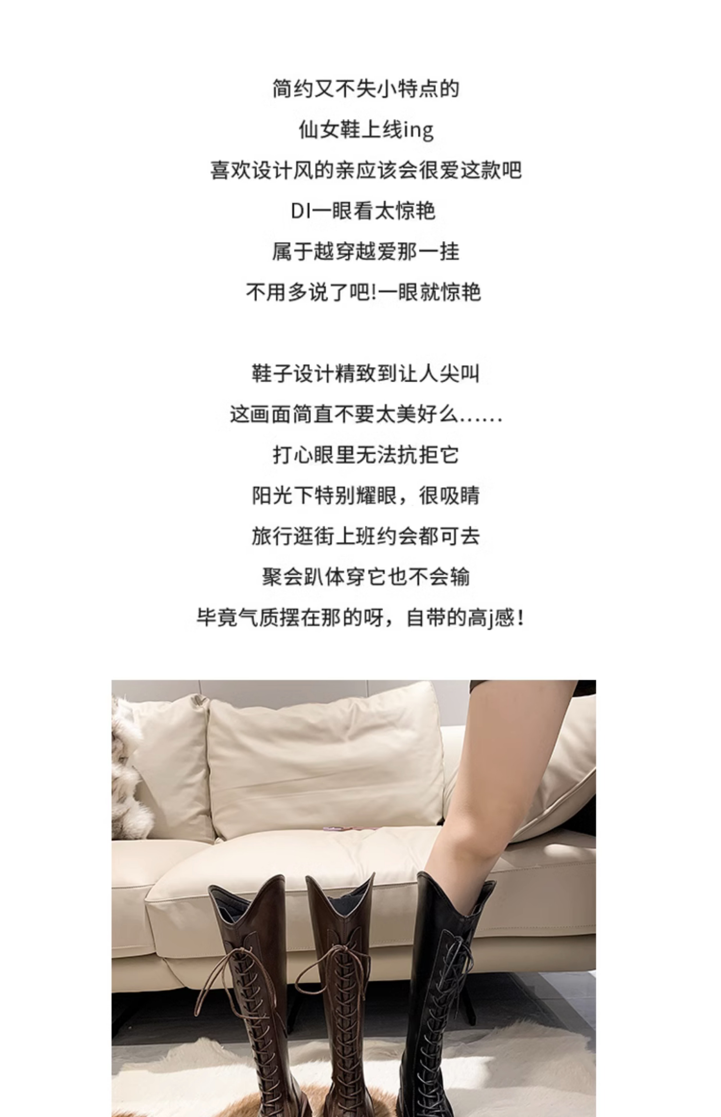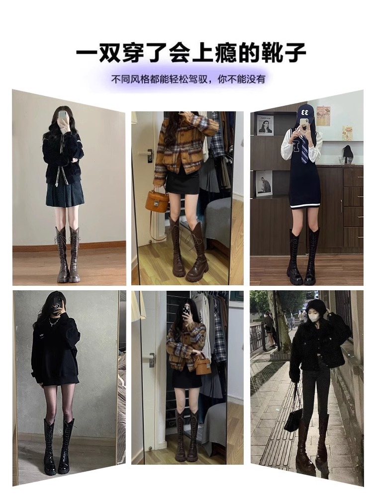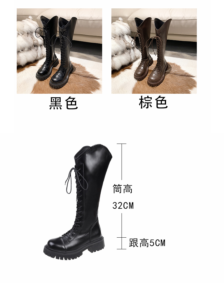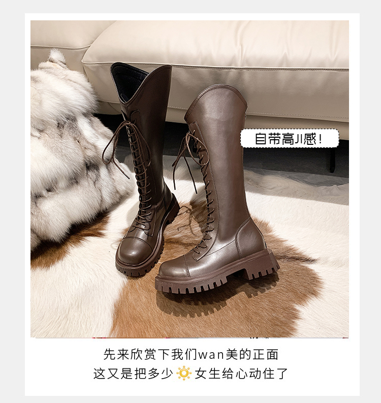 厚底棕色长筒靴v口骑士靴小粗腿长靴胖mm大筒围高筒靴大码女靴子