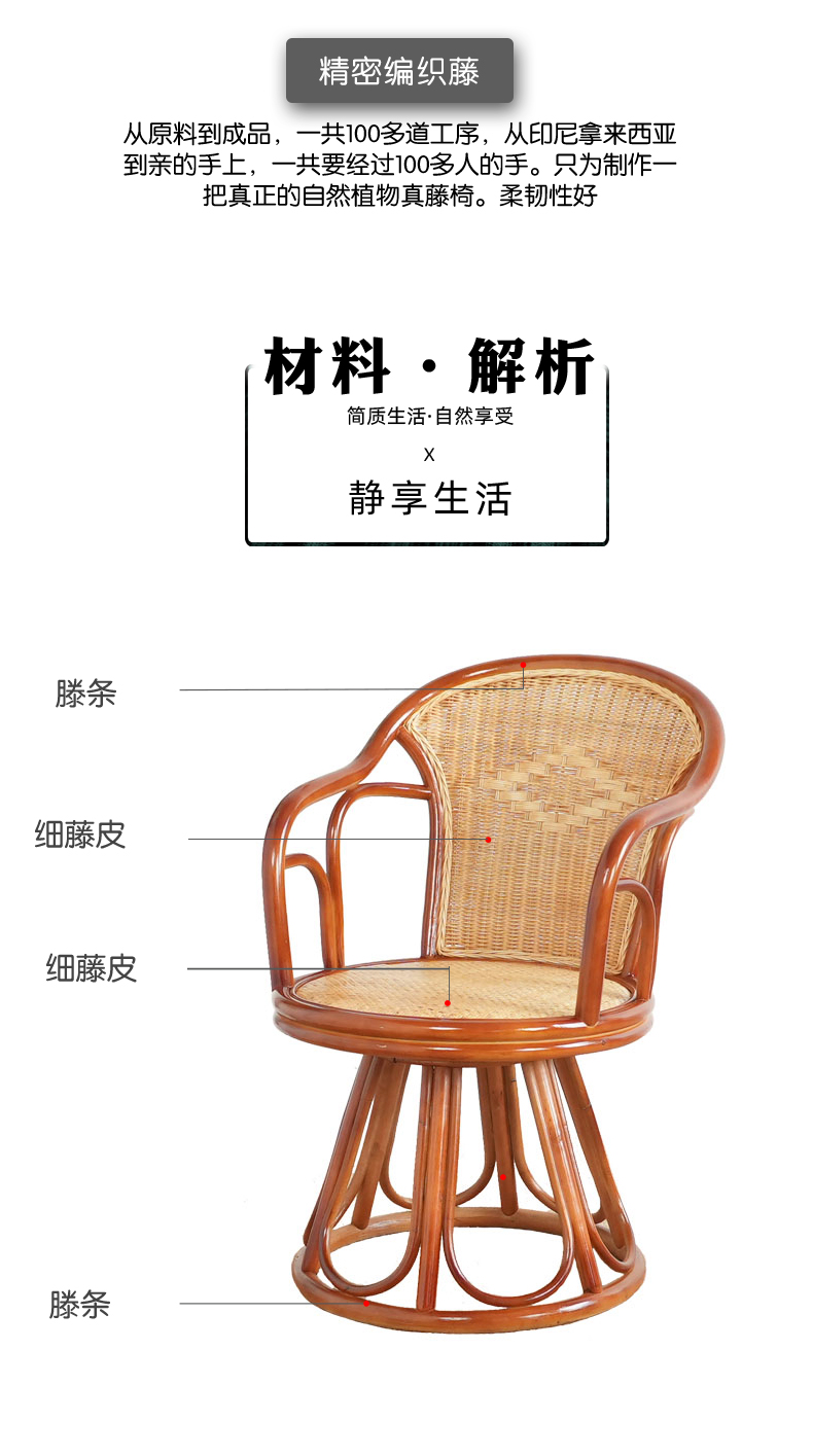 旋转带轮藤编阳台藤椅办公电脑座椅网红直播书房学习靠背家用椅子