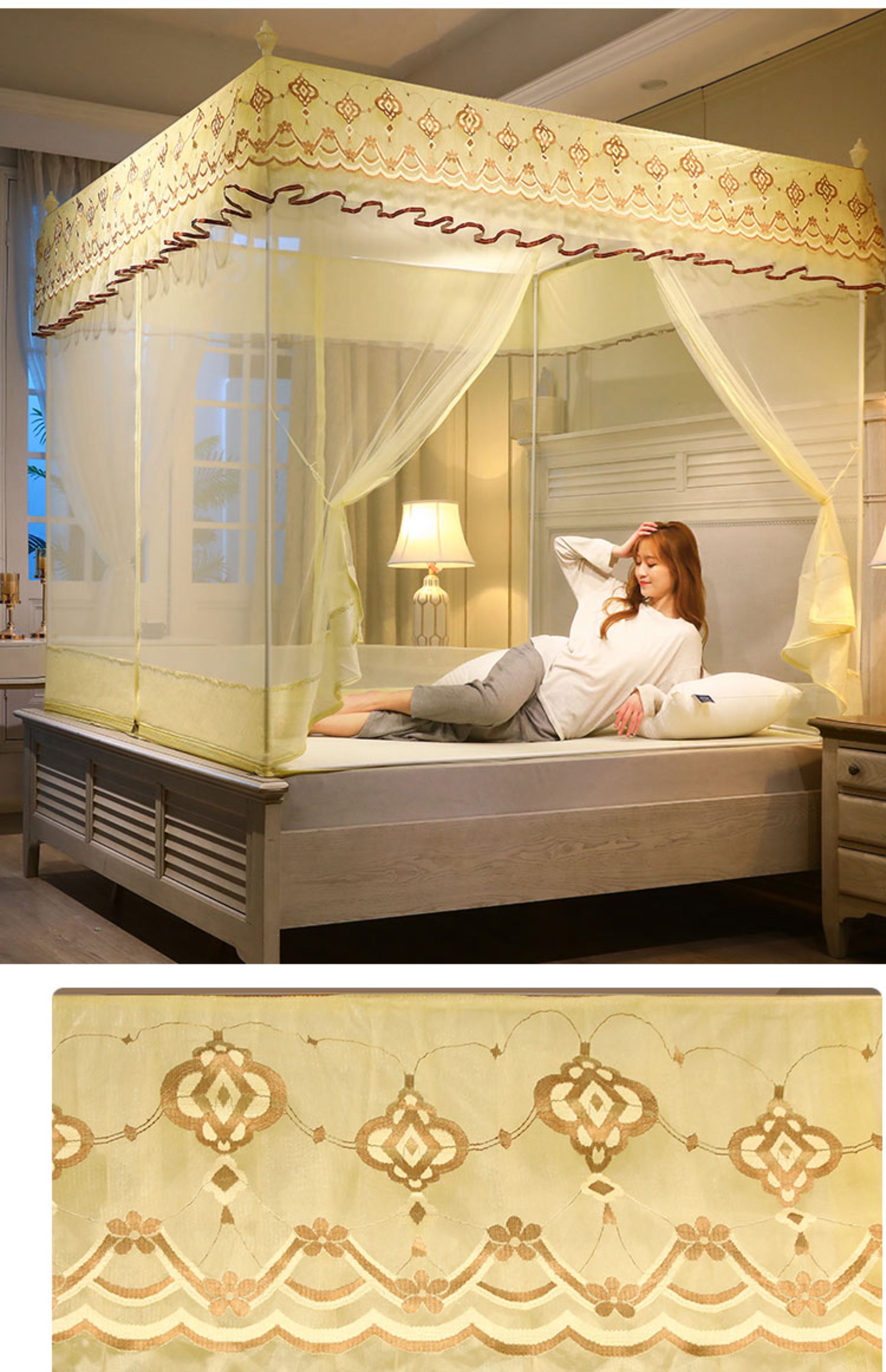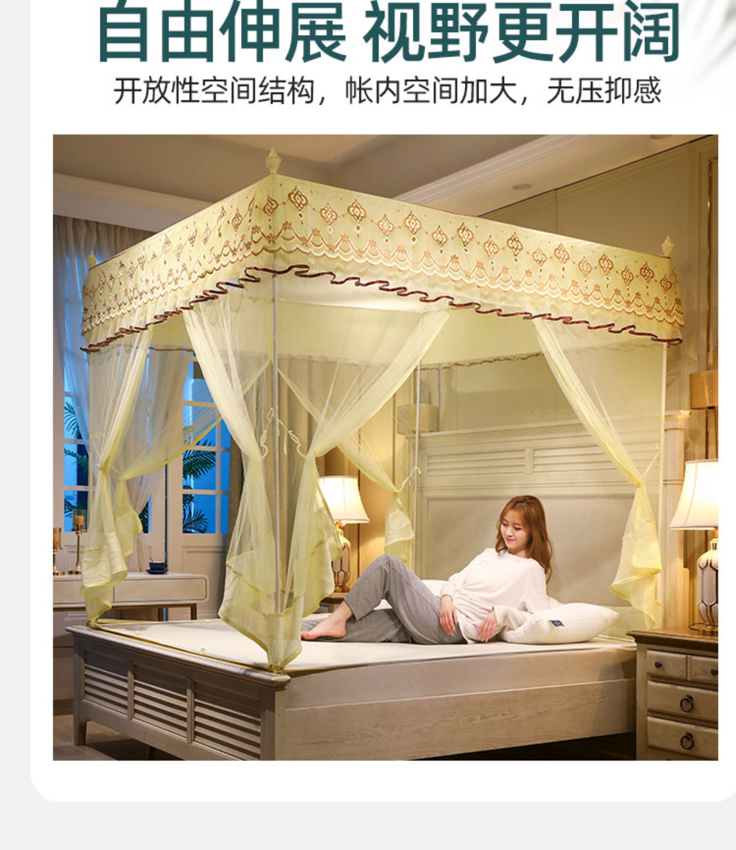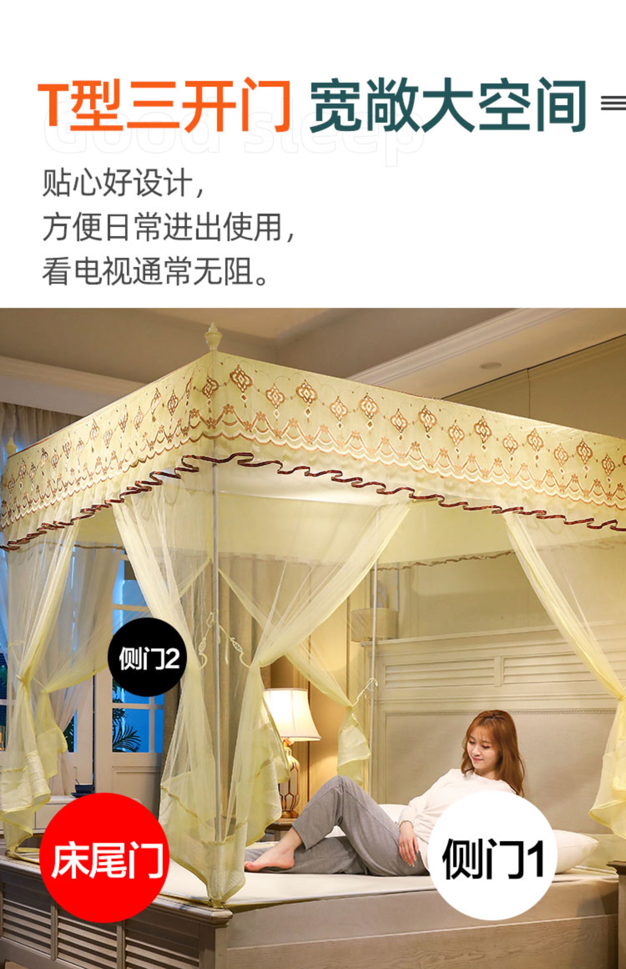 蚊帐家用2025新款高级蒙古包免安装纹账2025加厚支架防摔儿童卧室