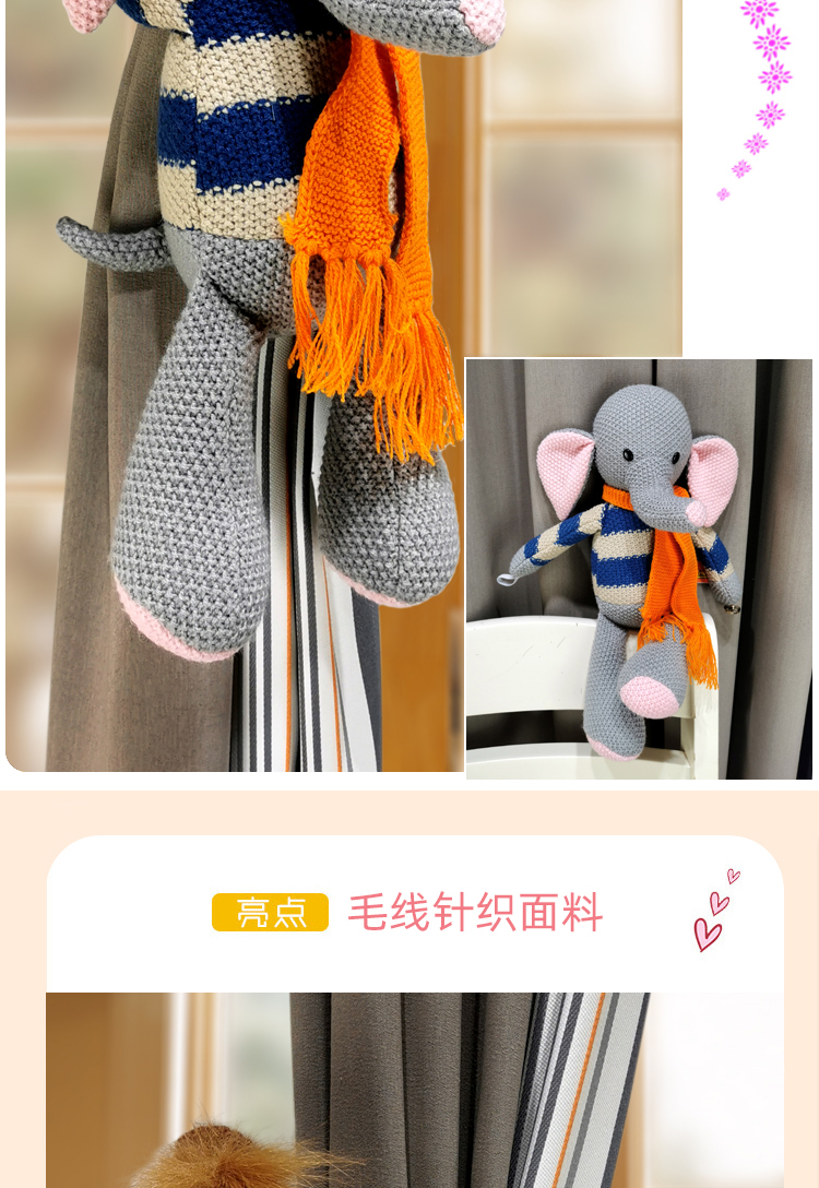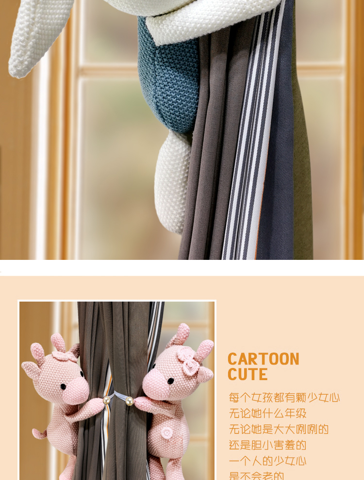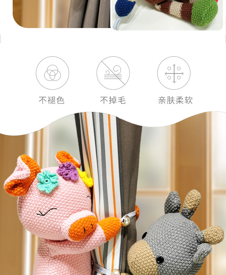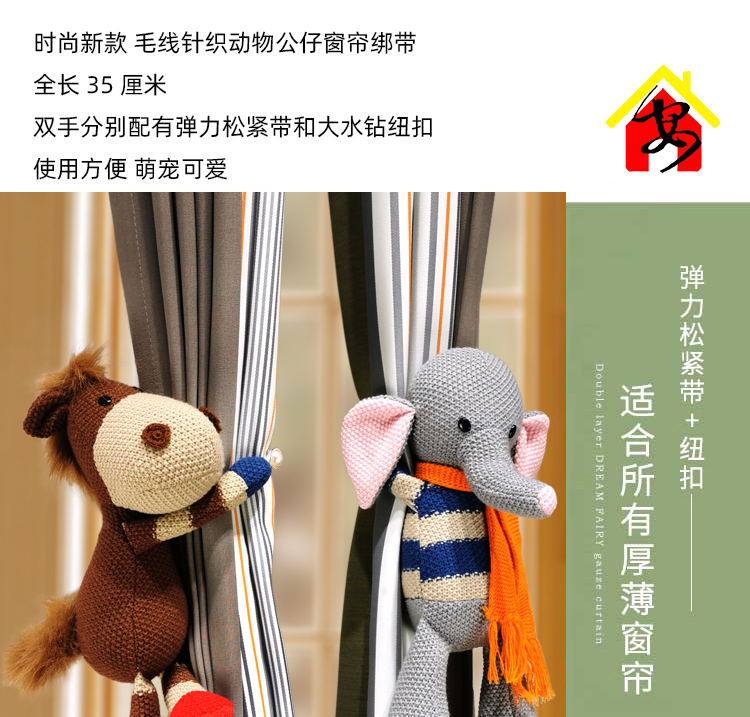 可爱窗帘绑带扣挂饰动物公仔扎束带绳儿童装饰点缀配件小饰品绑饰