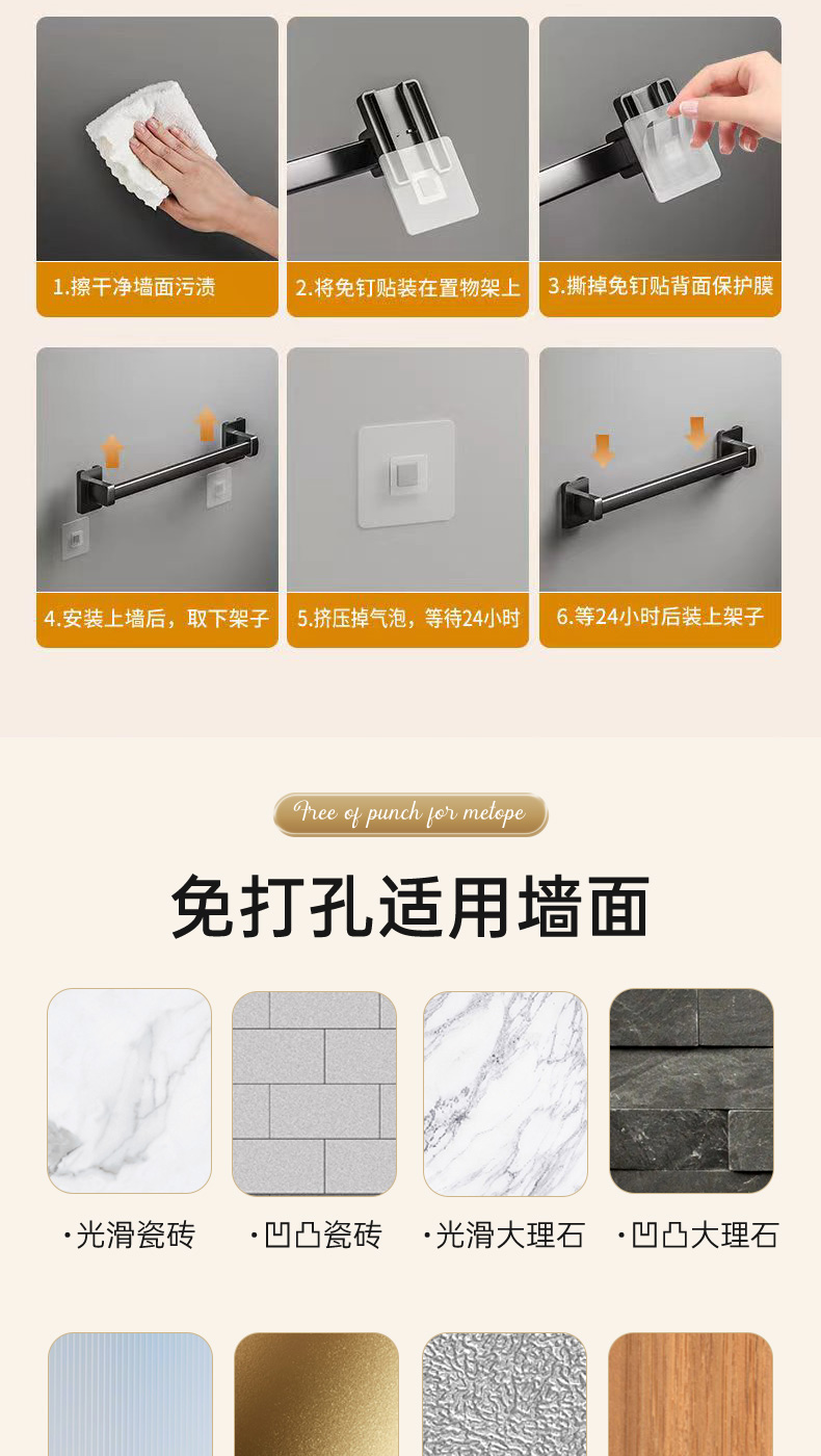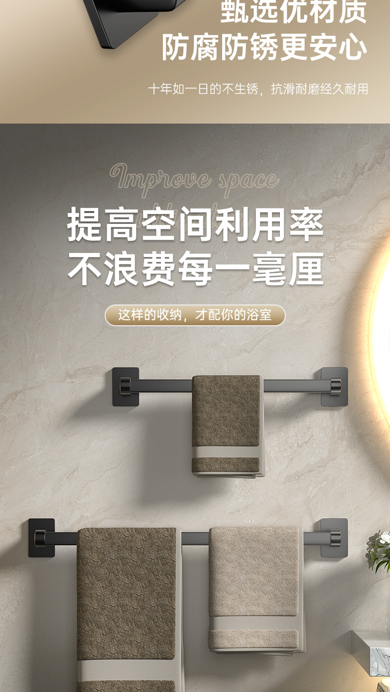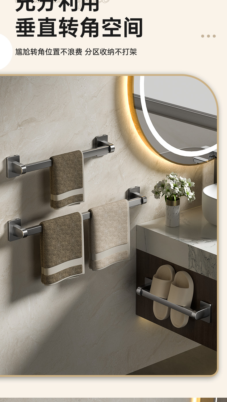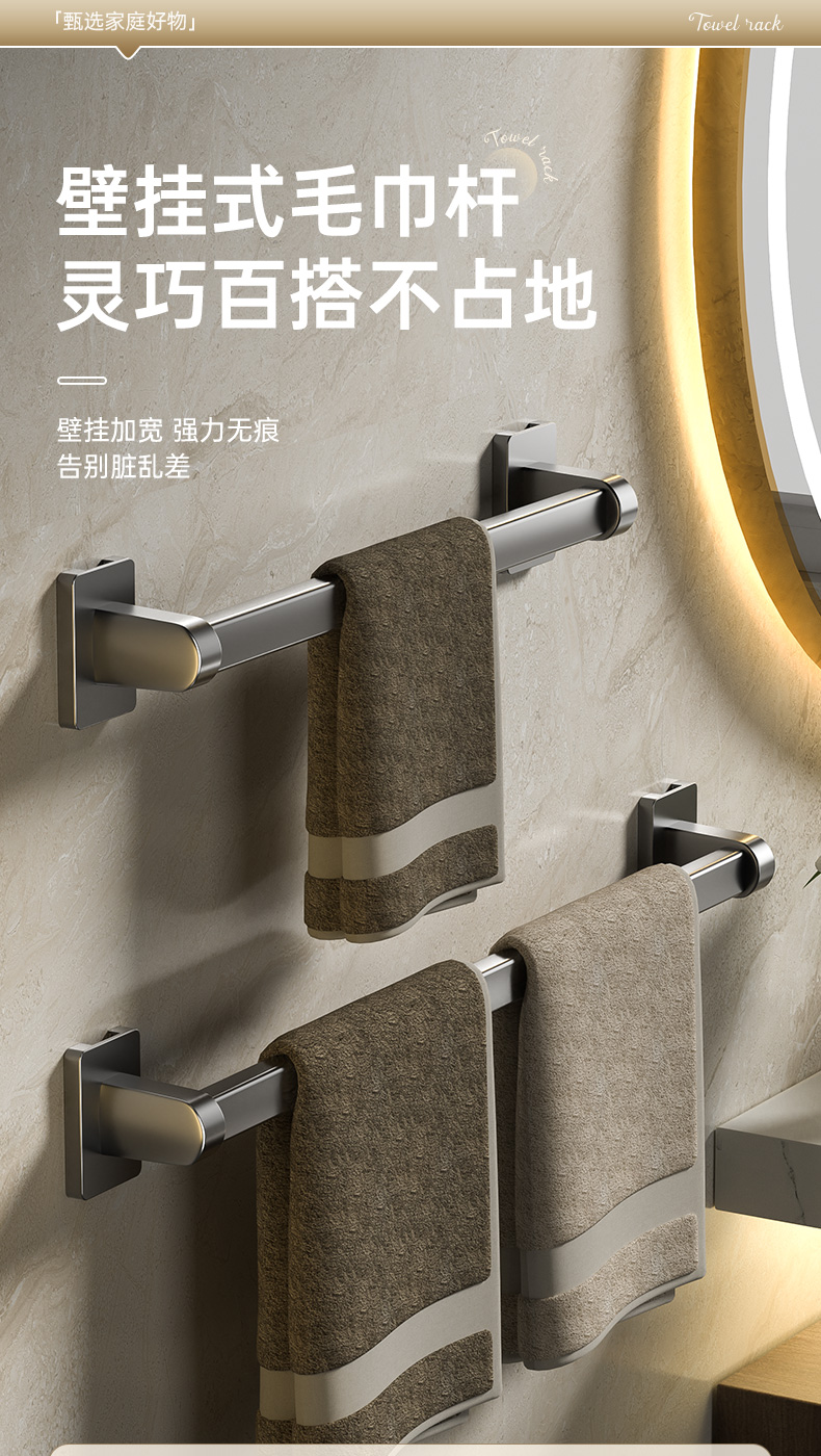 毛巾架子卫生间免打孔壁挂置物架浴室毛巾单杆厕所洗手间收纳挂架