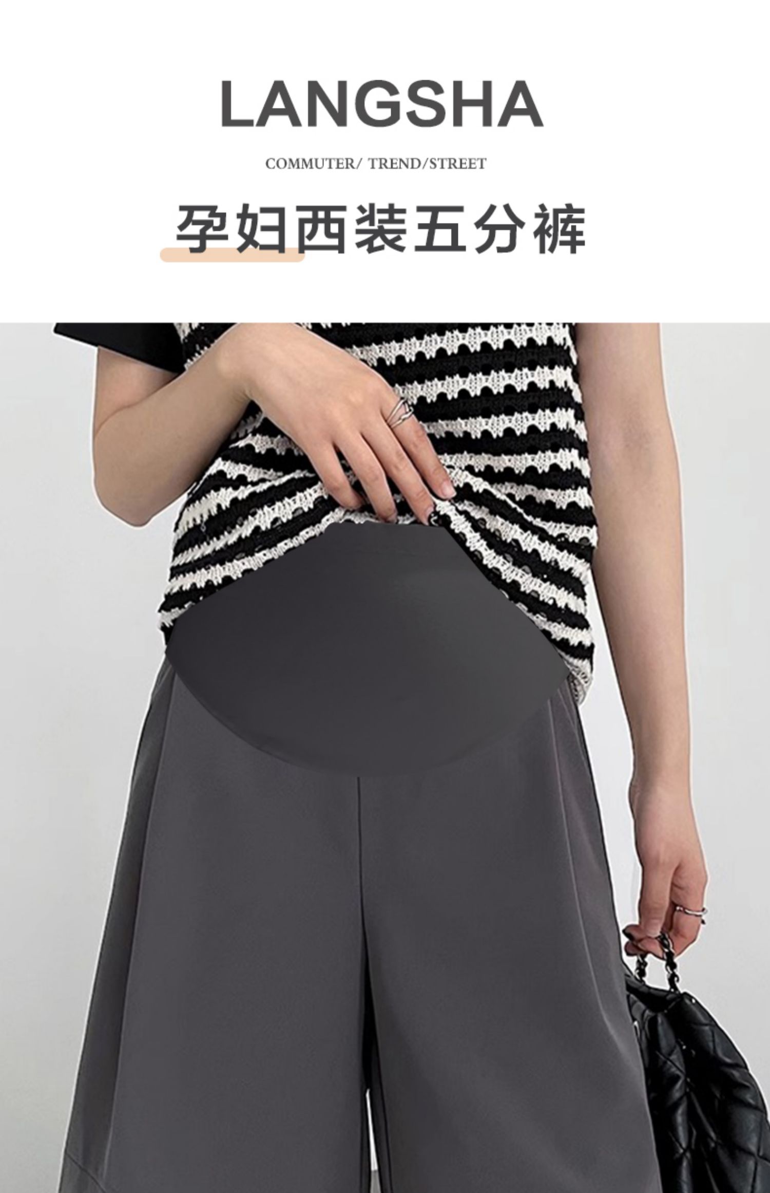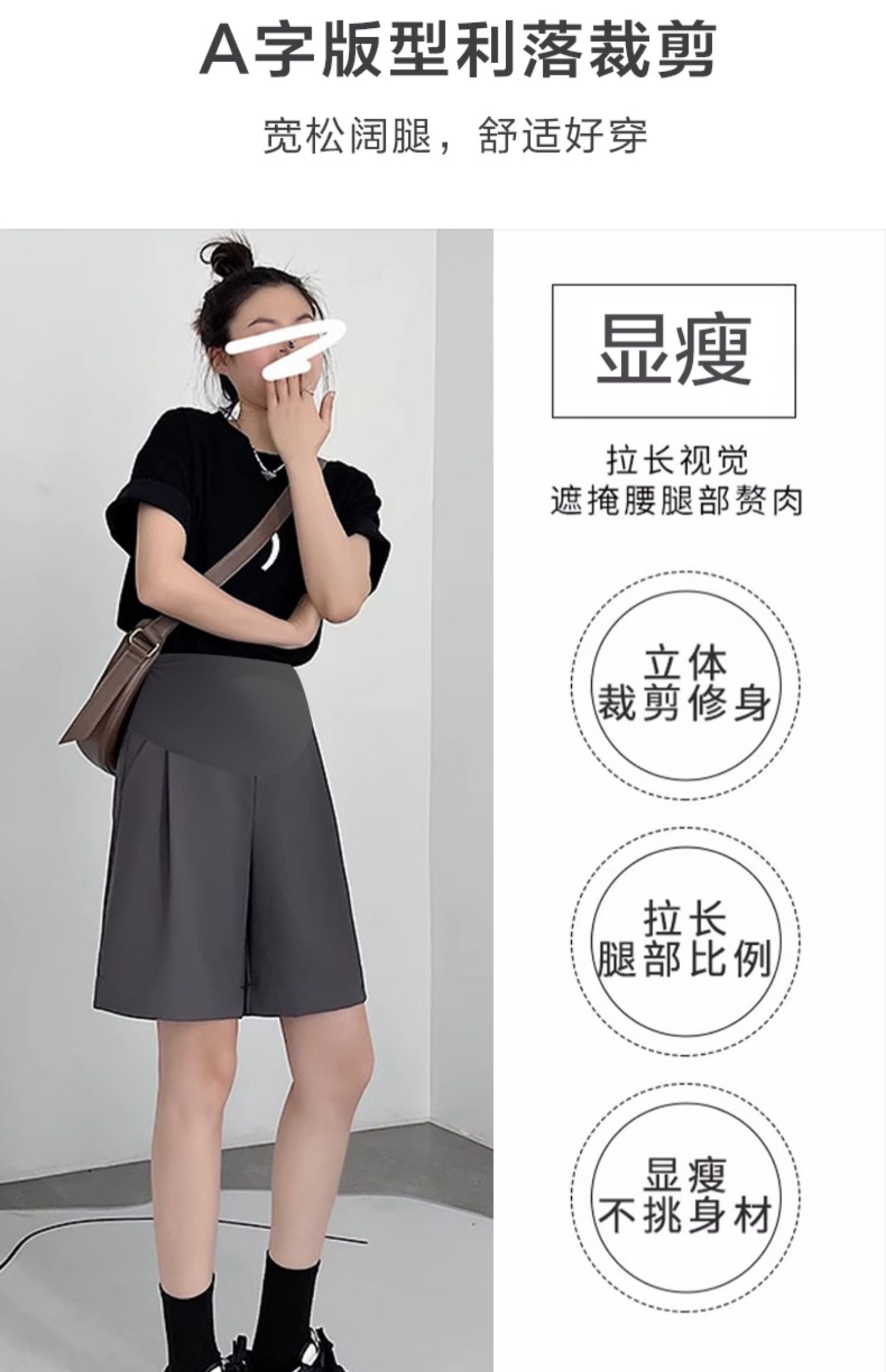 浪莎孕妇短裤夏季薄款外穿孕妇裤小个子休闲西装五分裤孕妇装夏装