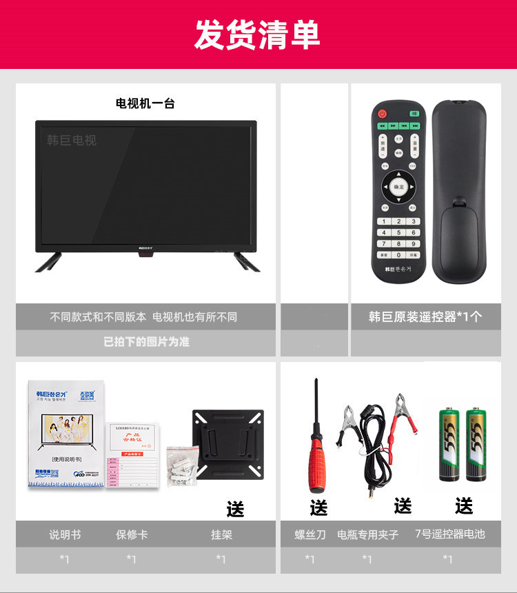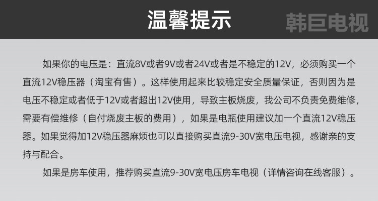 韩巨12V伏直流电视机房车电视车载显示屏智能网络平板液晶小电视