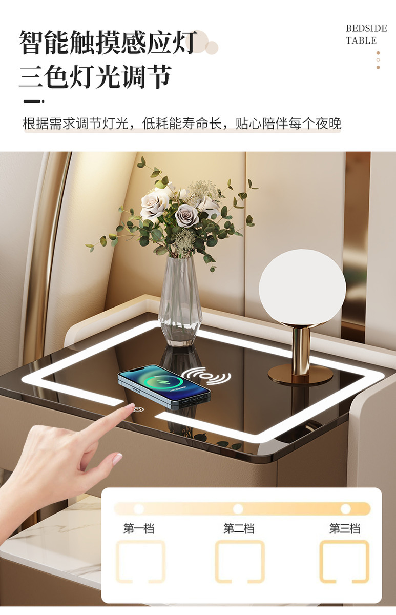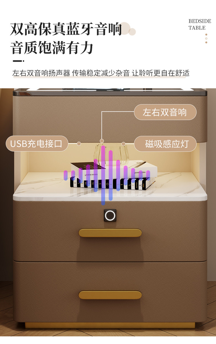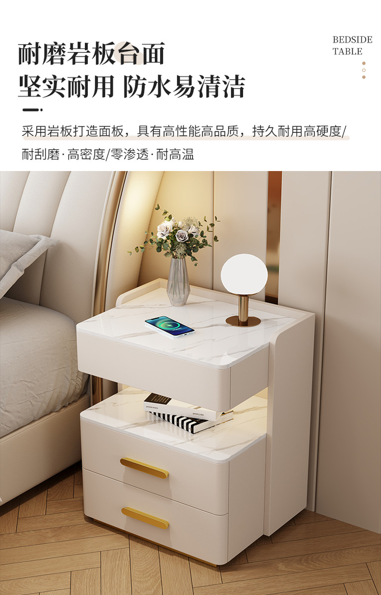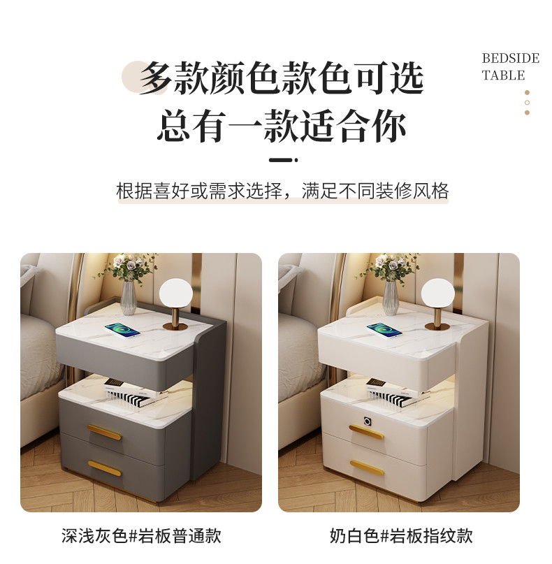 智能岩板床头柜多功能收纳柜实木家用卧室床边柜保险柜充电储物柜