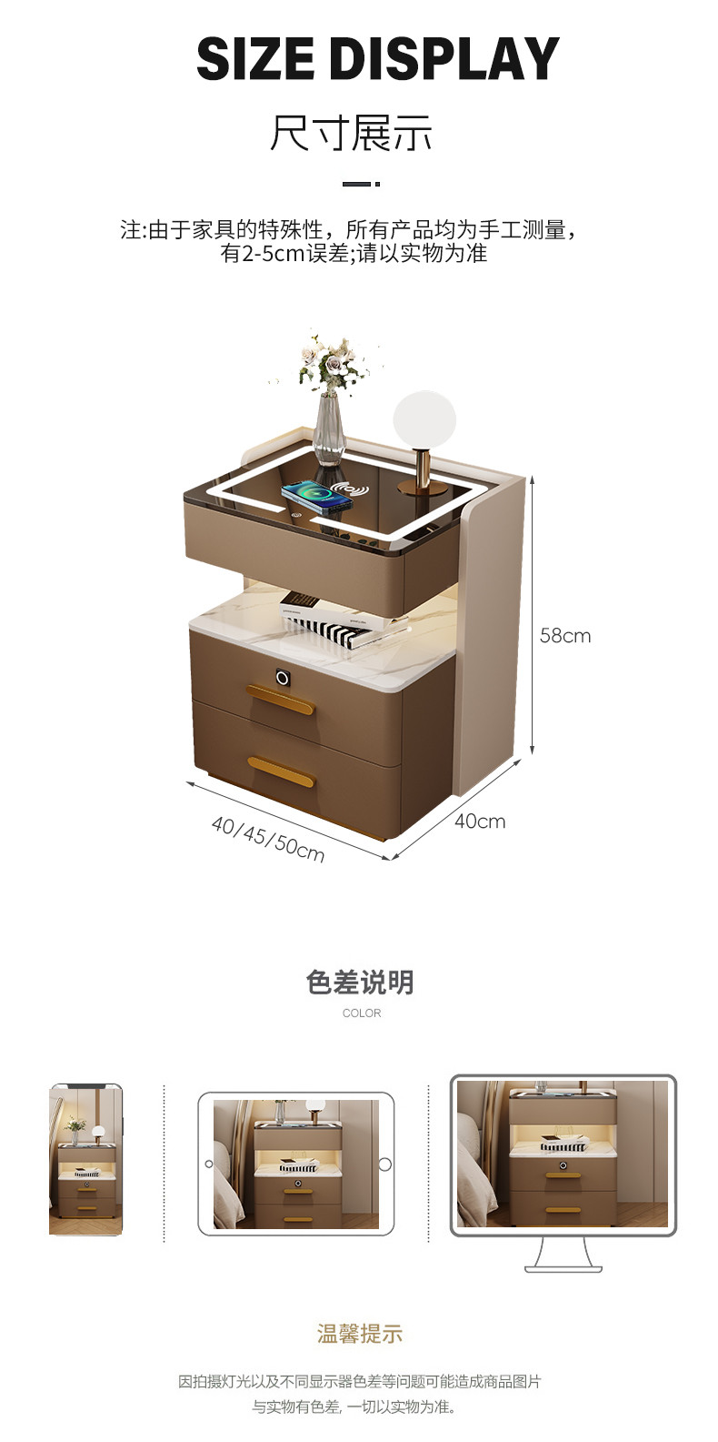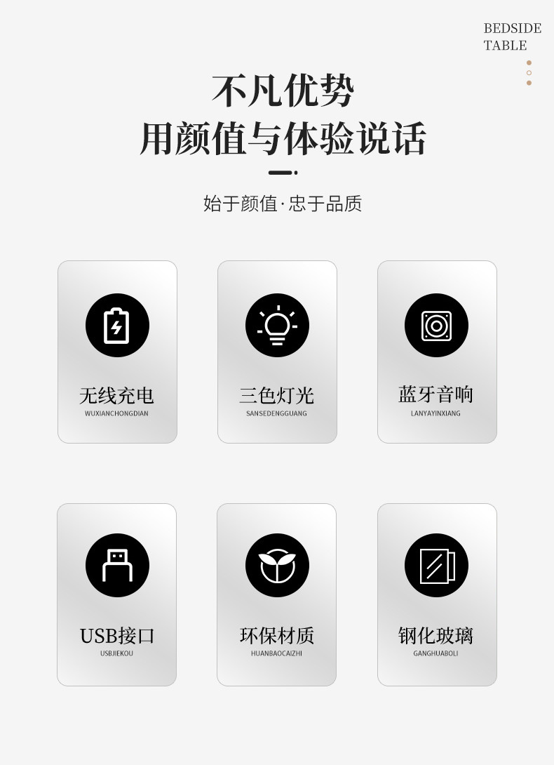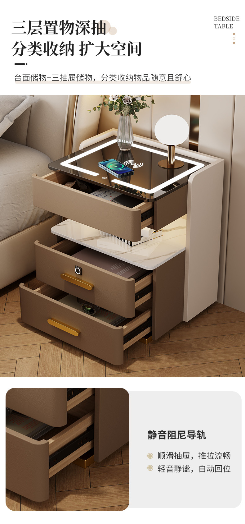 智能岩板床头柜多功能收纳柜实木家用卧室床边柜保险柜充电储物柜