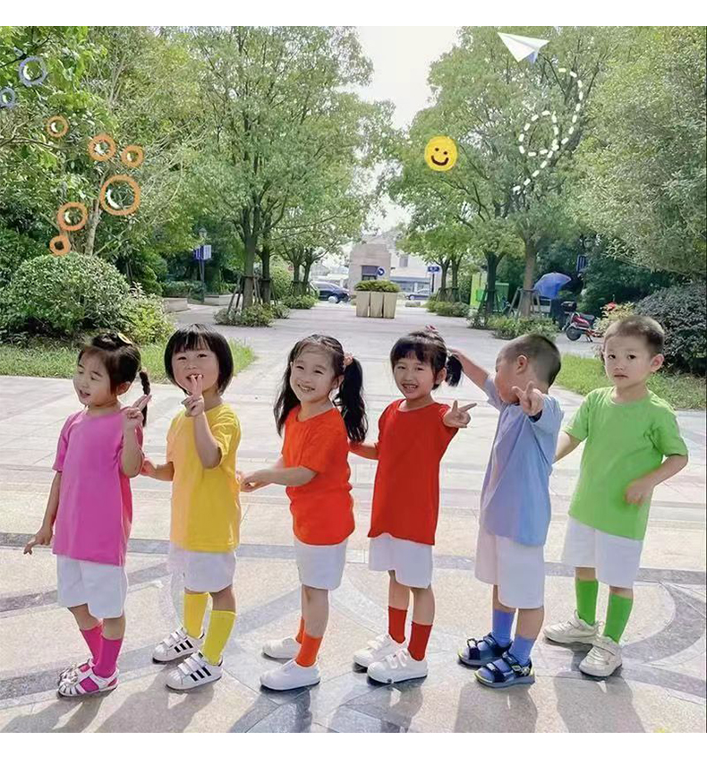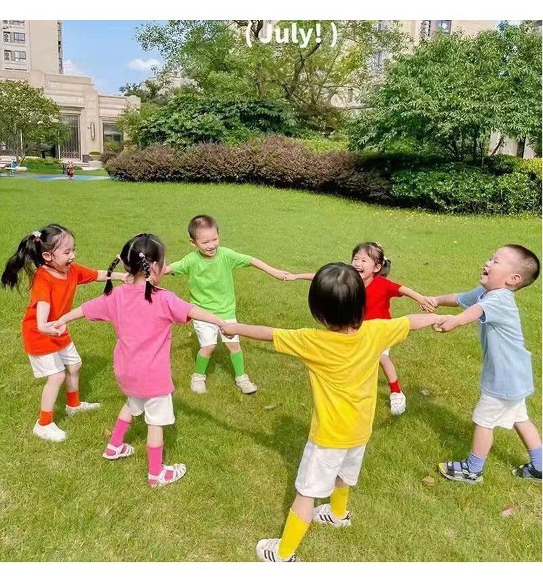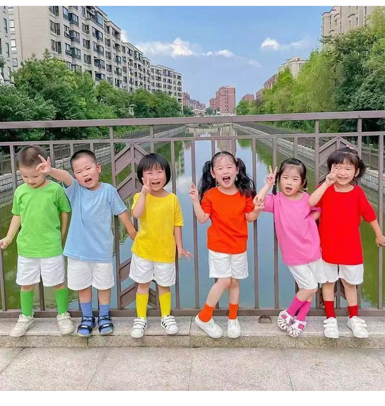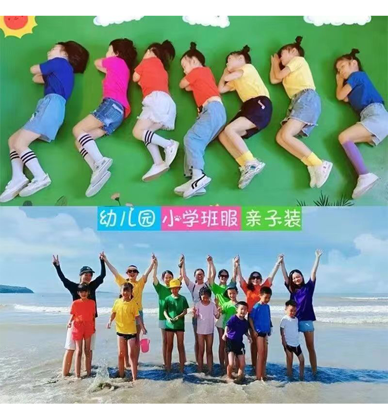 童装马卡龙t恤纯棉短袖小学生糖果色幼儿园服亲子活动运动会班服