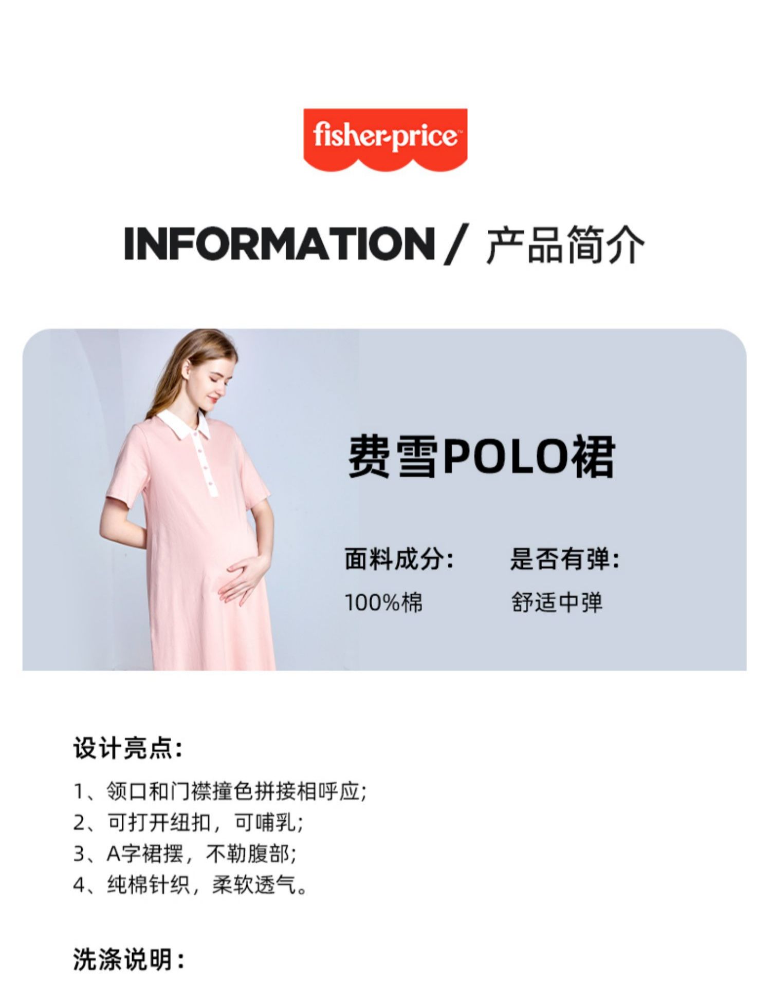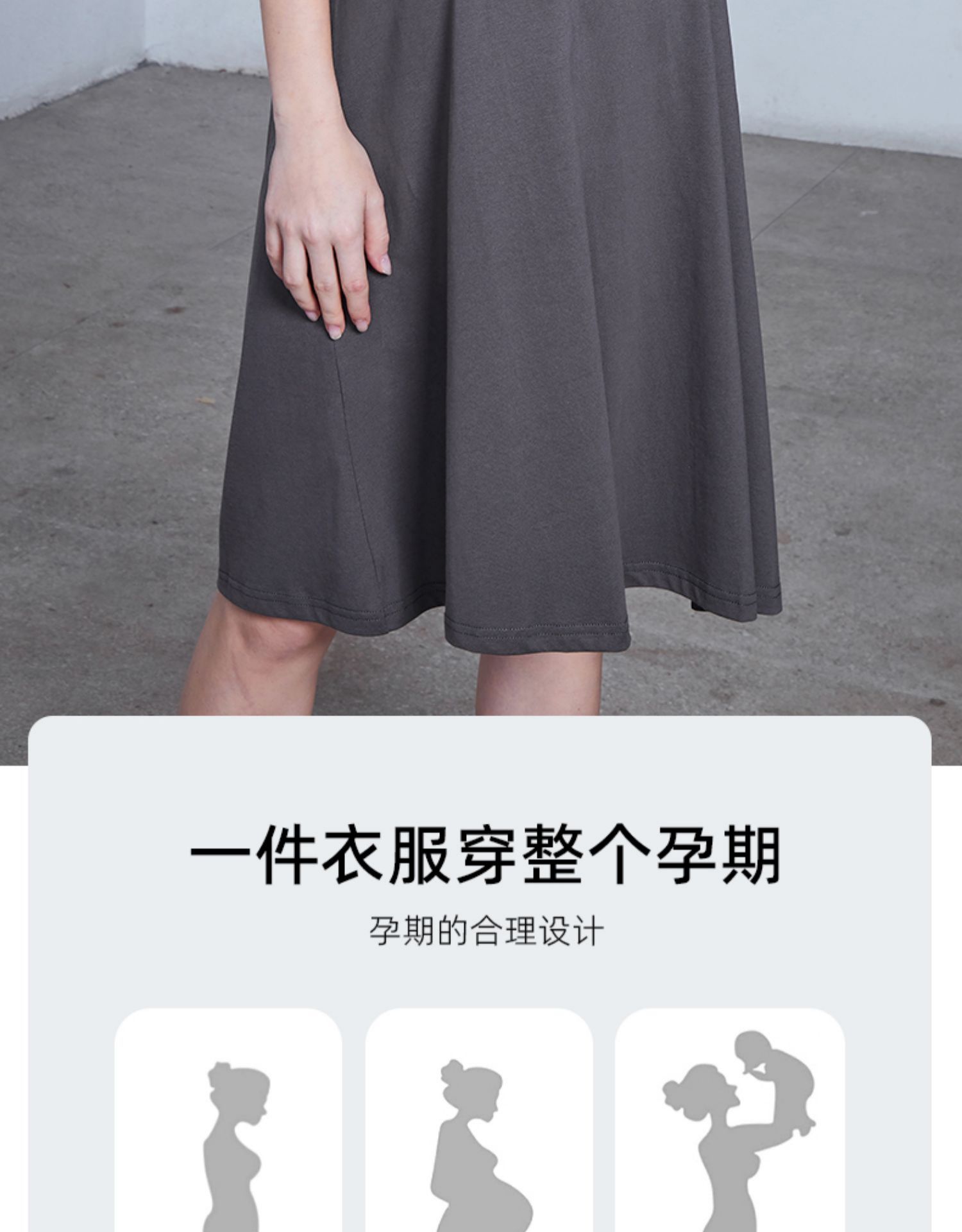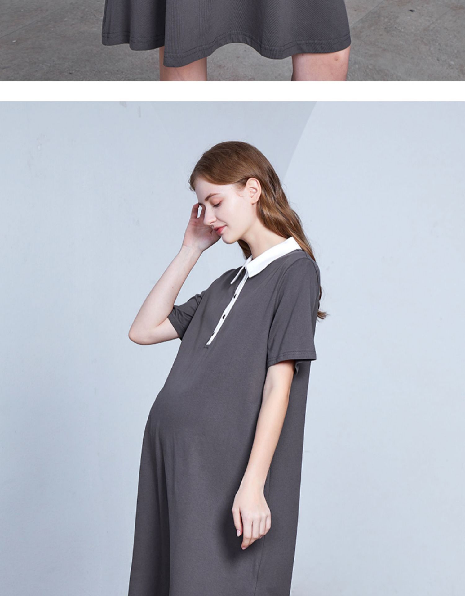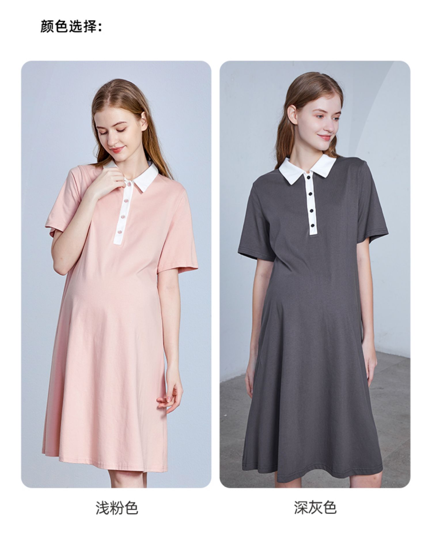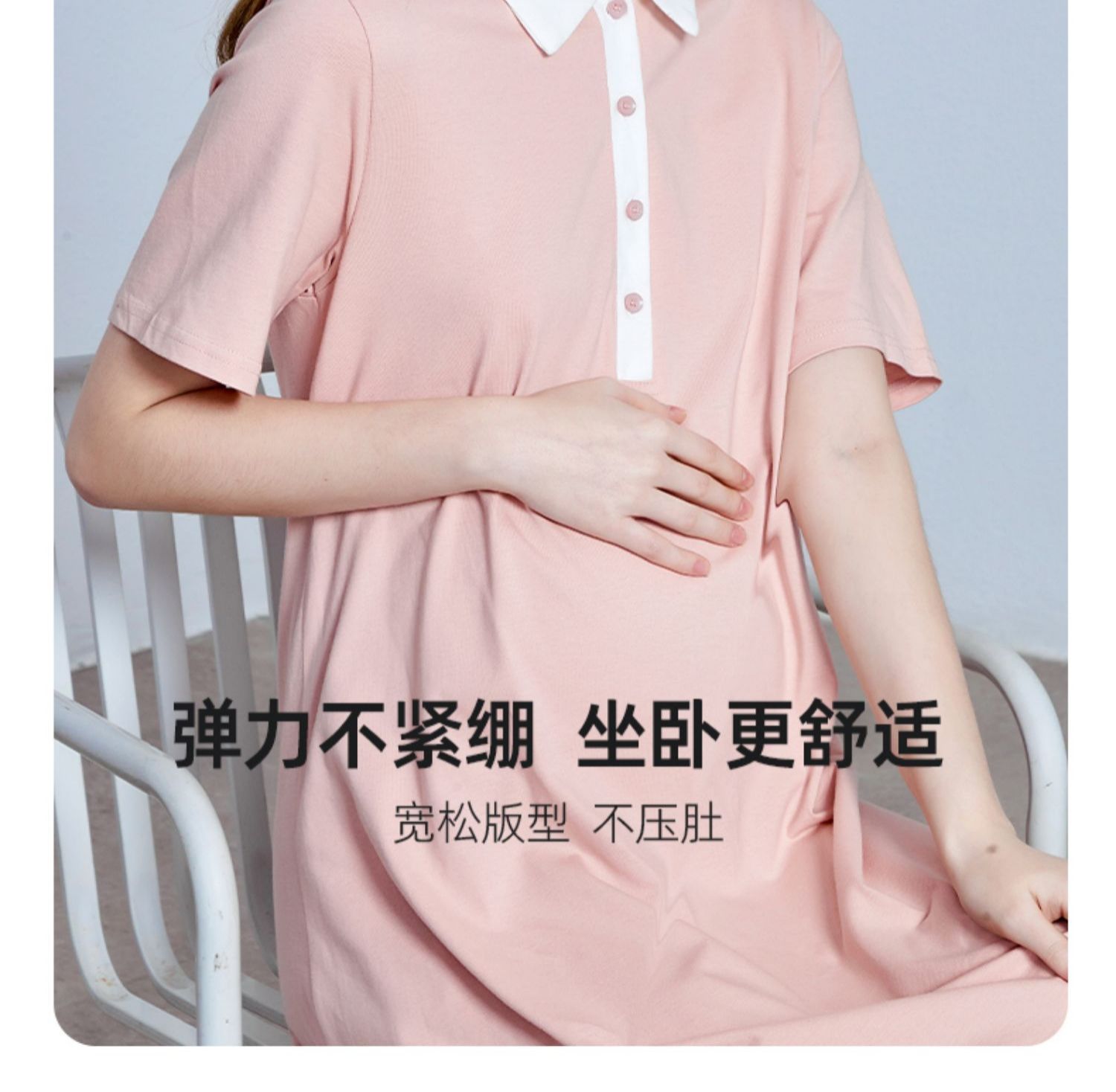 美国费雪孕妇连衣裙夏装2025潮妈孕妇装夏季翻领T恤宽松大码裙子