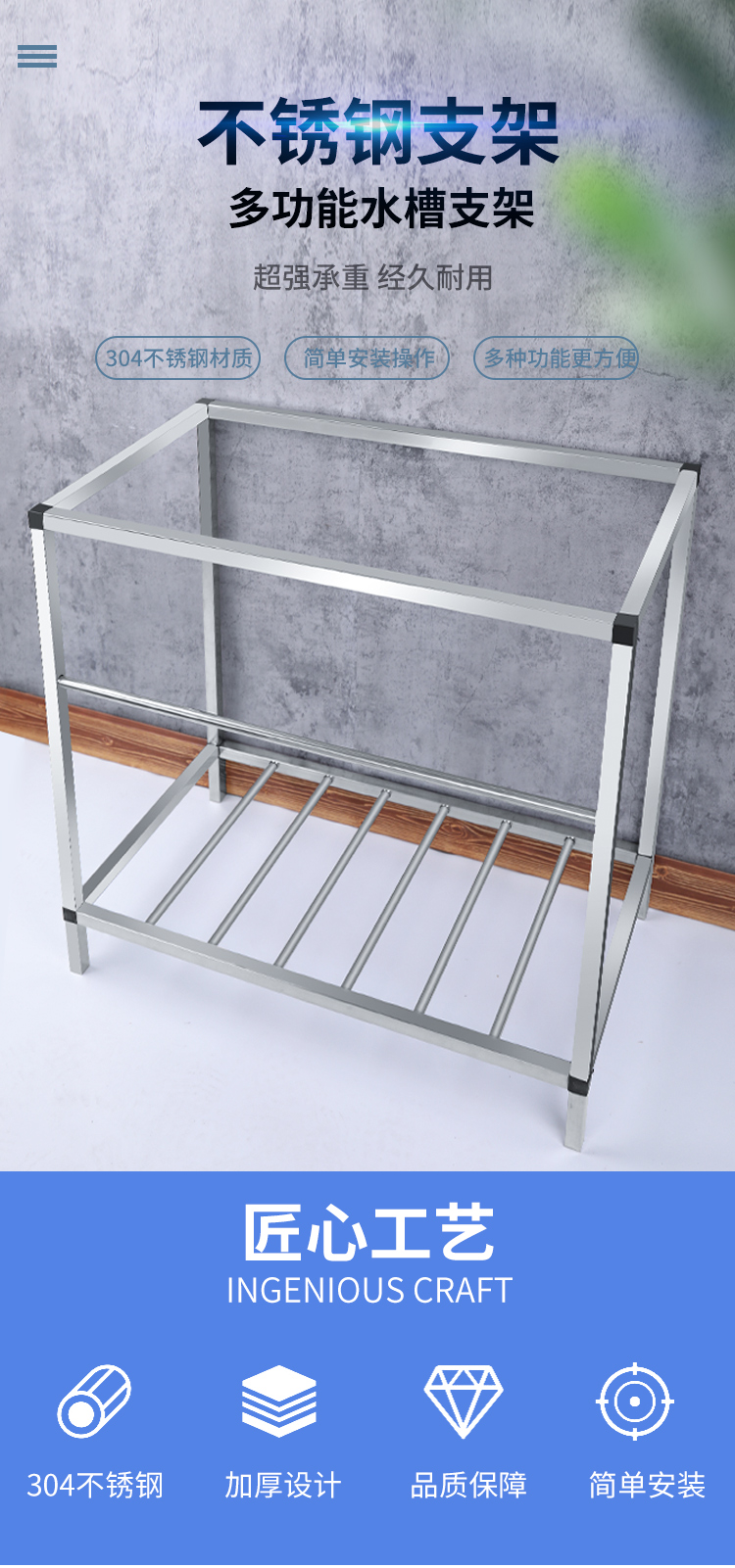 水槽不锈钢支架定做厨房单槽双槽洗菜盆洗碗池洗手池带支架加工