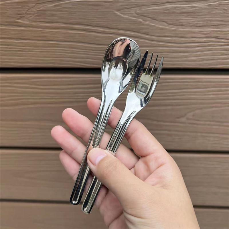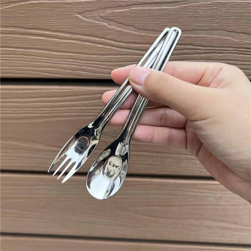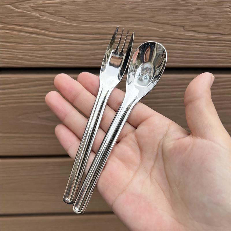 1810不锈钢儿童勺子吃面叉便携婴儿宝宝勺叉套装学生餐具甜品勺叉