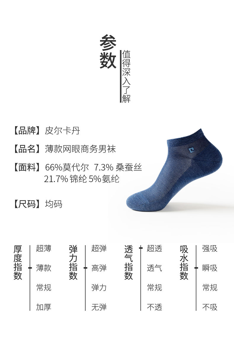皮尔卡丹低帮短筒袜子男夏季薄款黑色桑蚕丝商务网眼船袜男土袜子