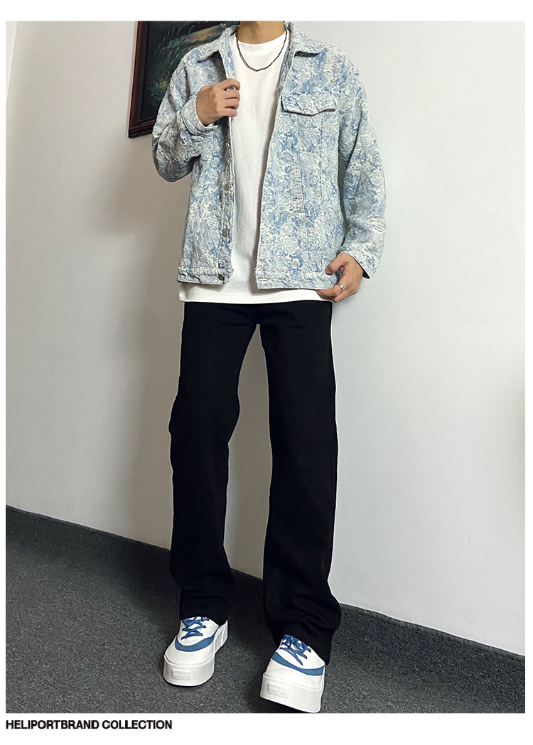HELIPORT停机坪 雪花飘零刺绣牛仔夹克外套潮牌宽松男女高街上衣