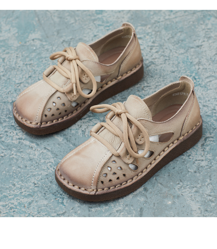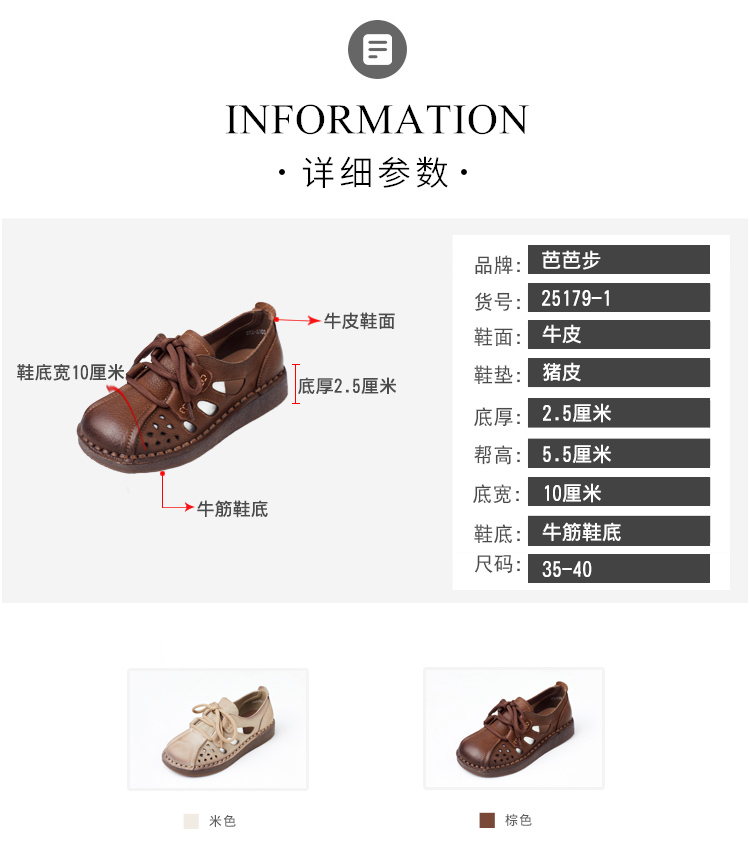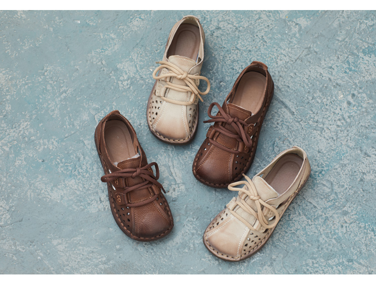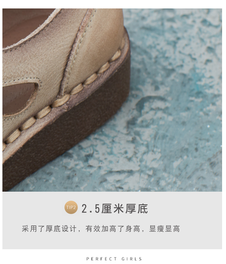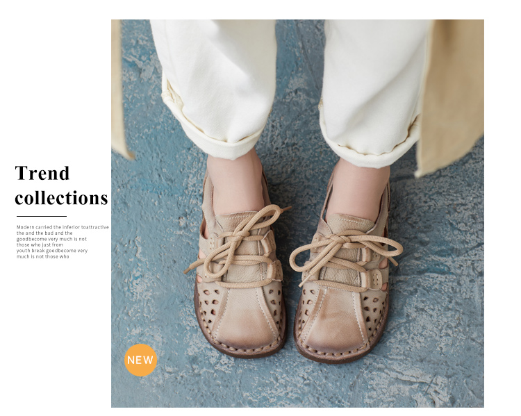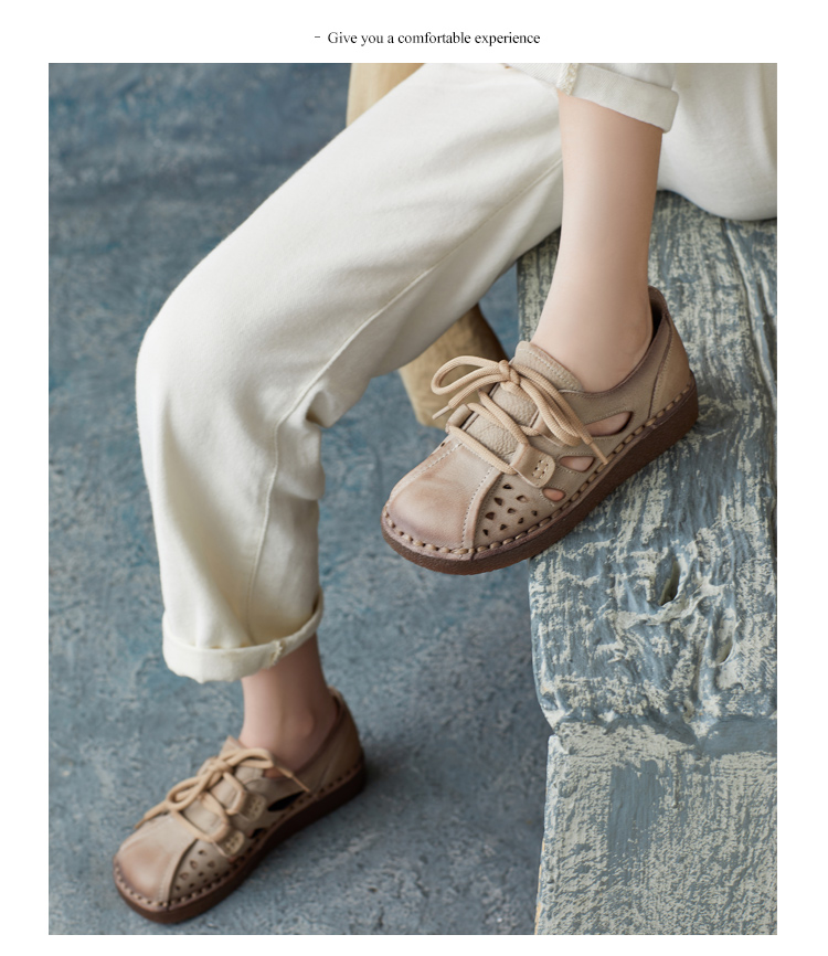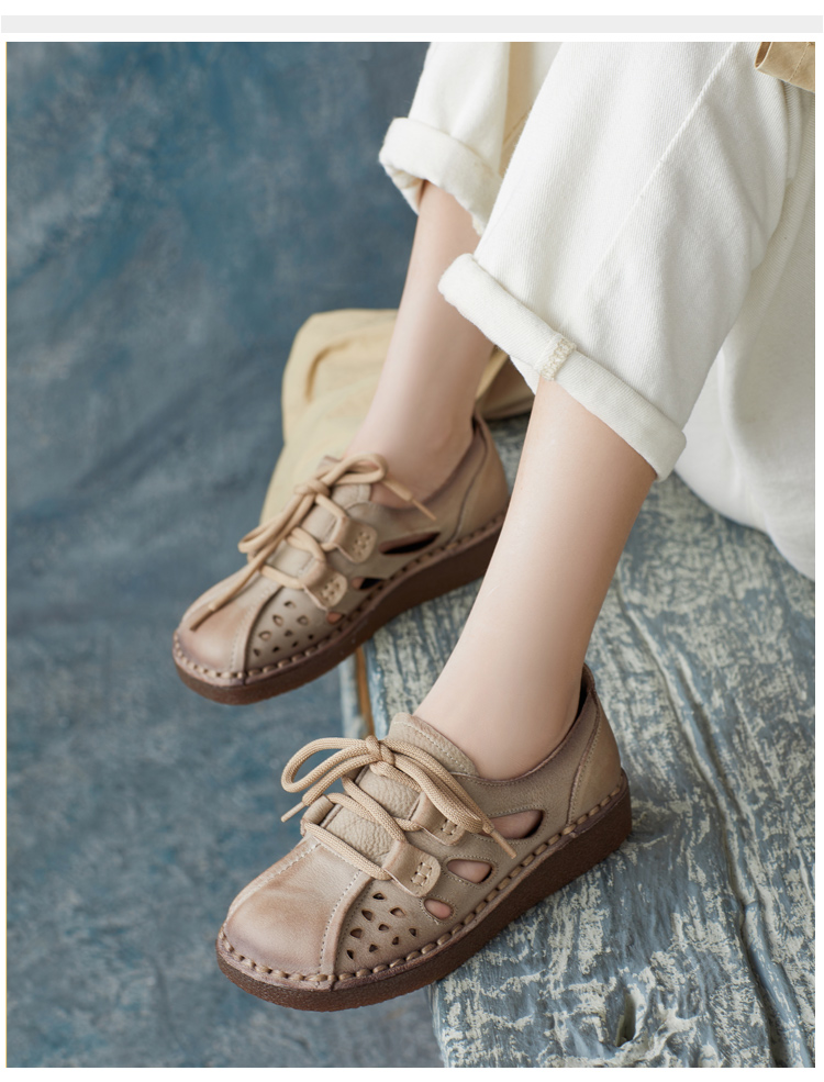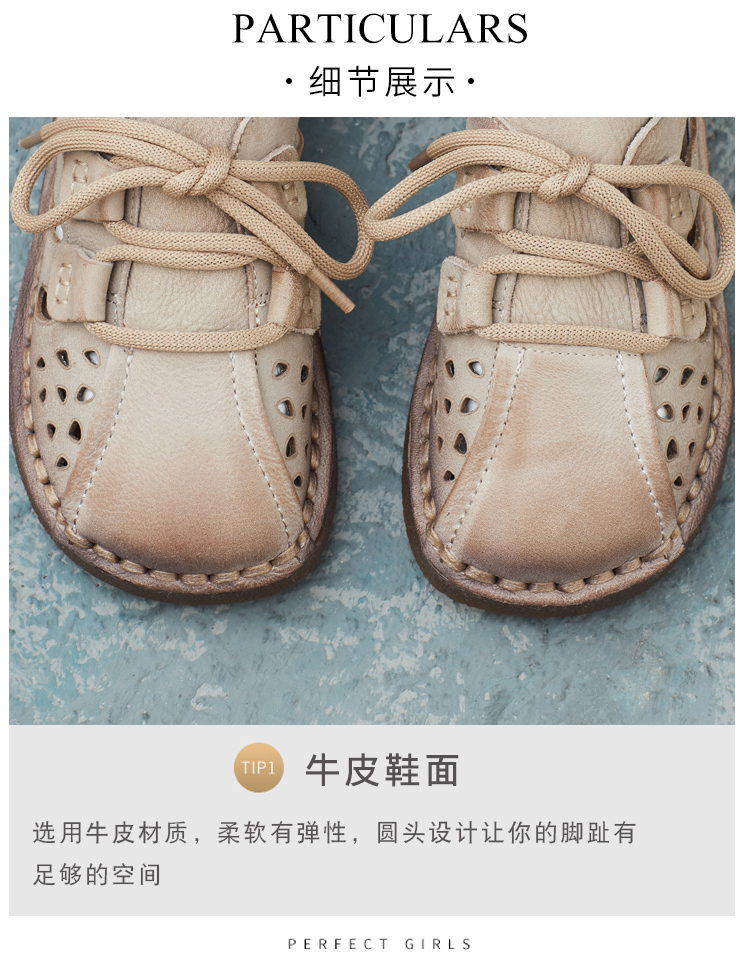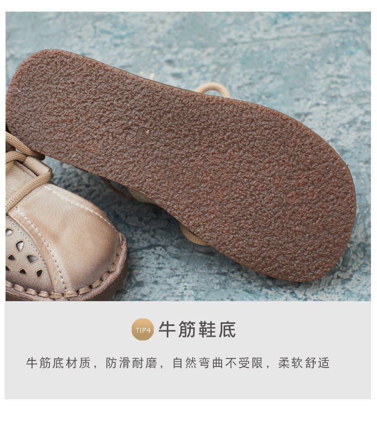 2025春夏民族风牛皮复古凉鞋中空软底罗马女鞋系带休闲镂空鞋