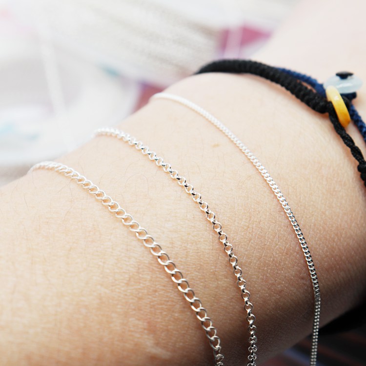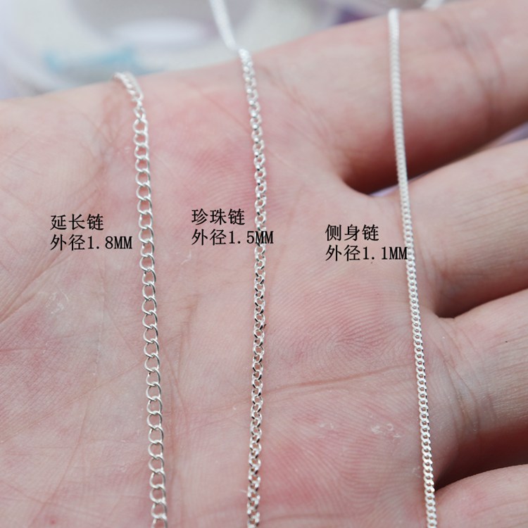 s925纯银珍珠链条手工diy项链配件自制手链材料侧身连散链延长链