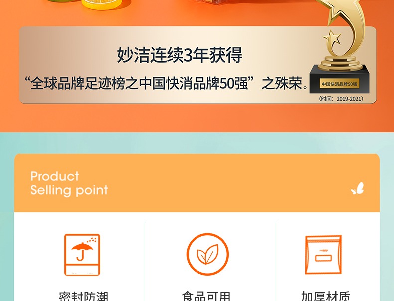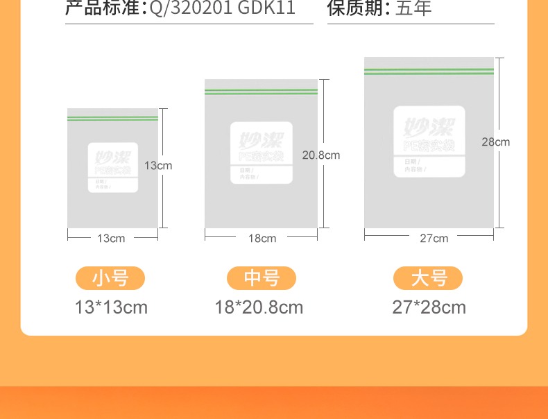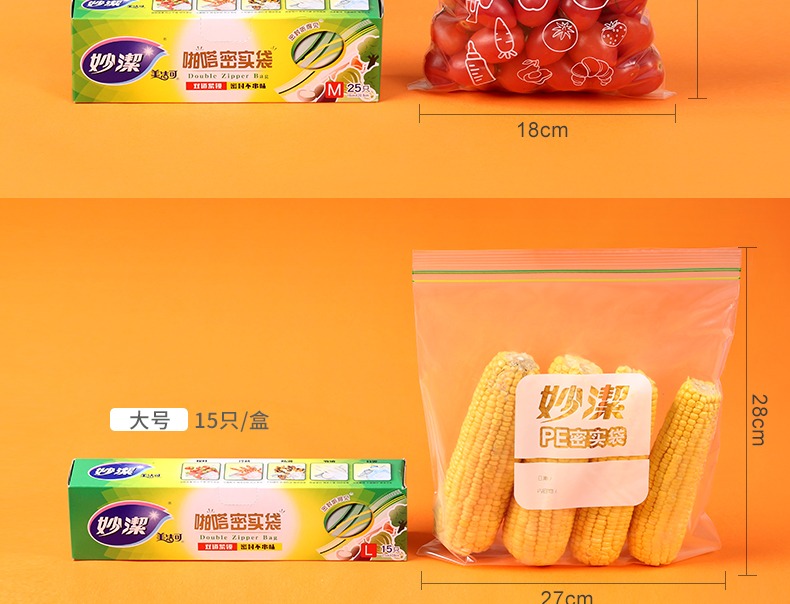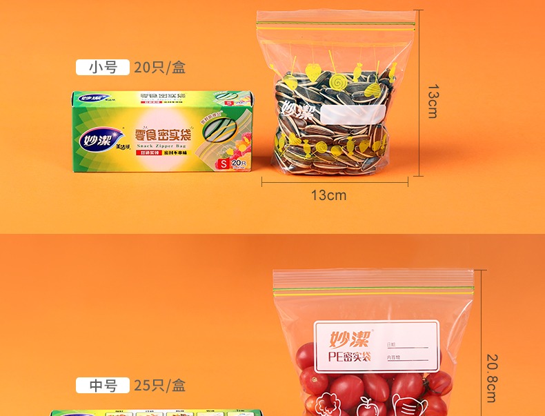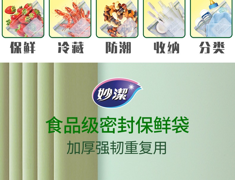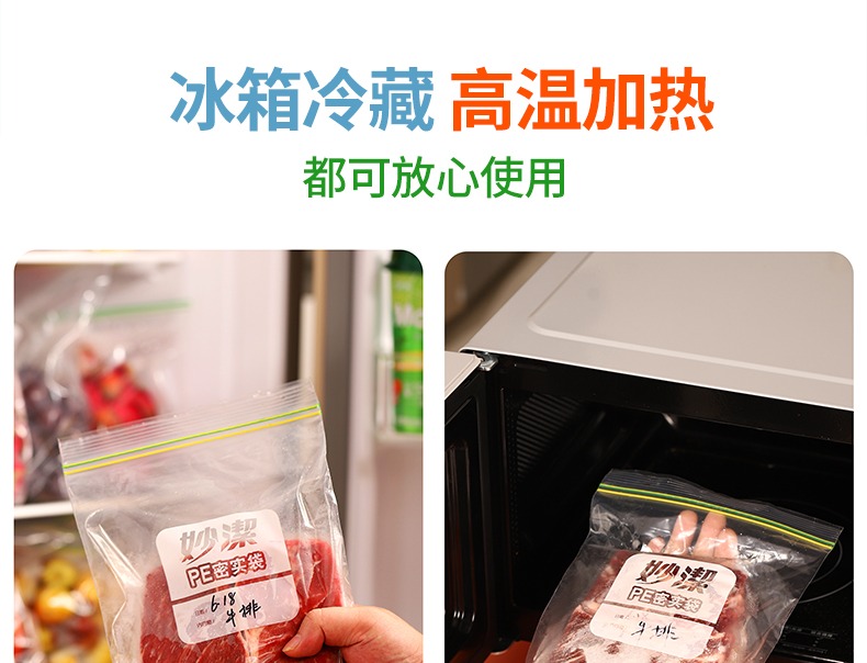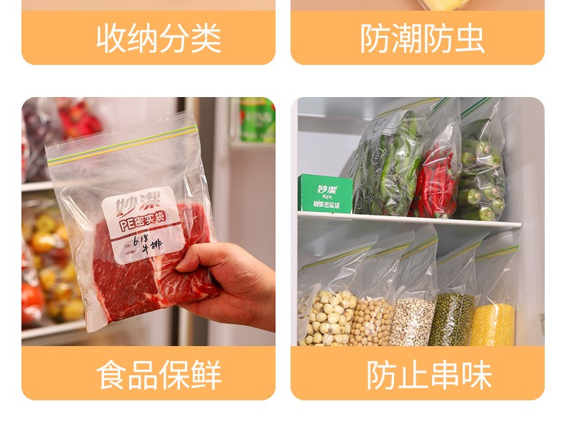 妙洁密封袋食品级保鲜袋自封袋塑封加厚家用冷冻多功能冰箱收纳袋