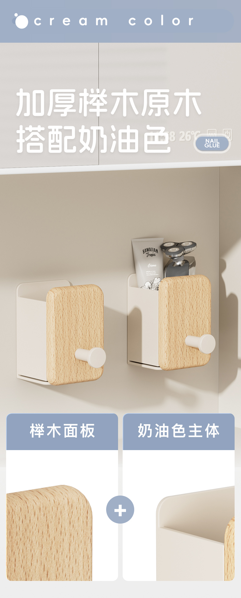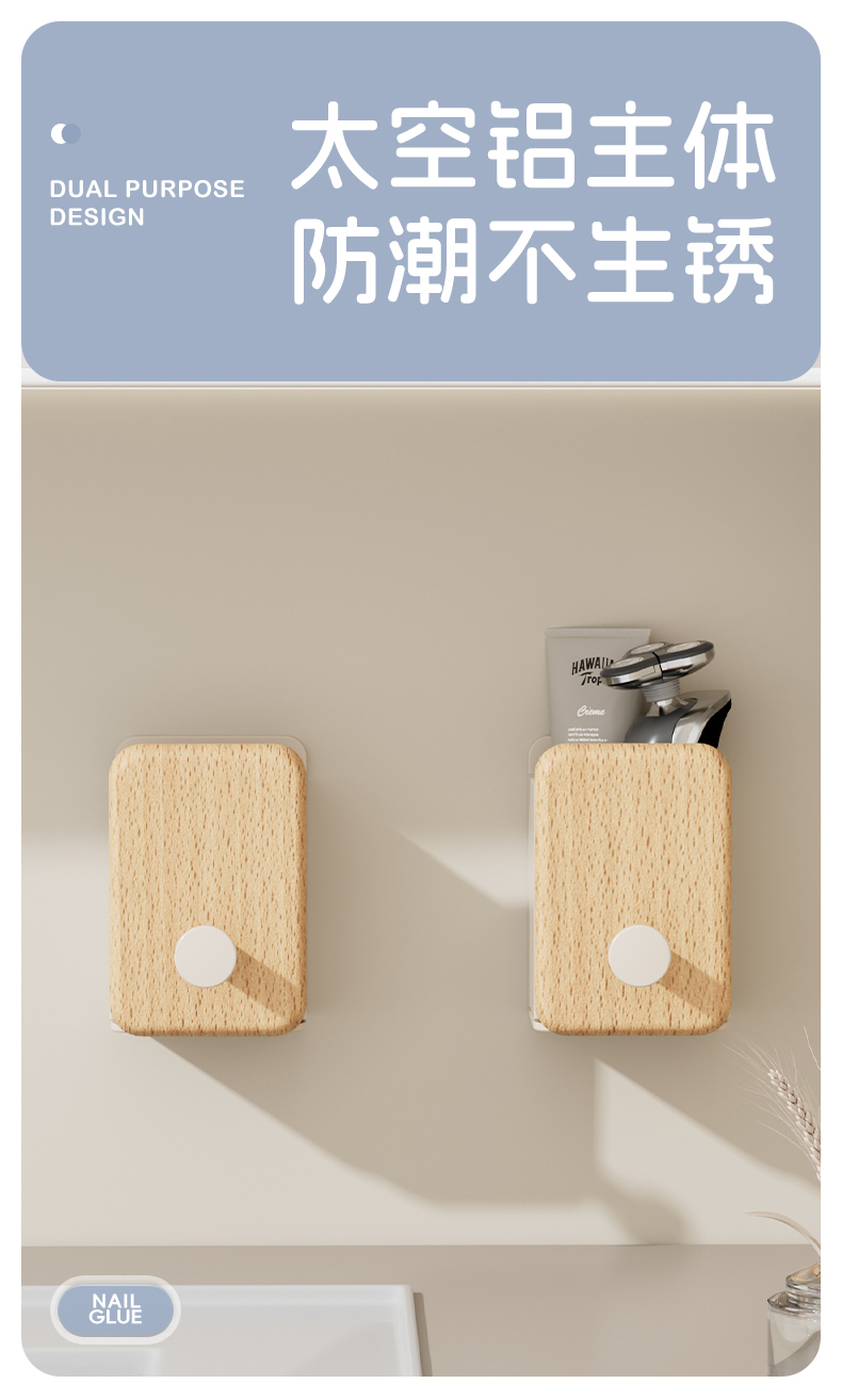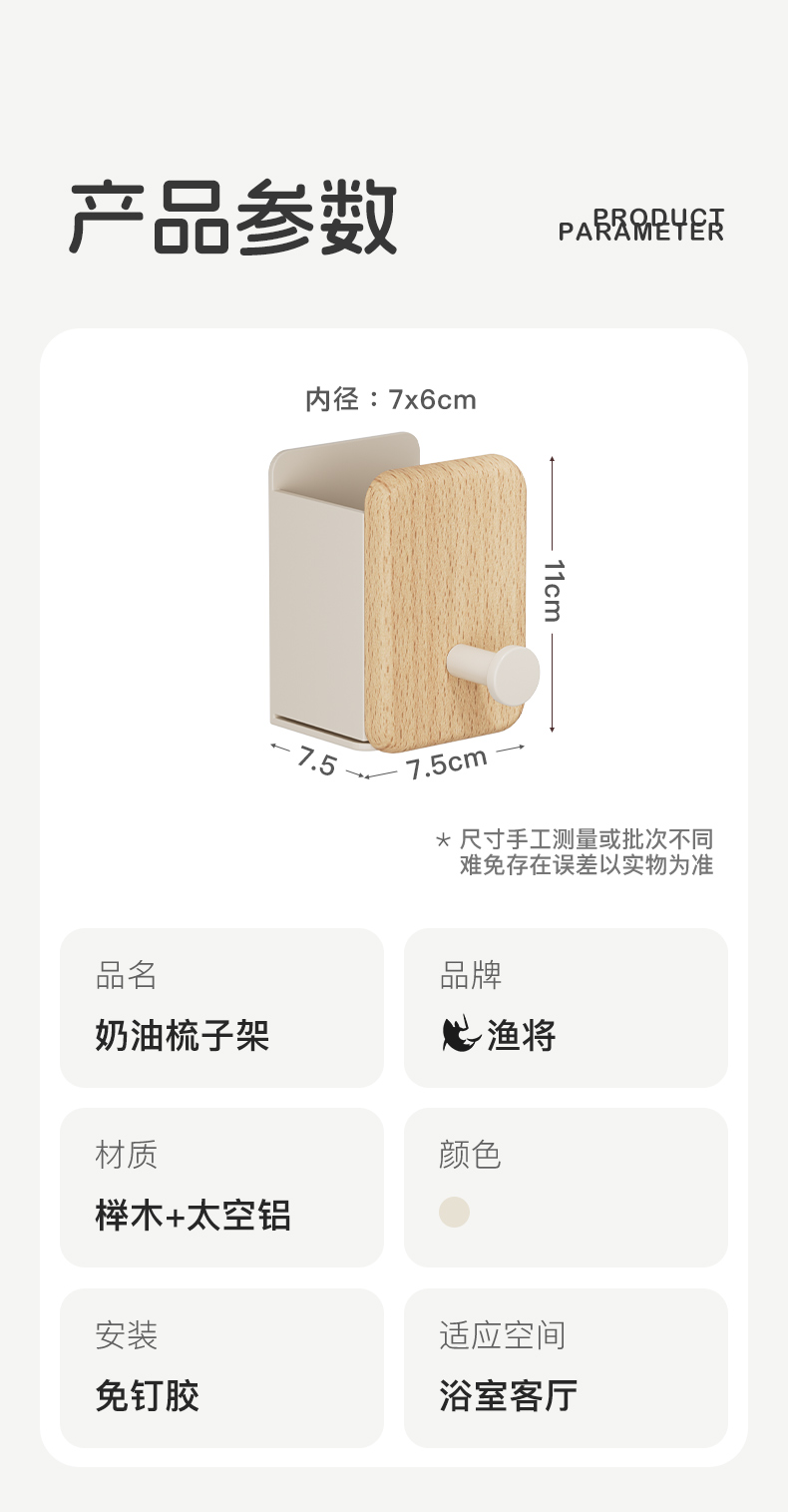 浴室化妆刷收纳筒放梳子收纳盒卫生间用品墙上壁挂式免打孔置物架