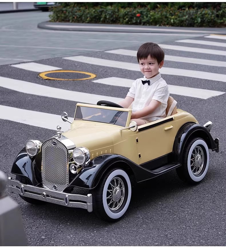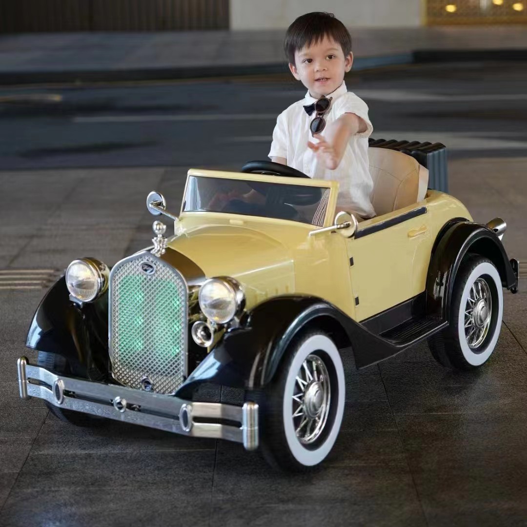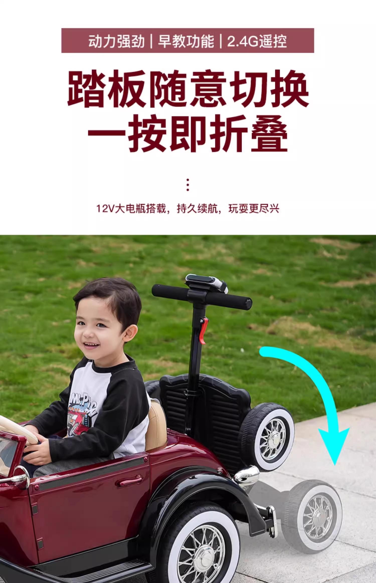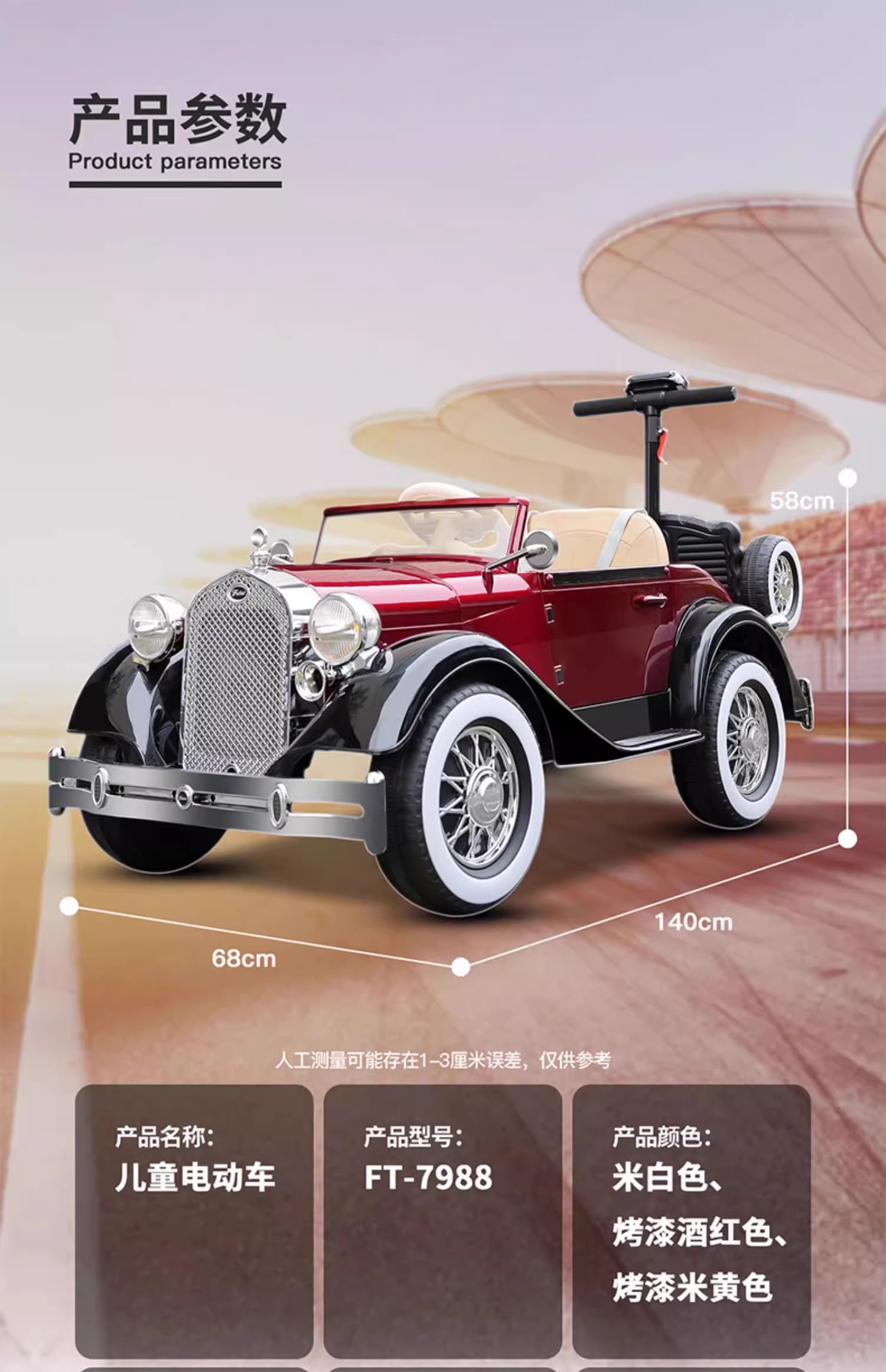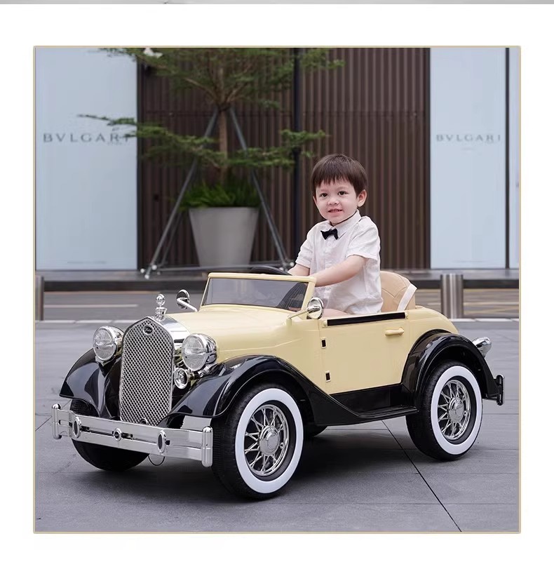 复古老爷车儿童电动车亲子四轮四驱汽车带成人拖车可遥控早教玩具