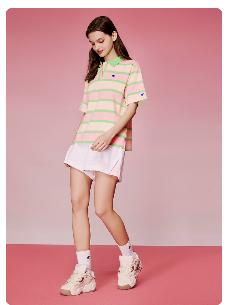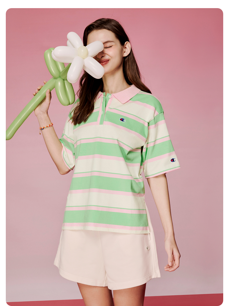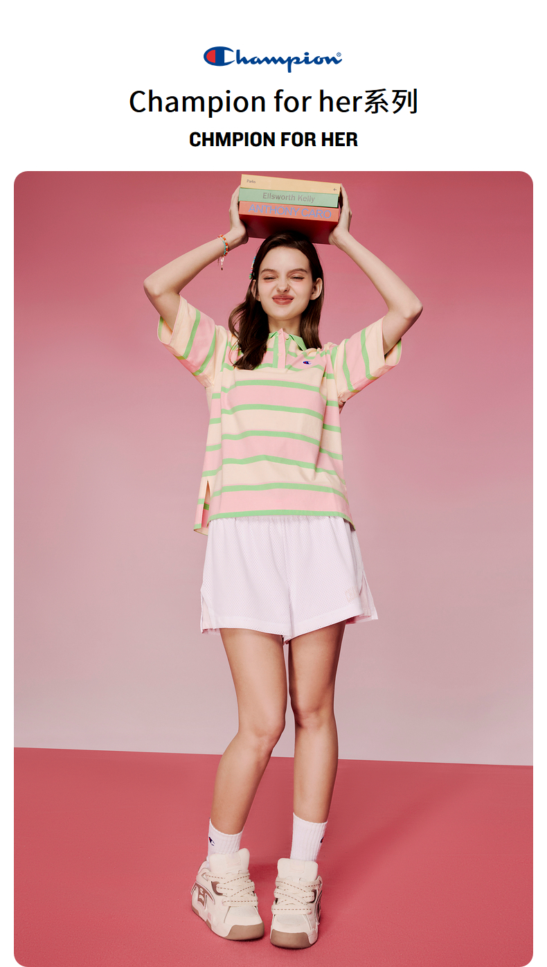 Champion冠军短袖女2025夏季新款polo衫拼接撞色休闲t恤美式复古