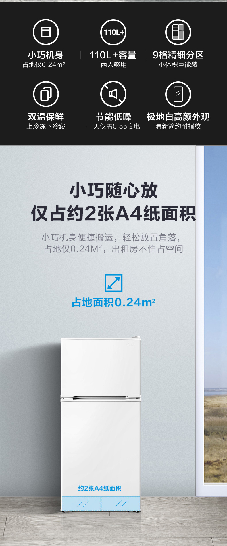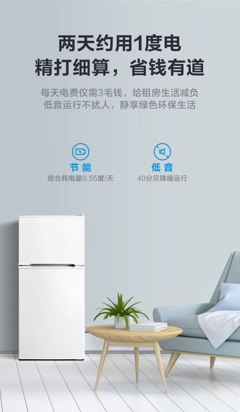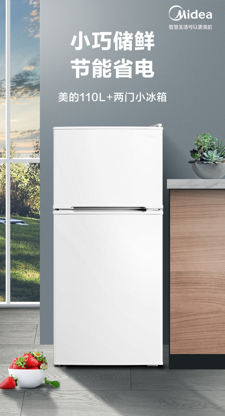 美的110L+双开两门家用宿舍租房办公室节能官方迷你低噪小型冰箱