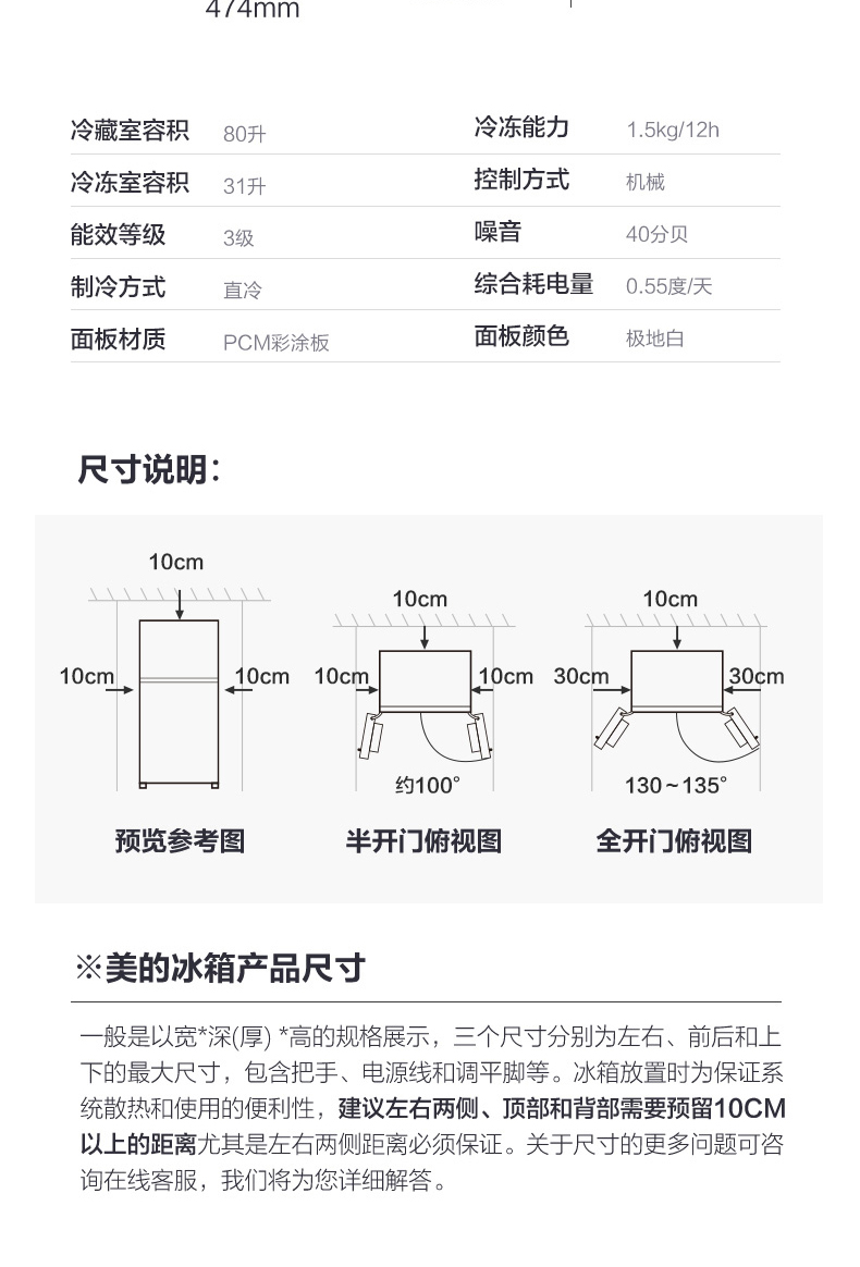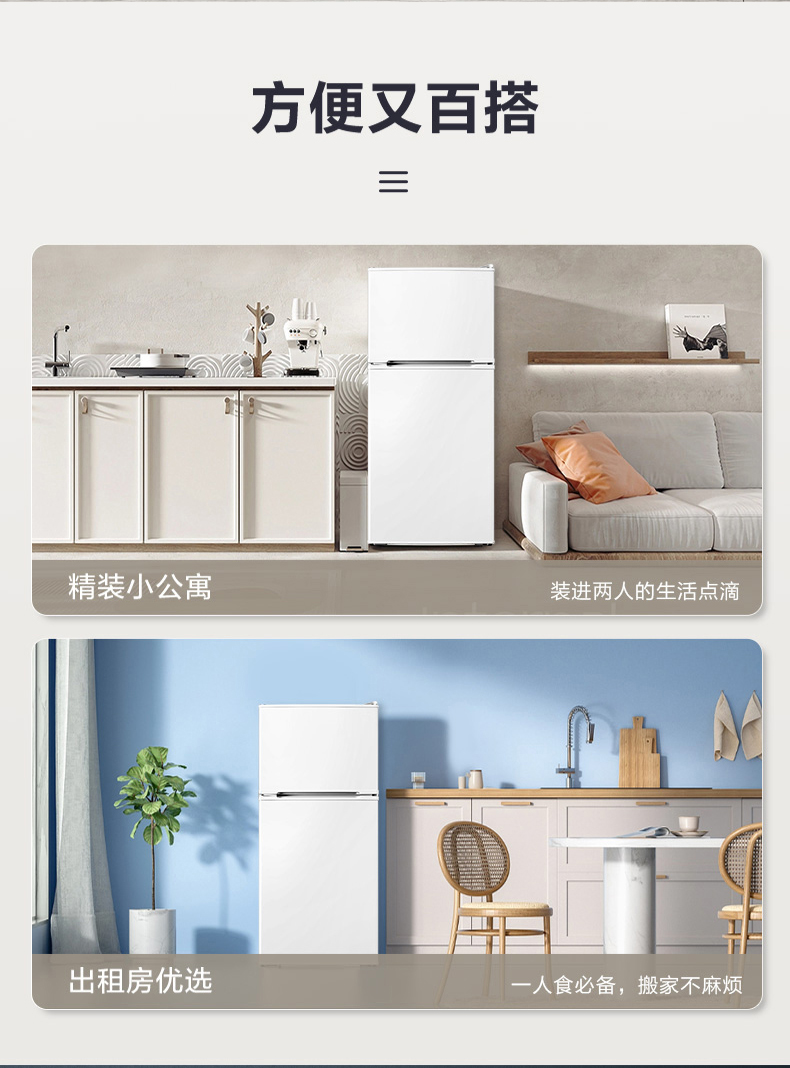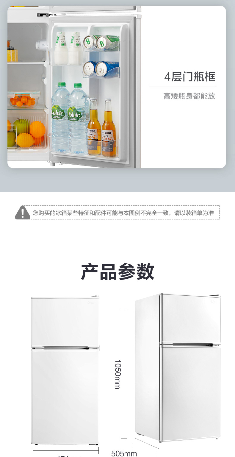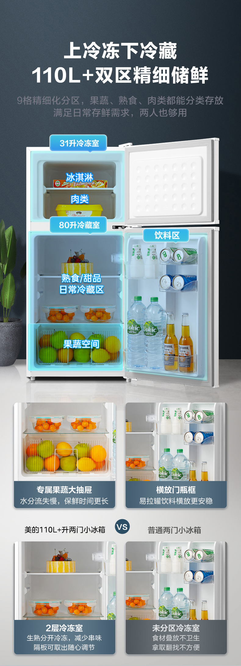 美的110L+双开两门家用宿舍租房办公室节能官方迷你低噪小型冰箱