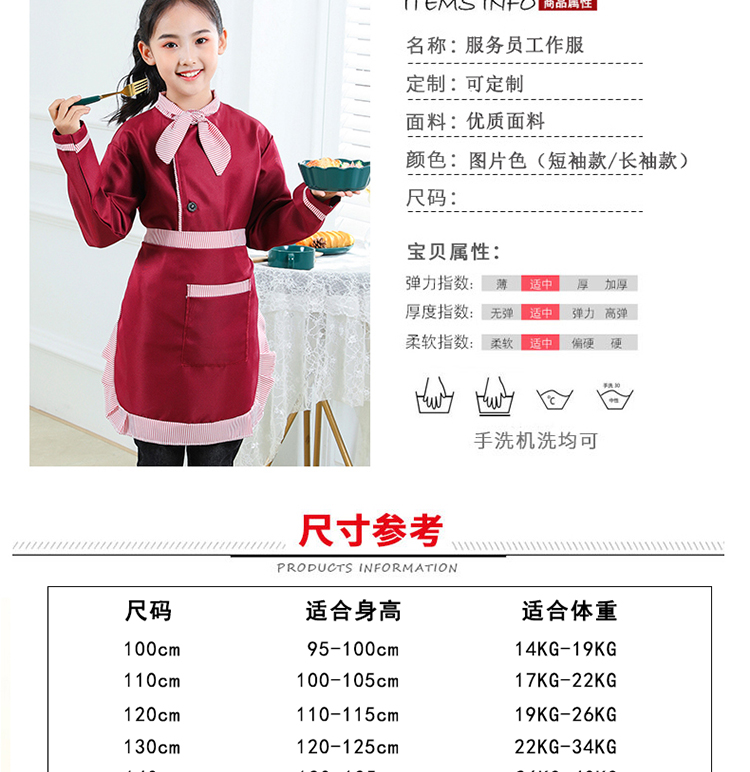 儿童厨师表演服男女童服务员演出服幼儿活动cosplay服装包邮时尚