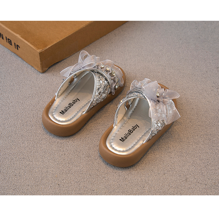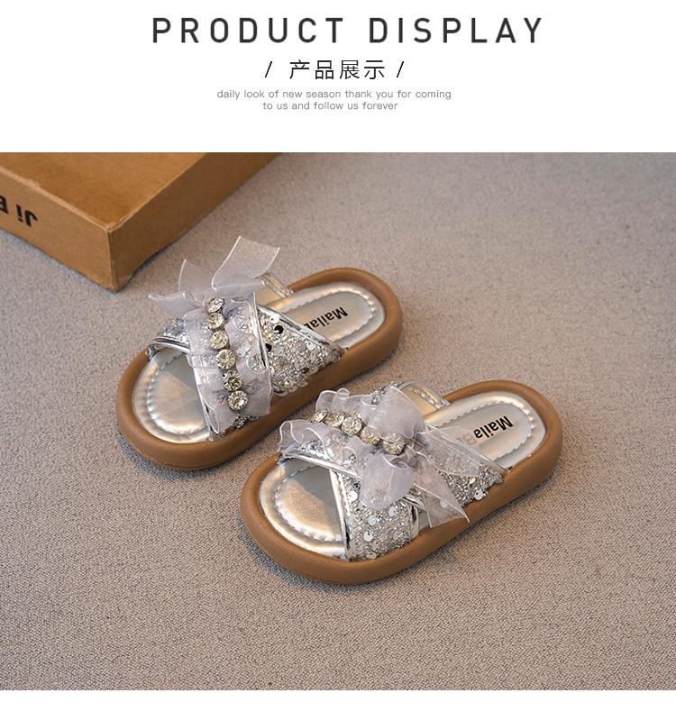 女童拖鞋2024夏季新款儿童鞋子女孩公主鞋水钻亮片沙滩鞋外穿防滑