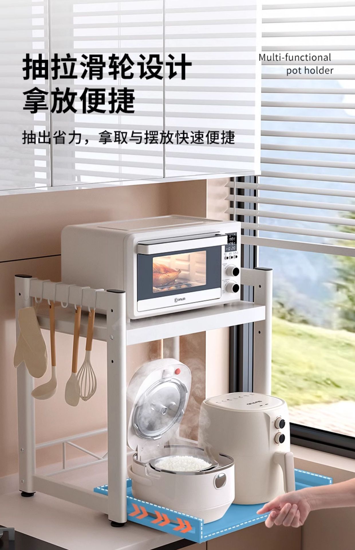可抽拉厨房微波炉置物架双层可调节烤箱电器台面架子家用收纳支架