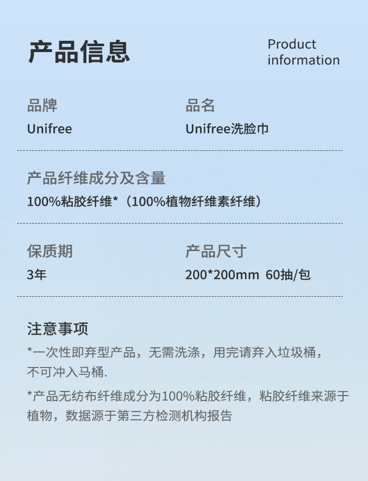 unifree一次性洗脸巾清洁洁面巾擦脸卸妆巾60抽1包
