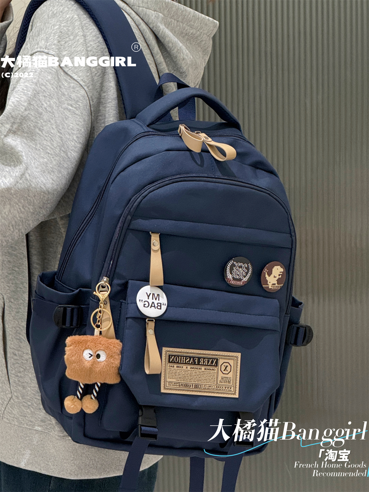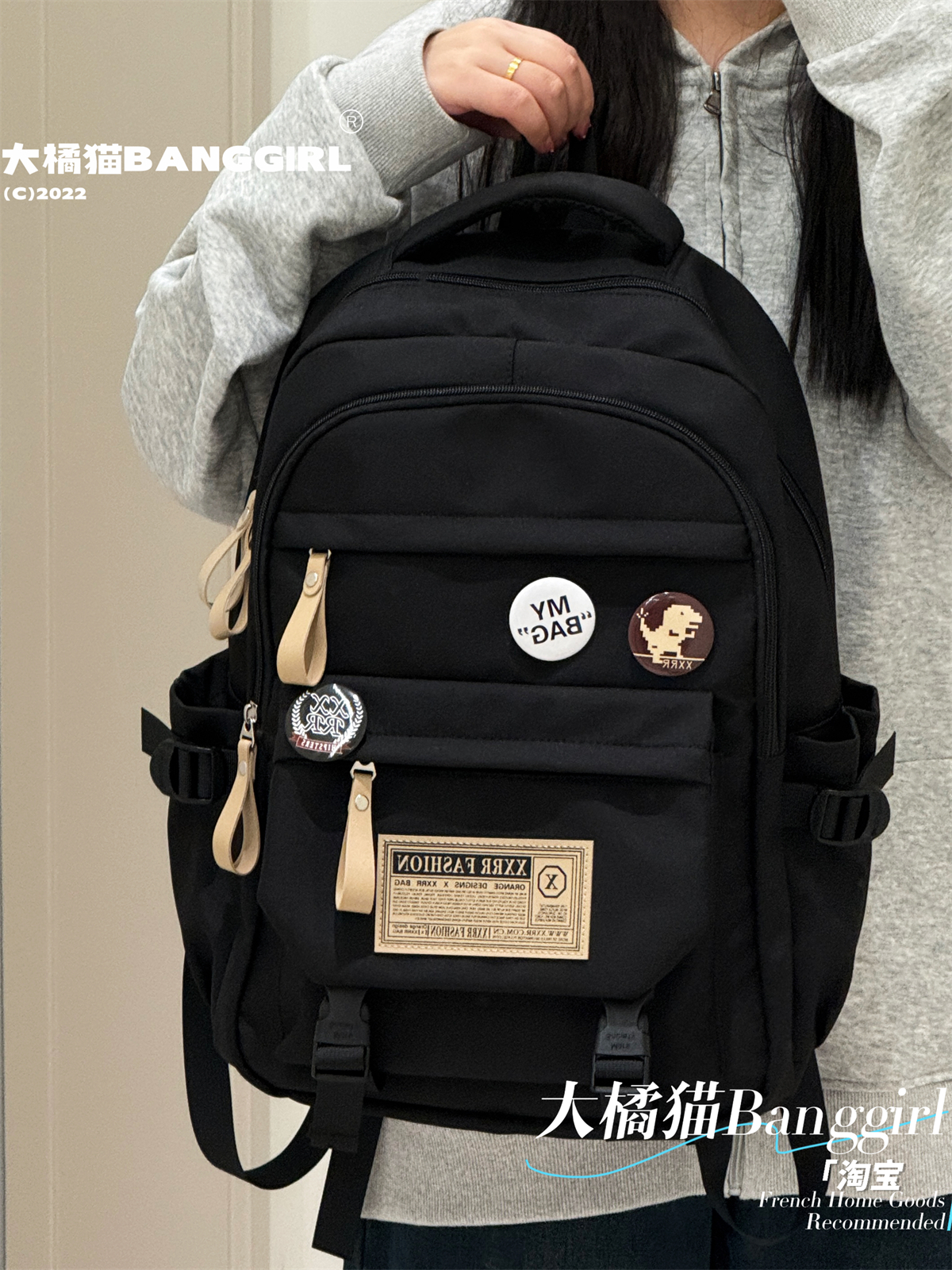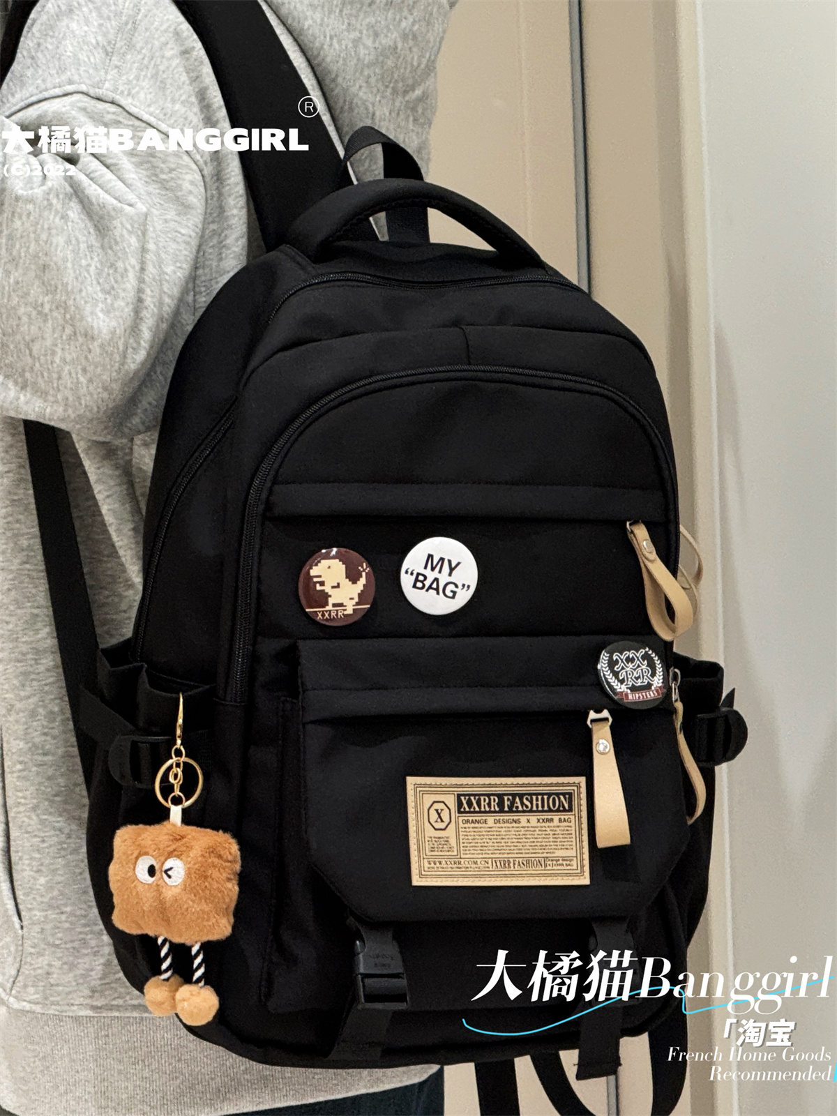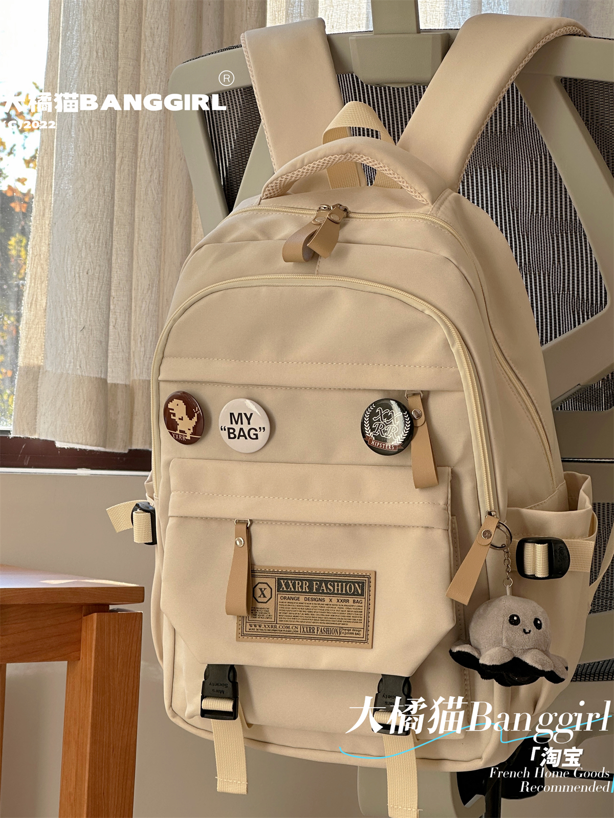日系ins潮流复古中性双肩包高中生初中生大容量百搭书包电脑背包