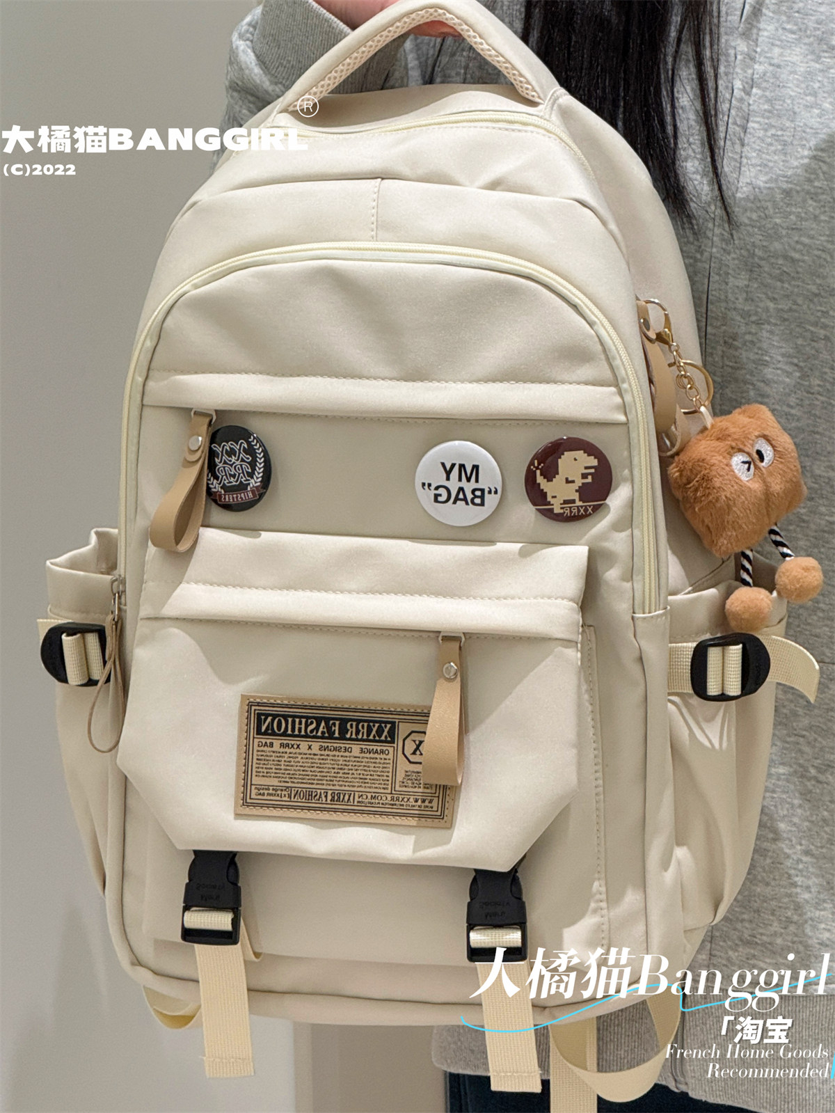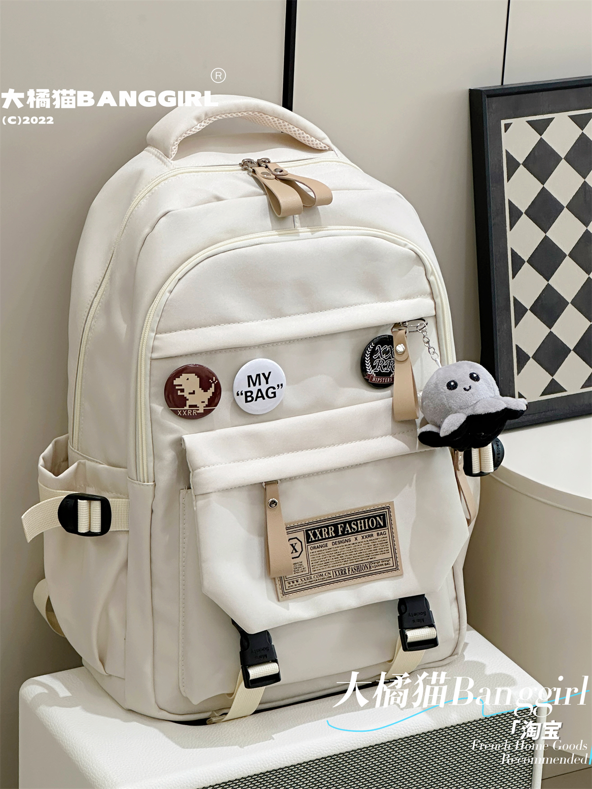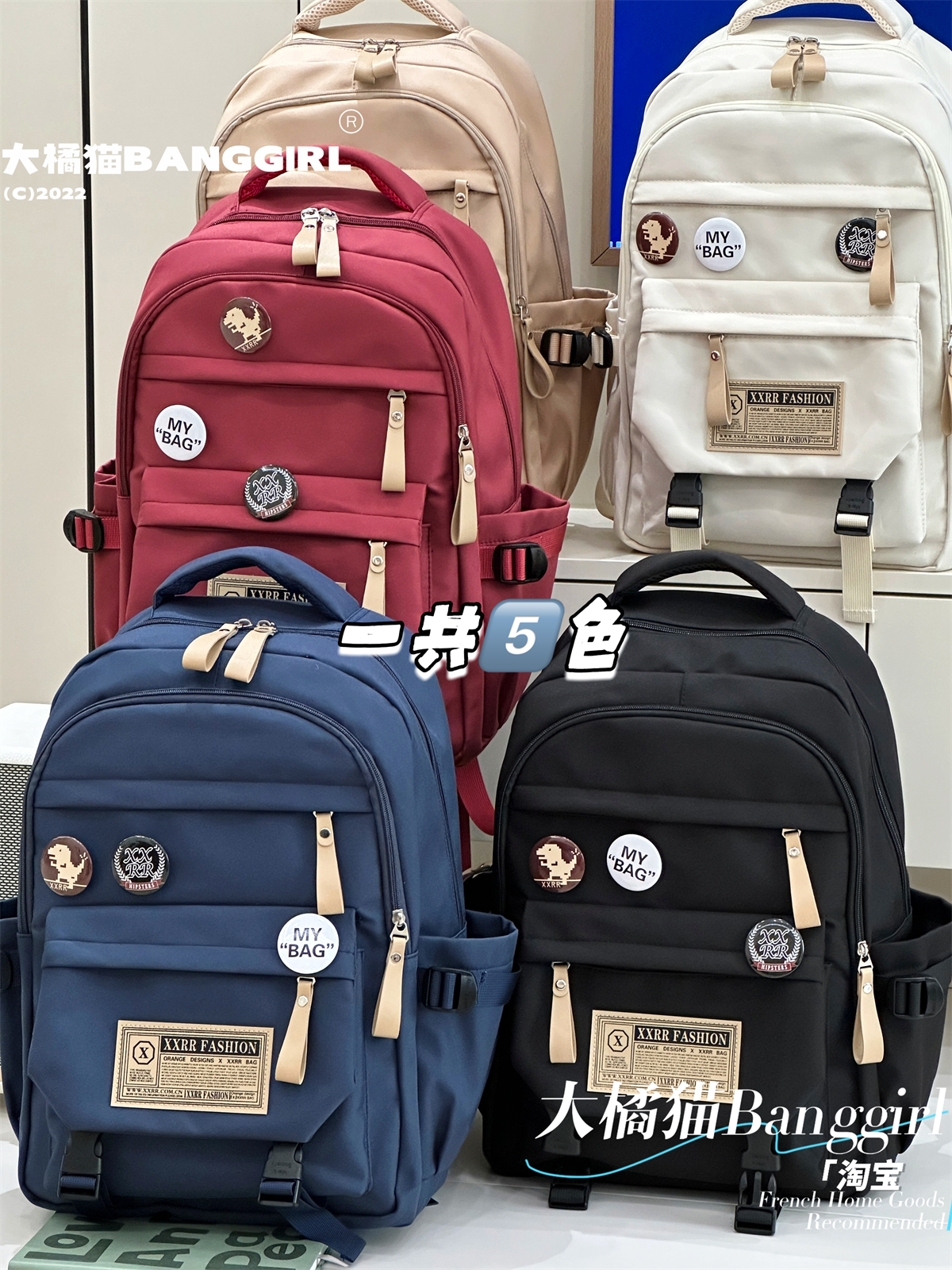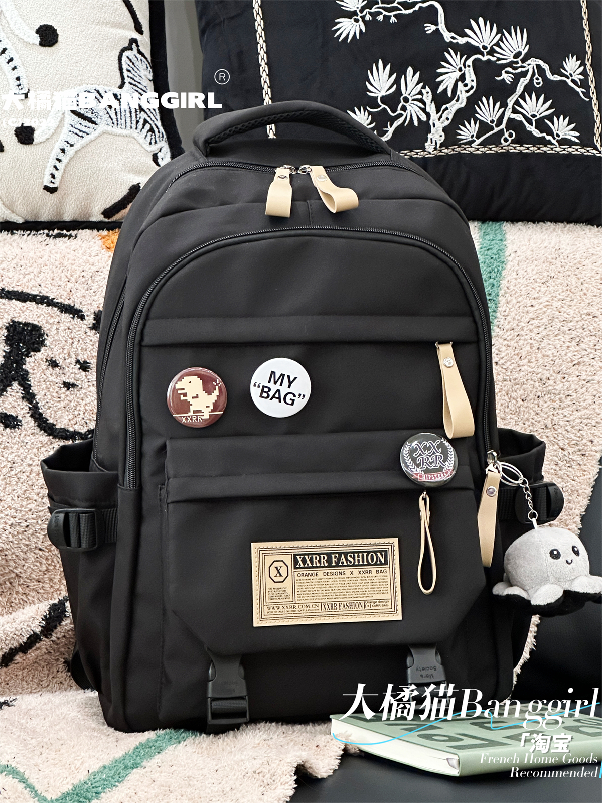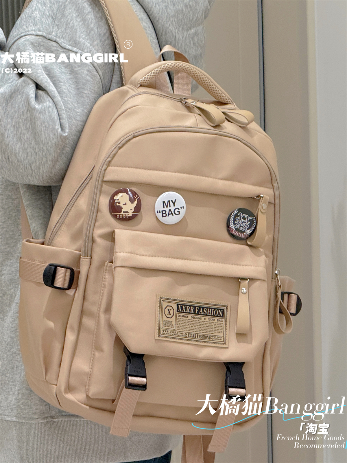 日系ins潮流复古中性双肩包高中生初中生大容量百搭书包电脑背包