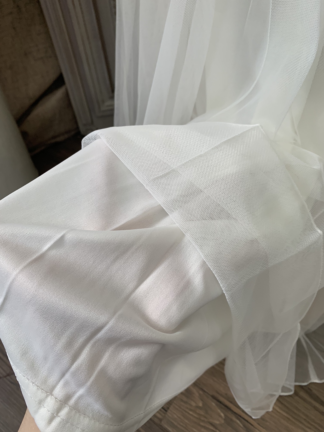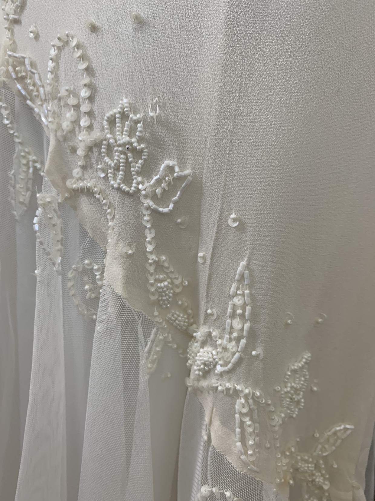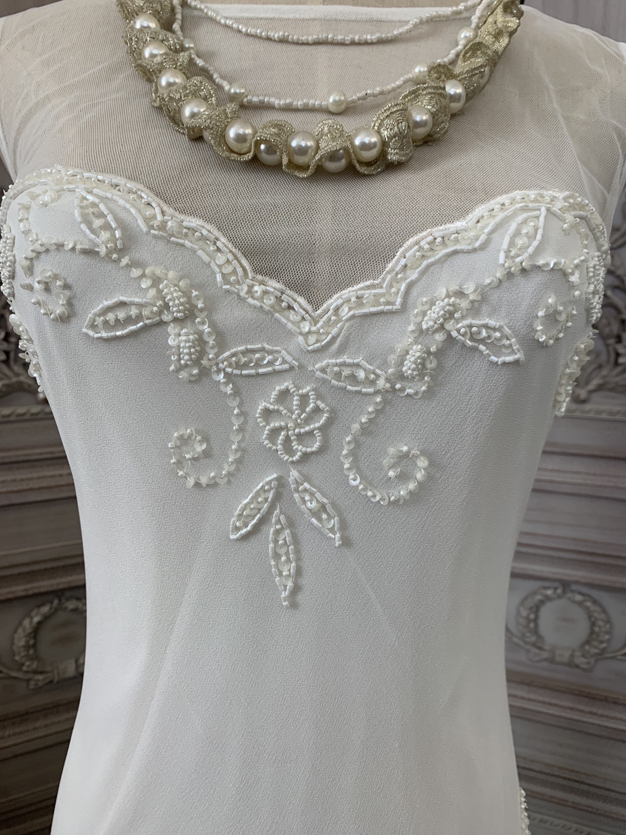 H066白色真丝斜裁鱼尾裙礼服vintage古着手工钉珠唐顿庄园轻婚纱