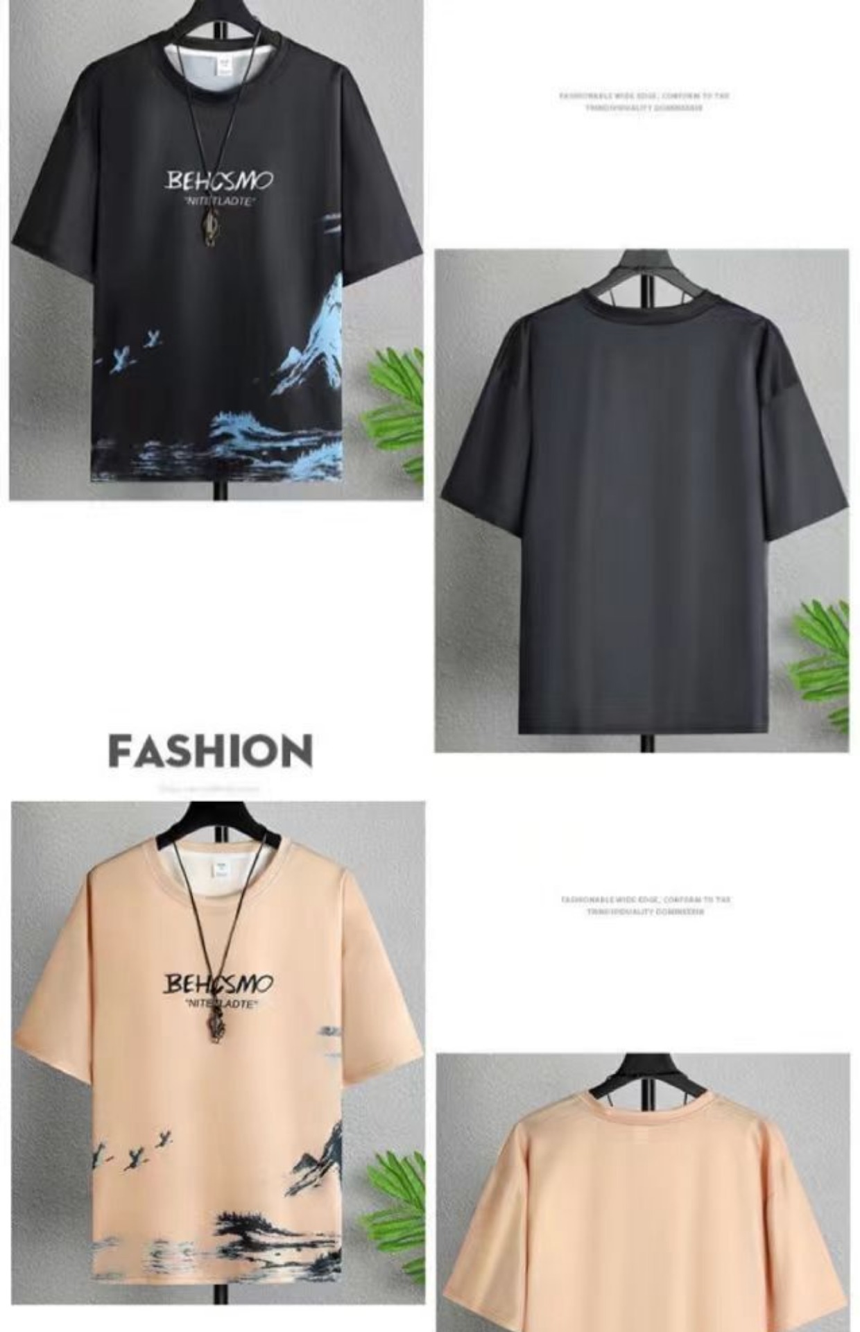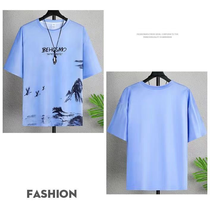 冰丝短袖t恤男士夏季2023新款潮流宽松半袖体恤上衣服男
