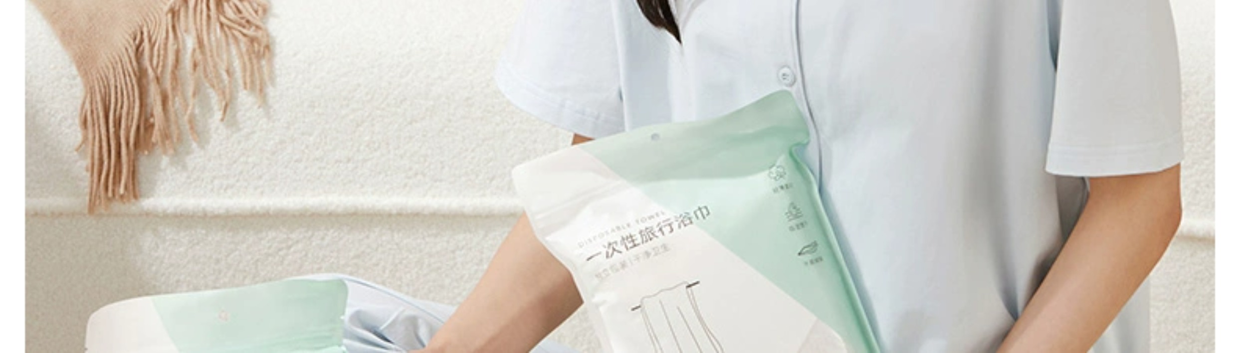 MINISO名创优品一次性浴巾毛巾床单被罩马桶垫内裤纯棉压缩四件套