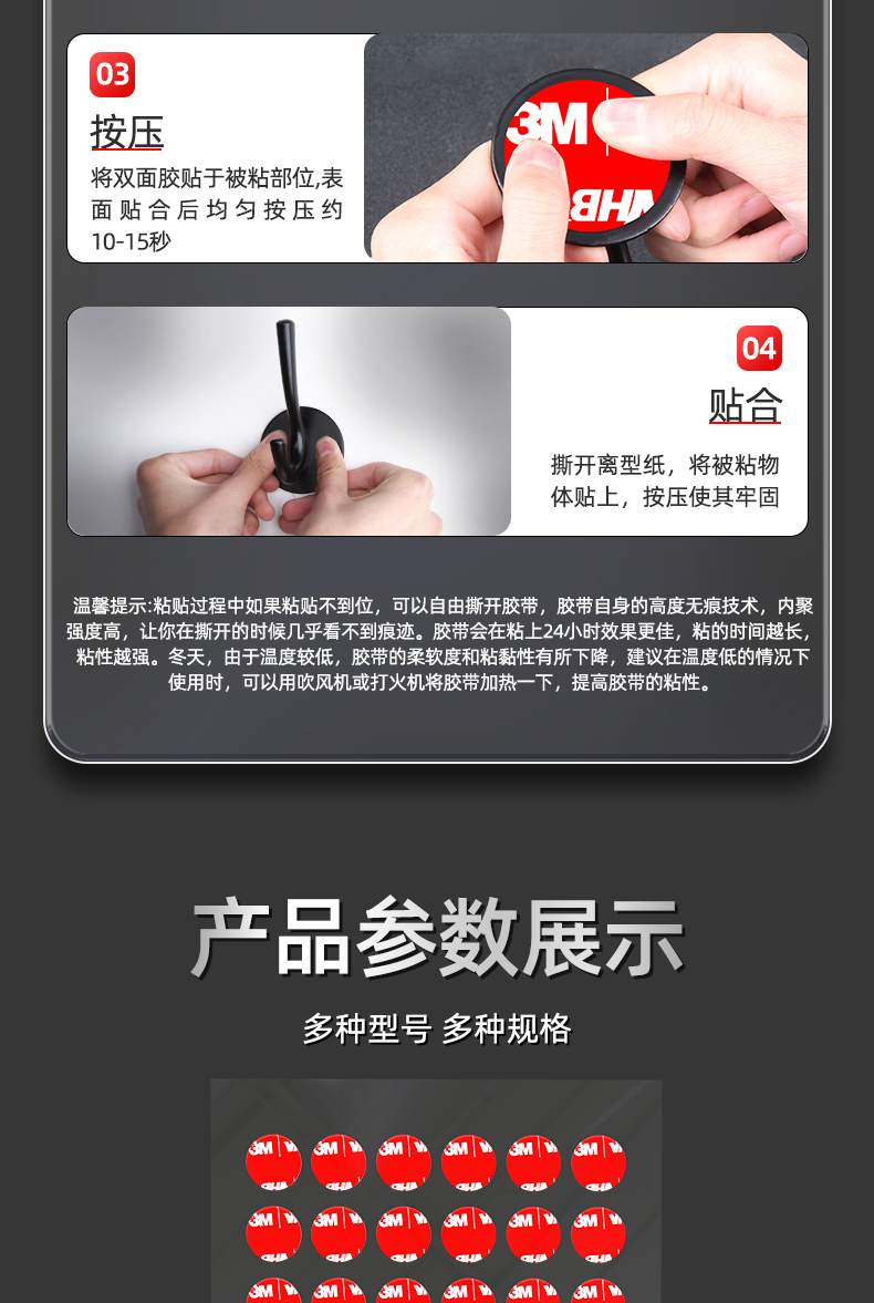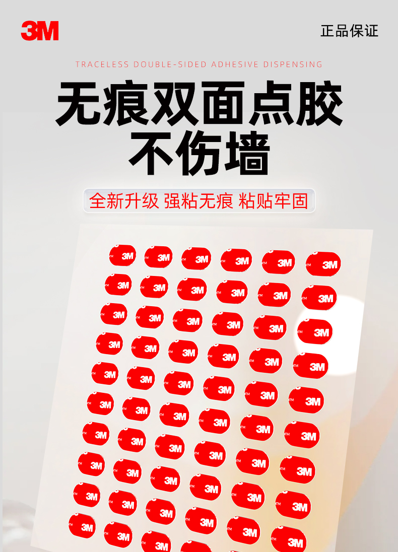3m强力双面胶高粘度点点胶贴强力透明婚房布置胶无痕对联墙面固定贴纳米圆形圆点胶防水不伤墙贴墙专用粘贴片