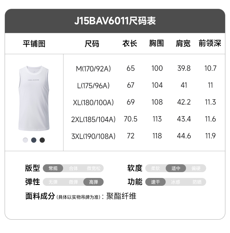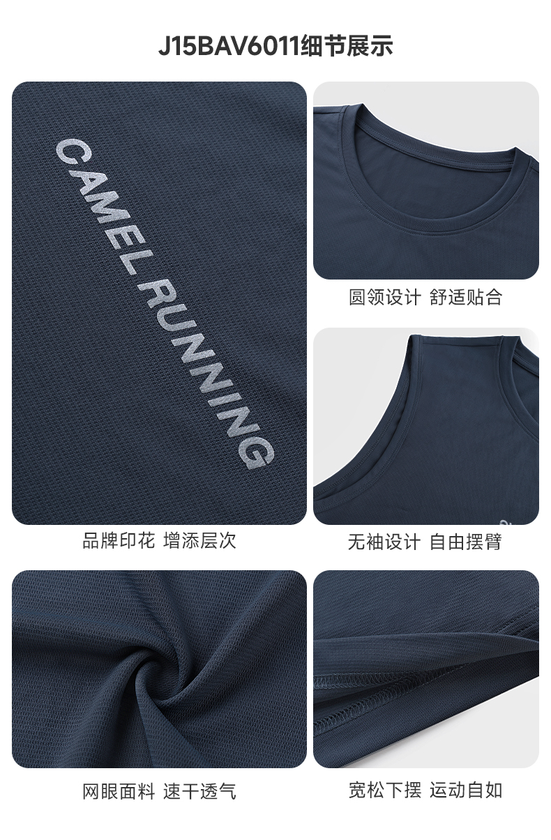 骆驼运动速干背心男2025夏季健身T恤透气吸汗无袖跑步篮球训练服