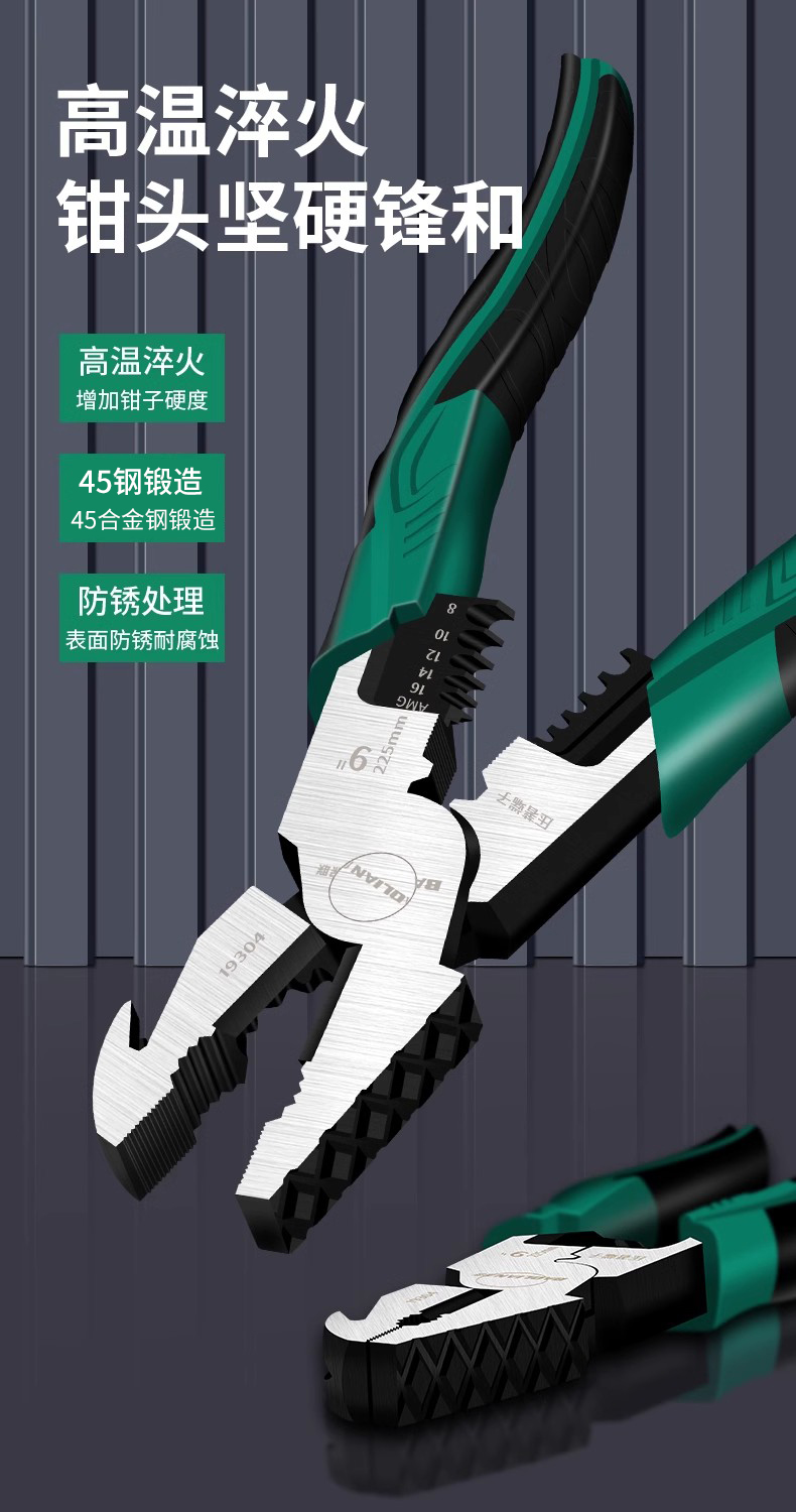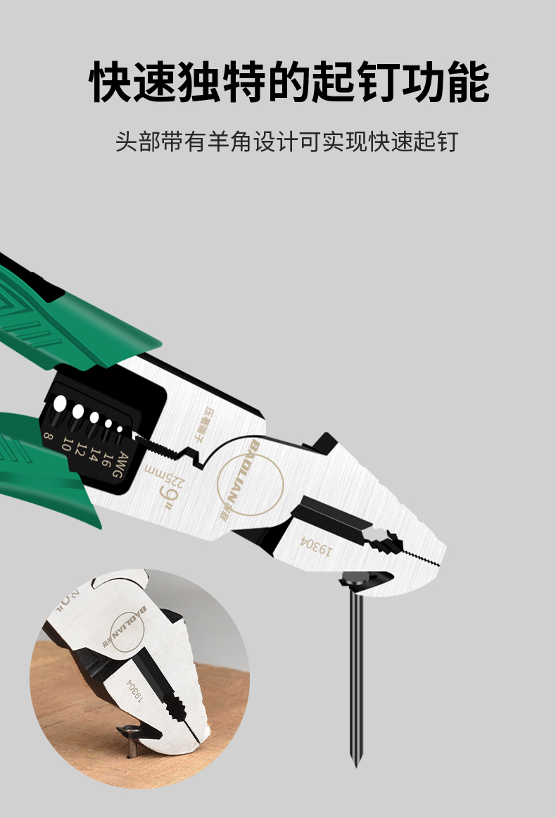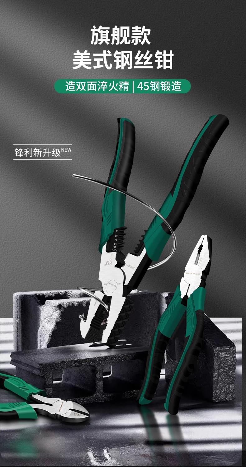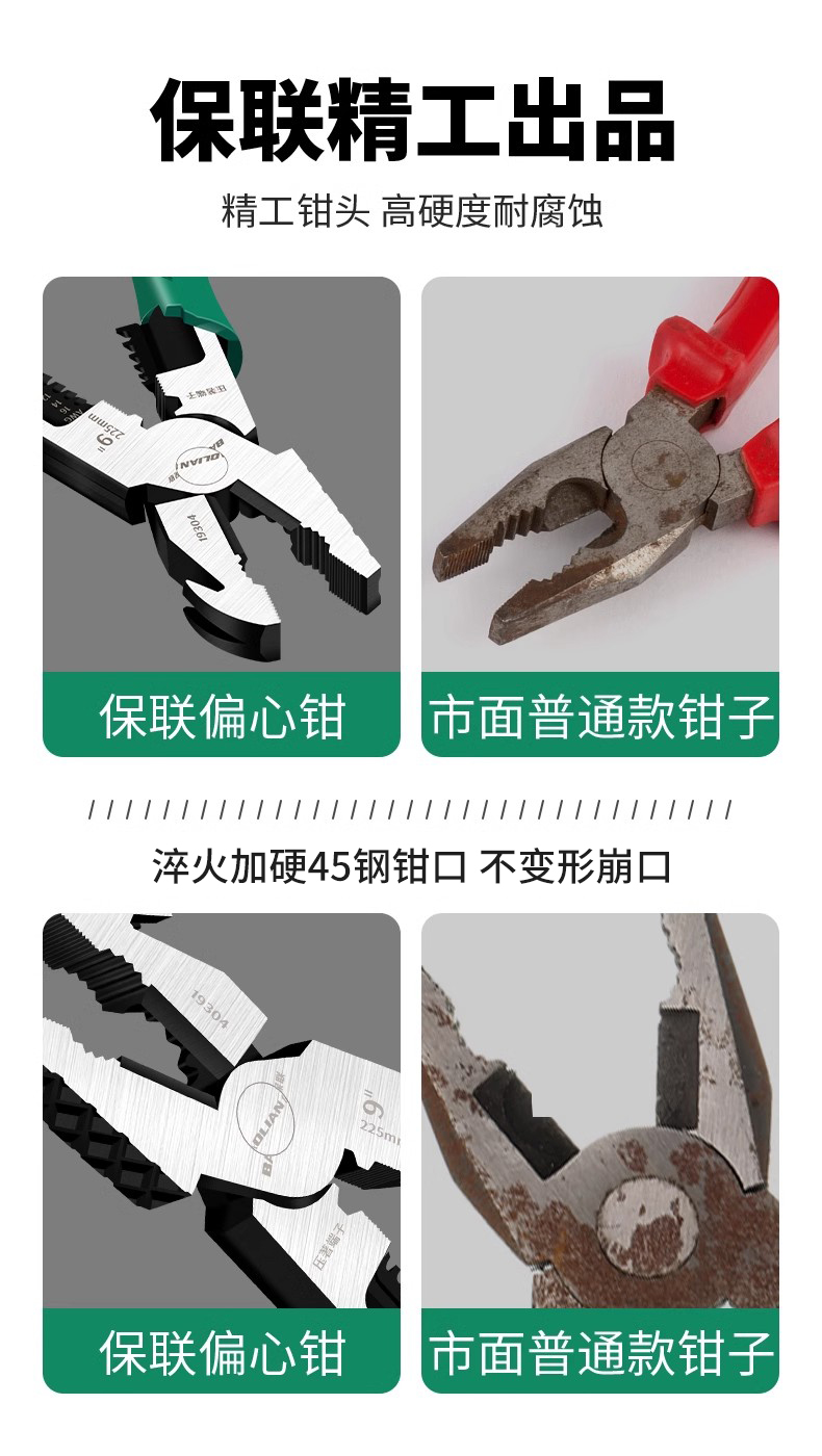 保联老虎钳钢丝钳多功能家用老虎工具大全五金工具斜口尖嘴手钳子