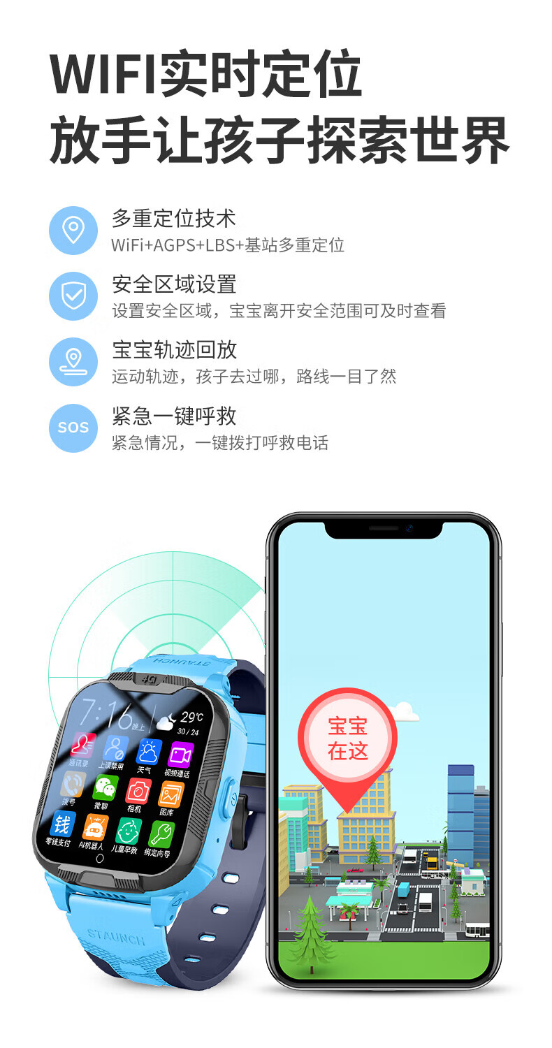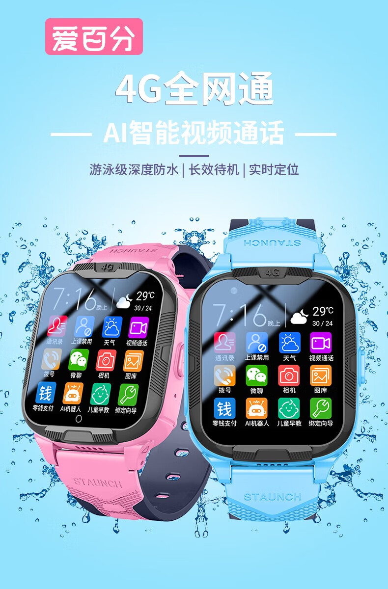 爱百分小学生儿童电话手表男生女孩4G增强定位学生专用迷你智能手表游泳防水视频触屏拍照儿童款全网通手表