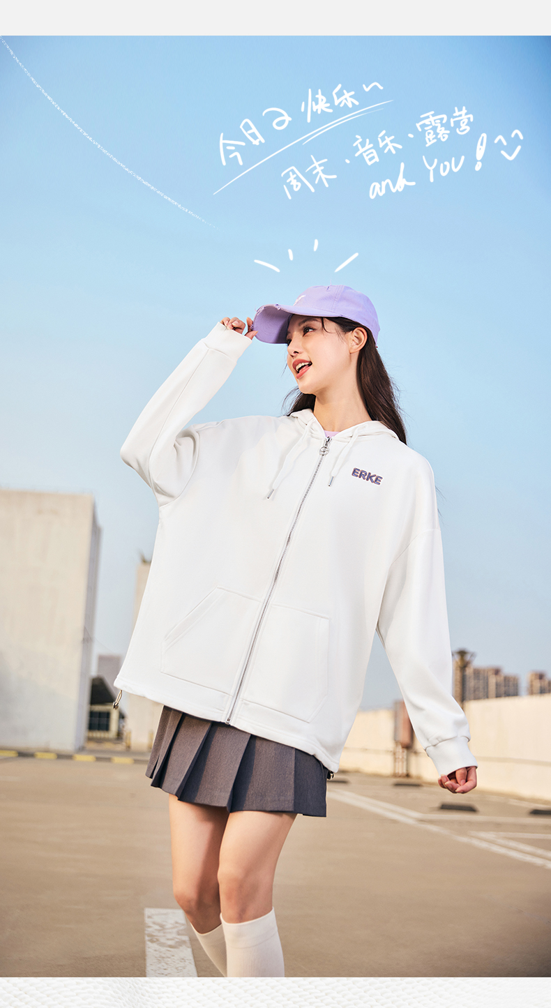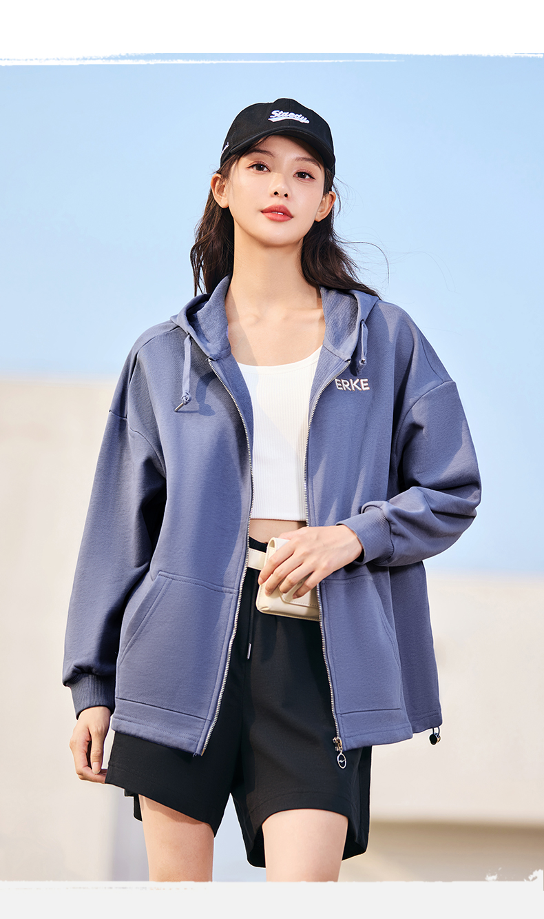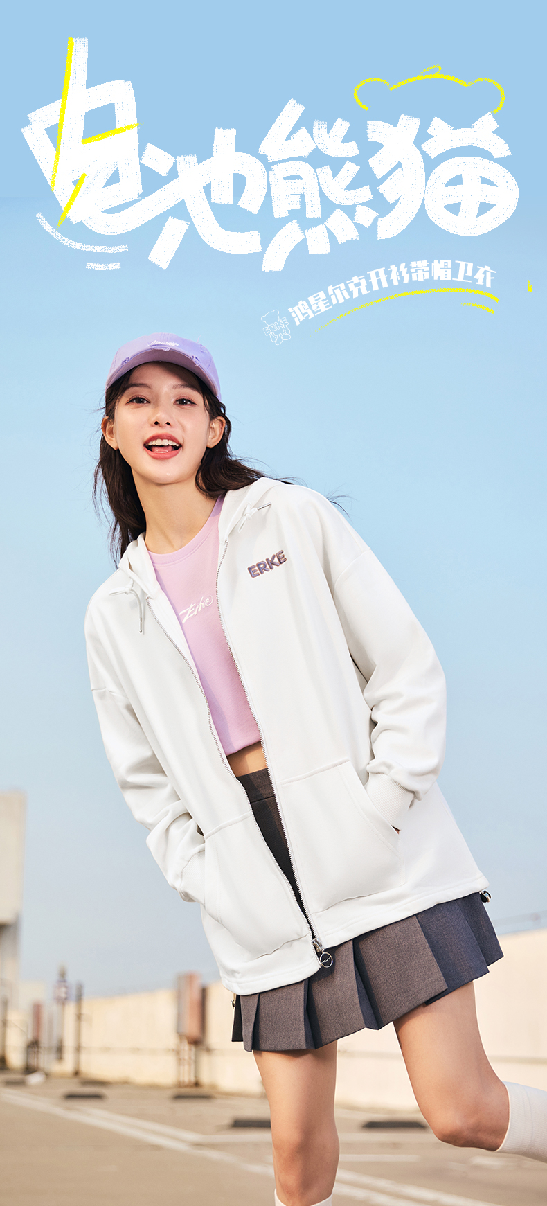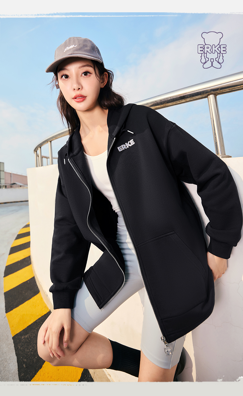 电池熊猫丨鸿星尔克外套女春秋女士宽松运动连帽开衫卫衣女装帽衫
