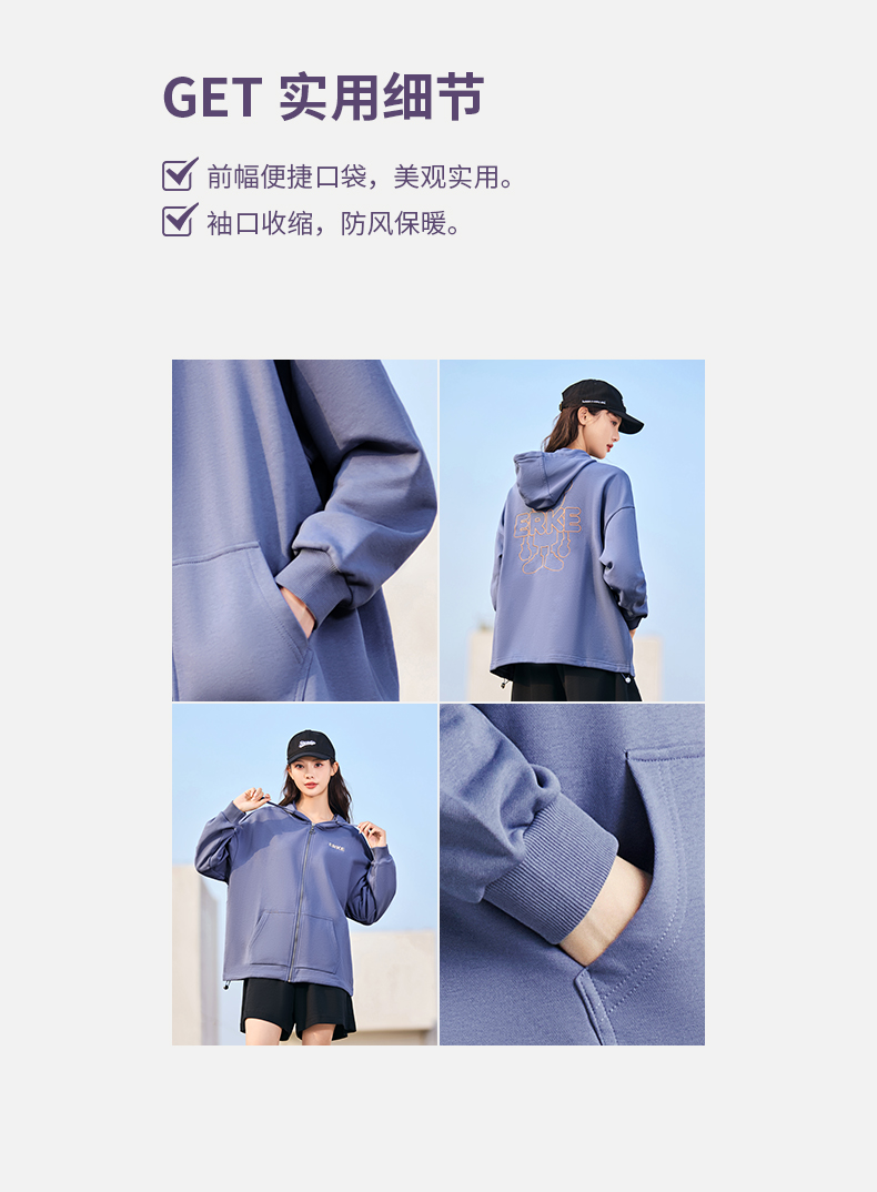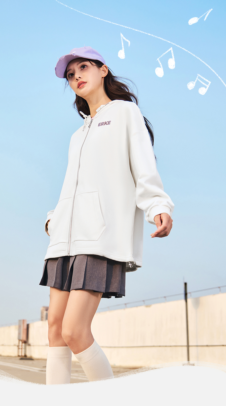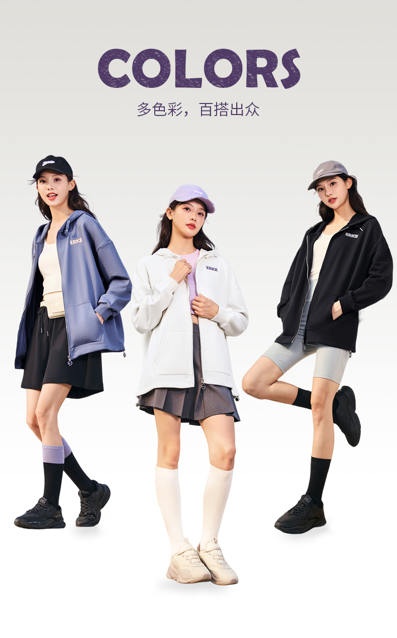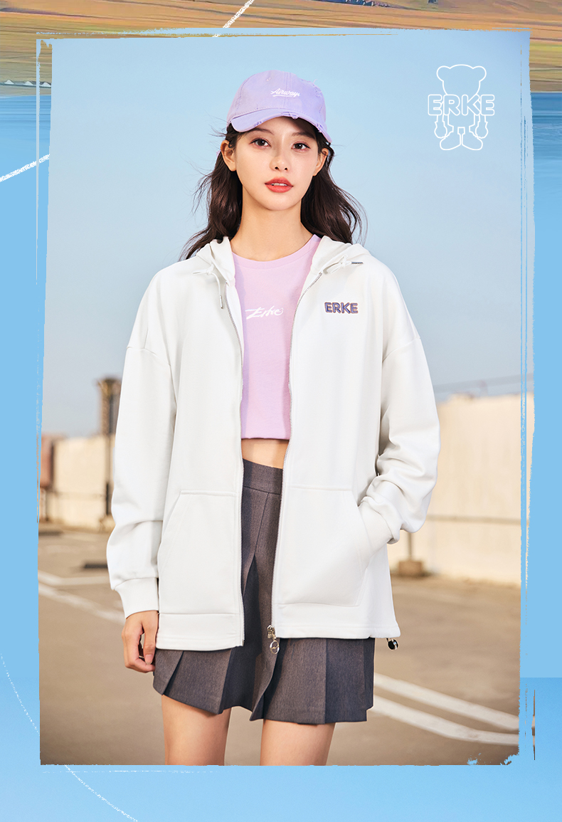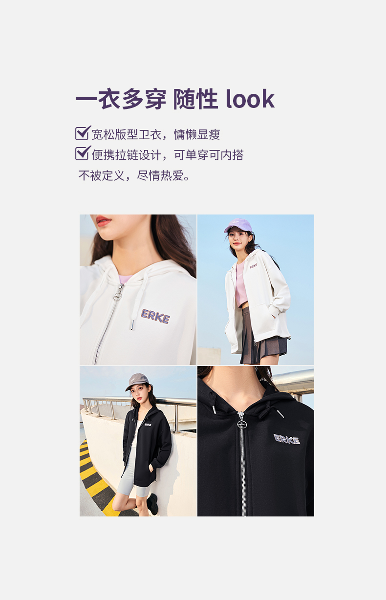 电池熊猫丨鸿星尔克外套女春秋女士宽松运动连帽开衫卫衣女装帽衫