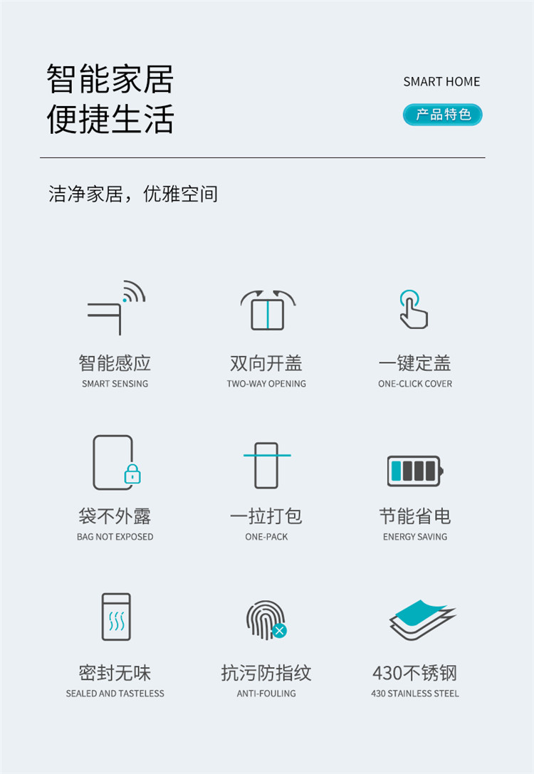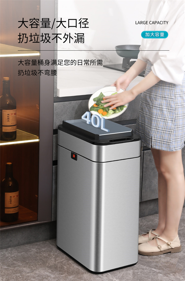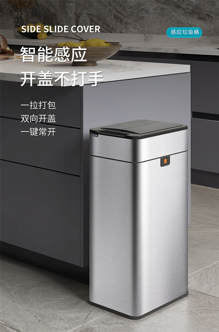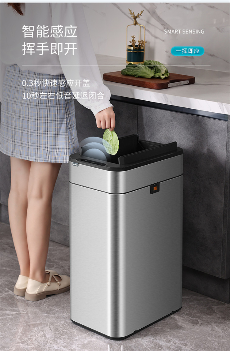 双开门智能感应垃圾桶 不锈钢家用一拉打包卫生间厨房客厅办公室