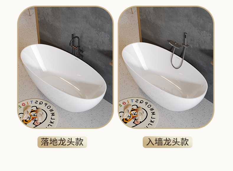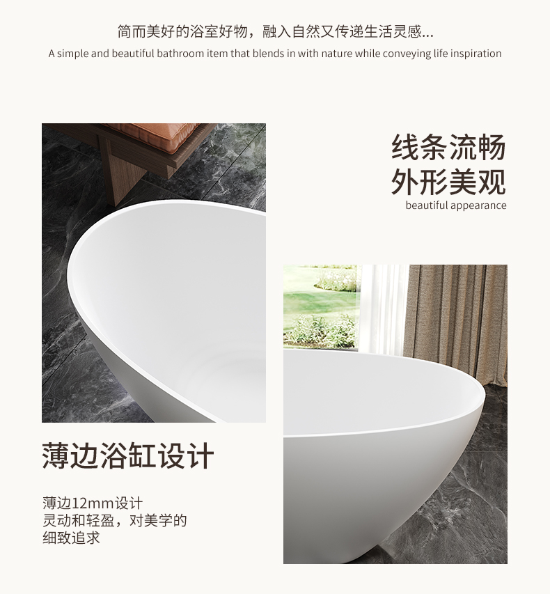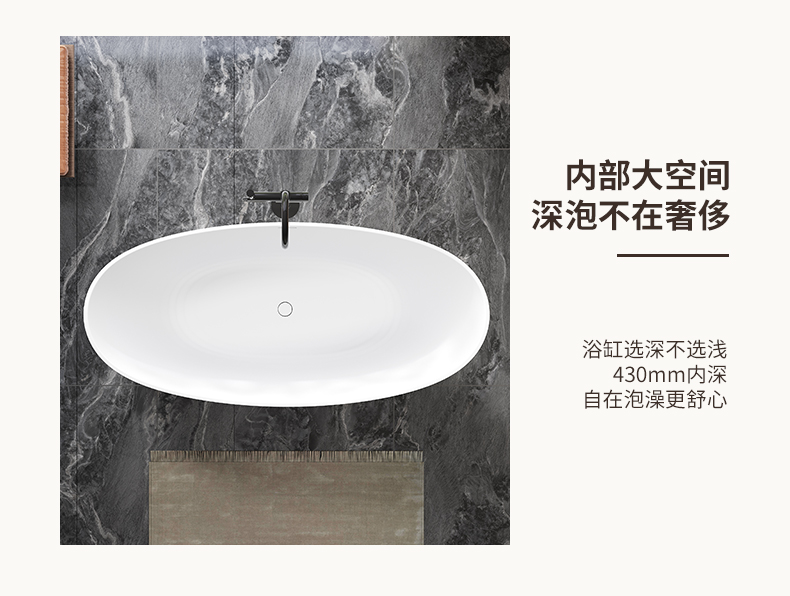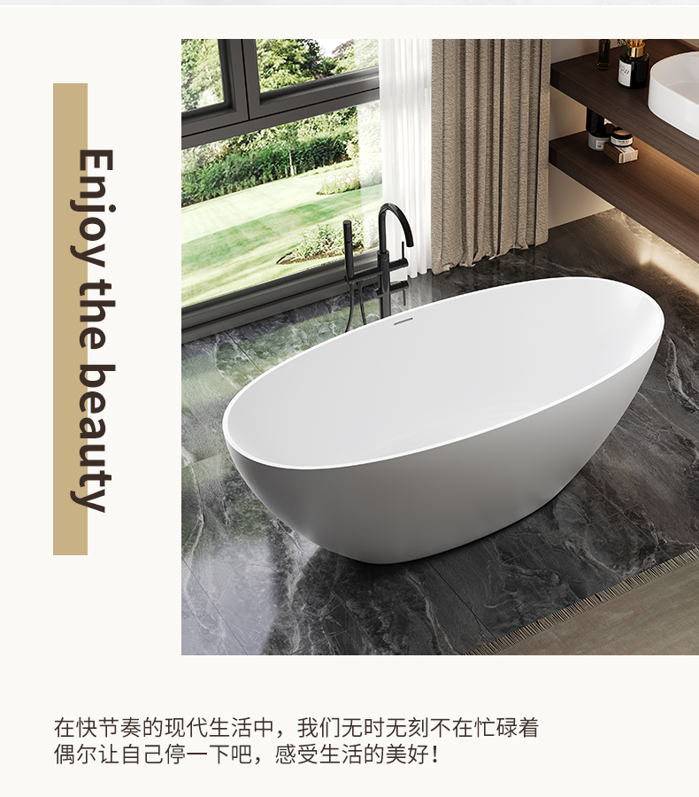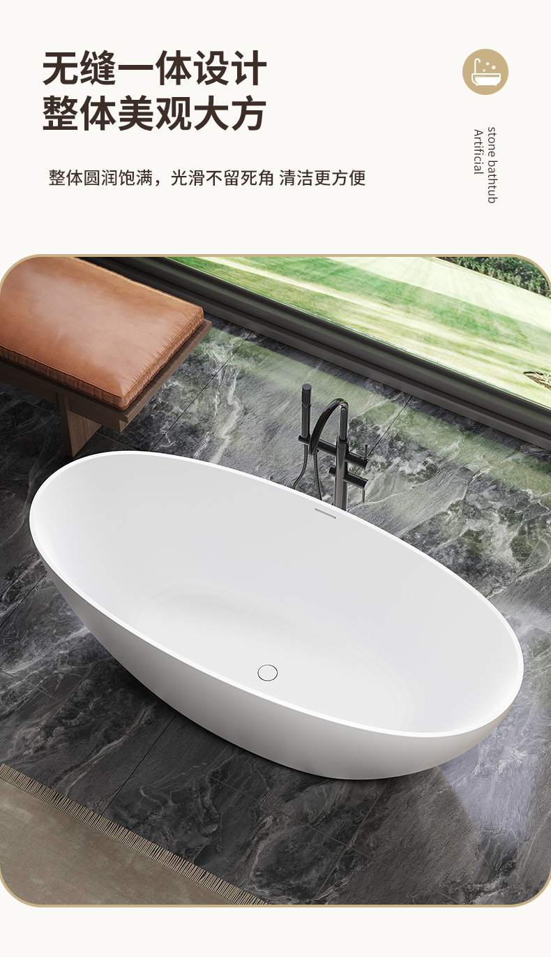 PMMA高分子人造石浴缸家用成人免安装独立式小户型浴缸民宿酒店