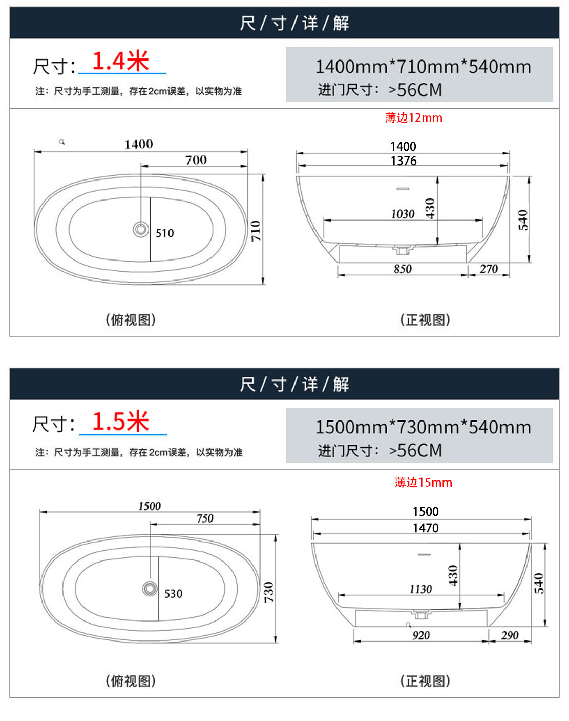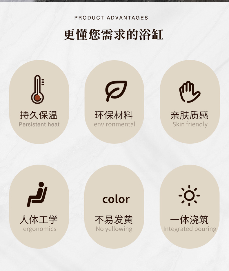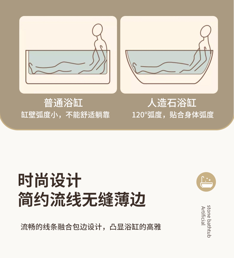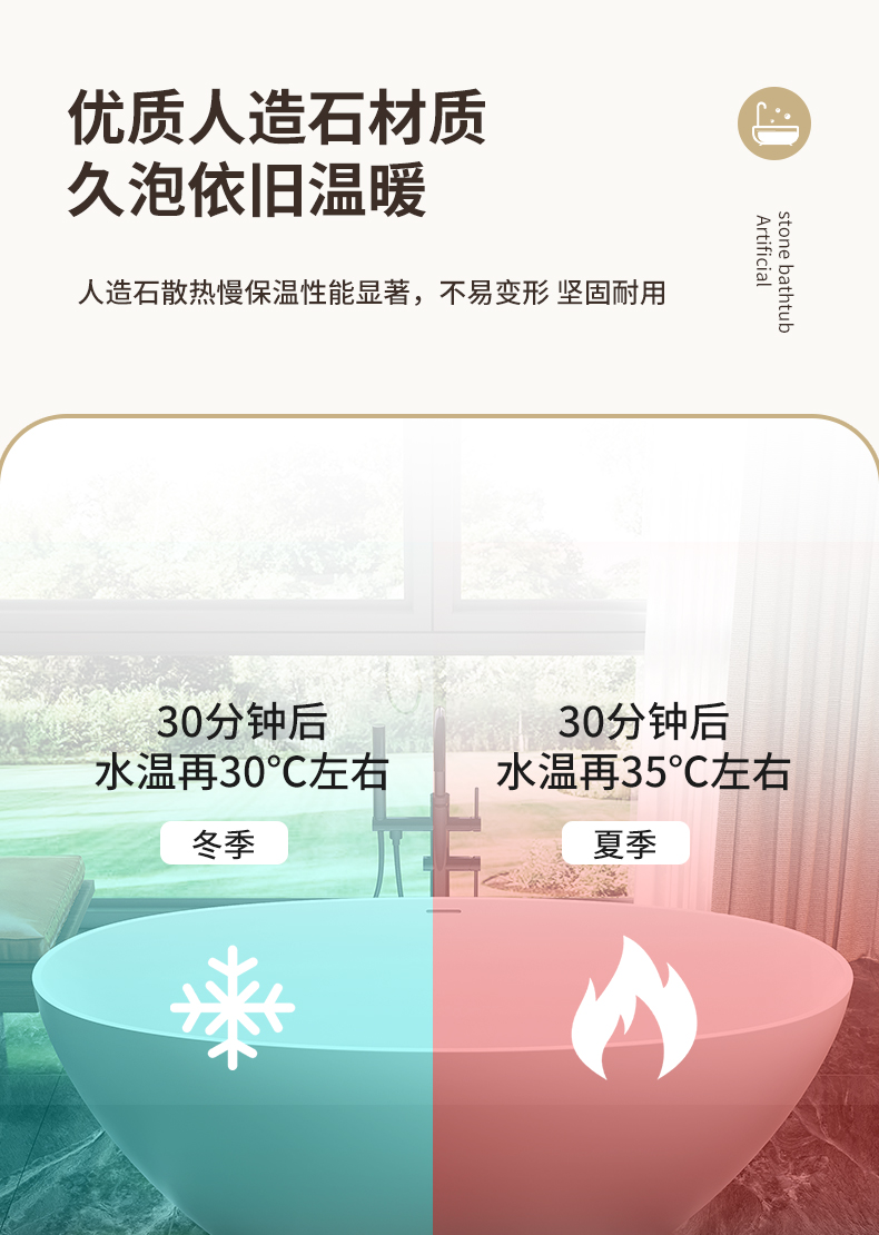 PMMA高分子人造石浴缸家用成人免安装独立式小户型浴缸民宿酒店