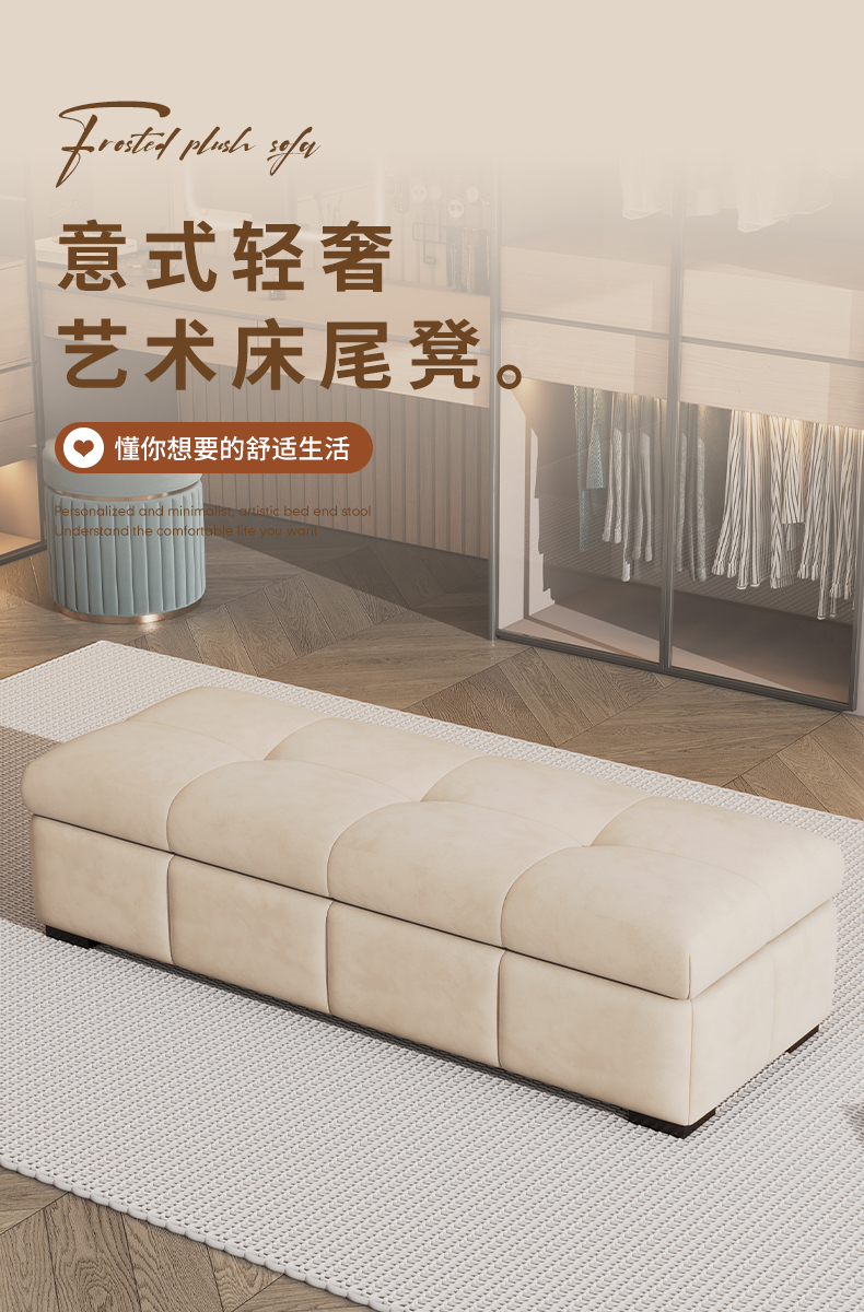 意式轻奢储物沙发凳衣帽间换衣凳极简收纳换鞋凳卧室床尾凳床边榻