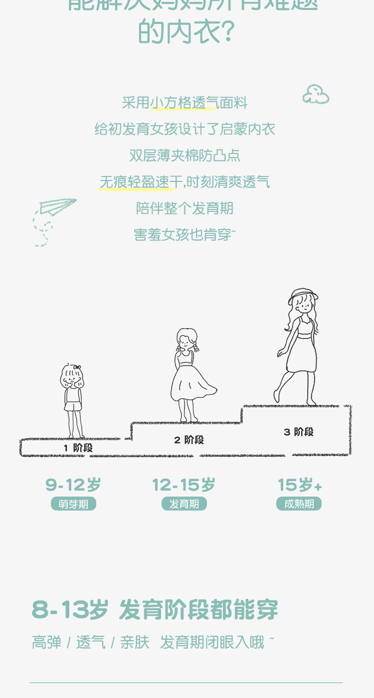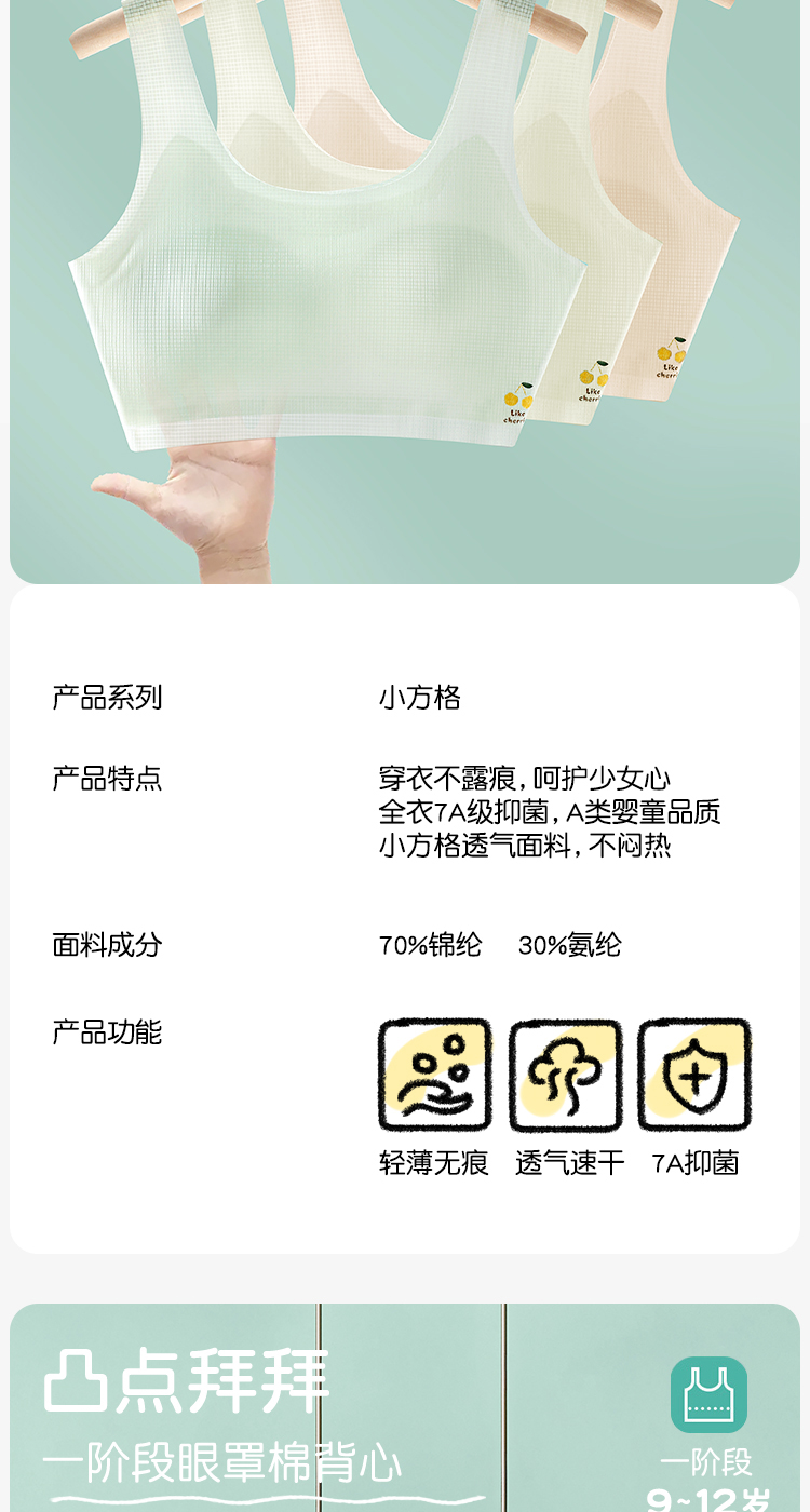 青少年少女文胸透气无痕背心小学初中生女大童发育期学生内衣