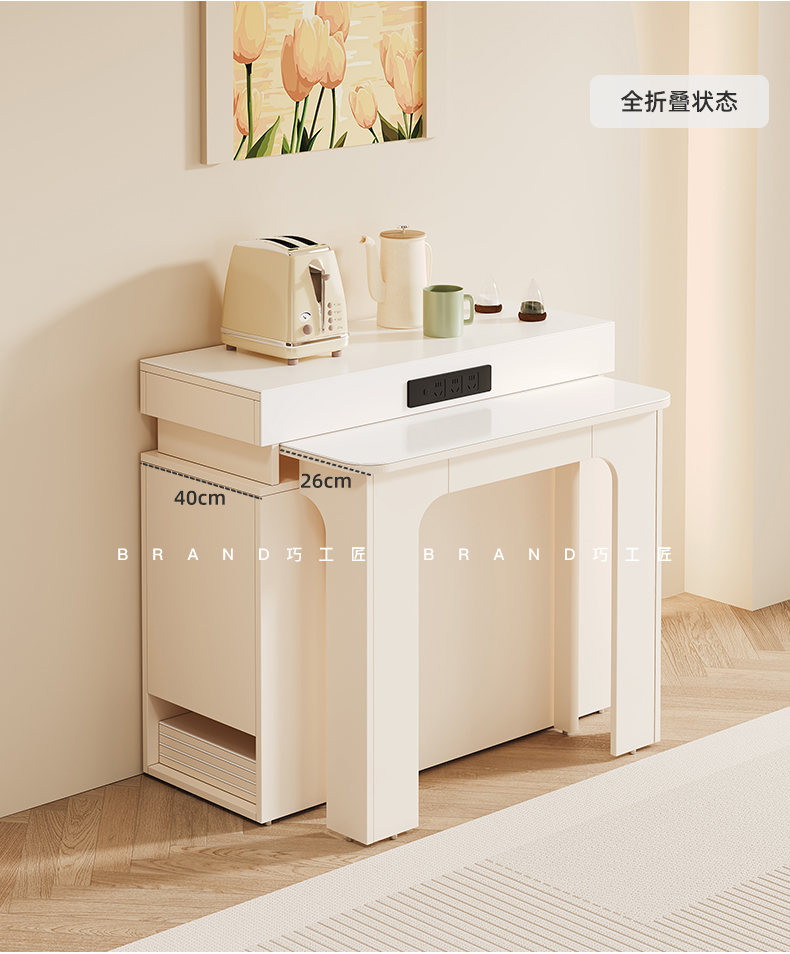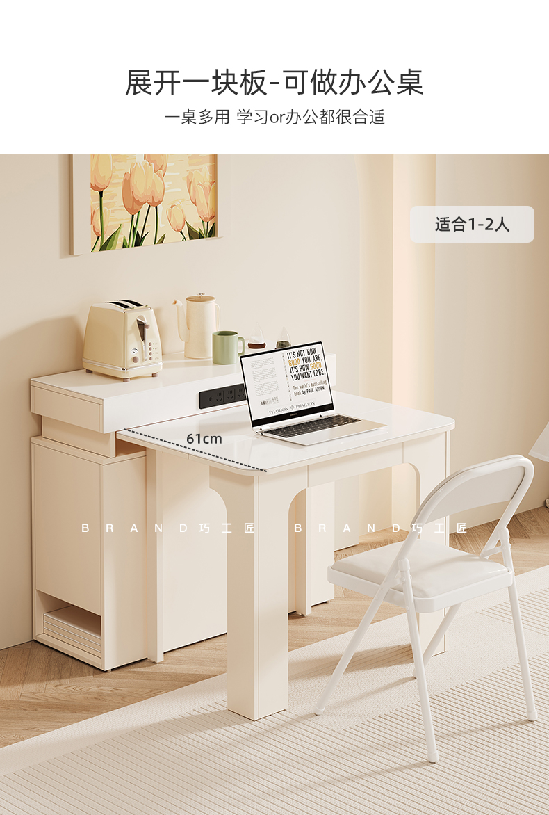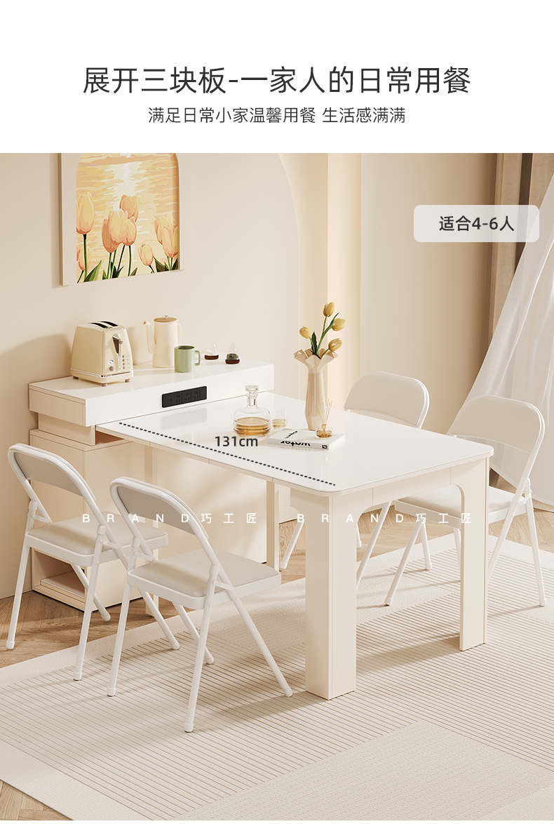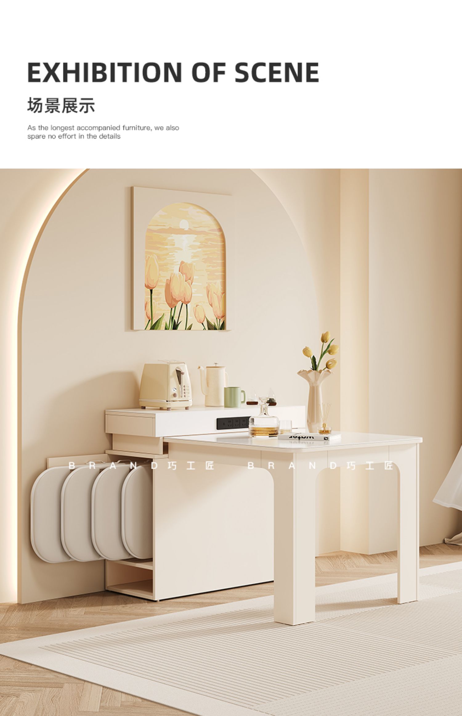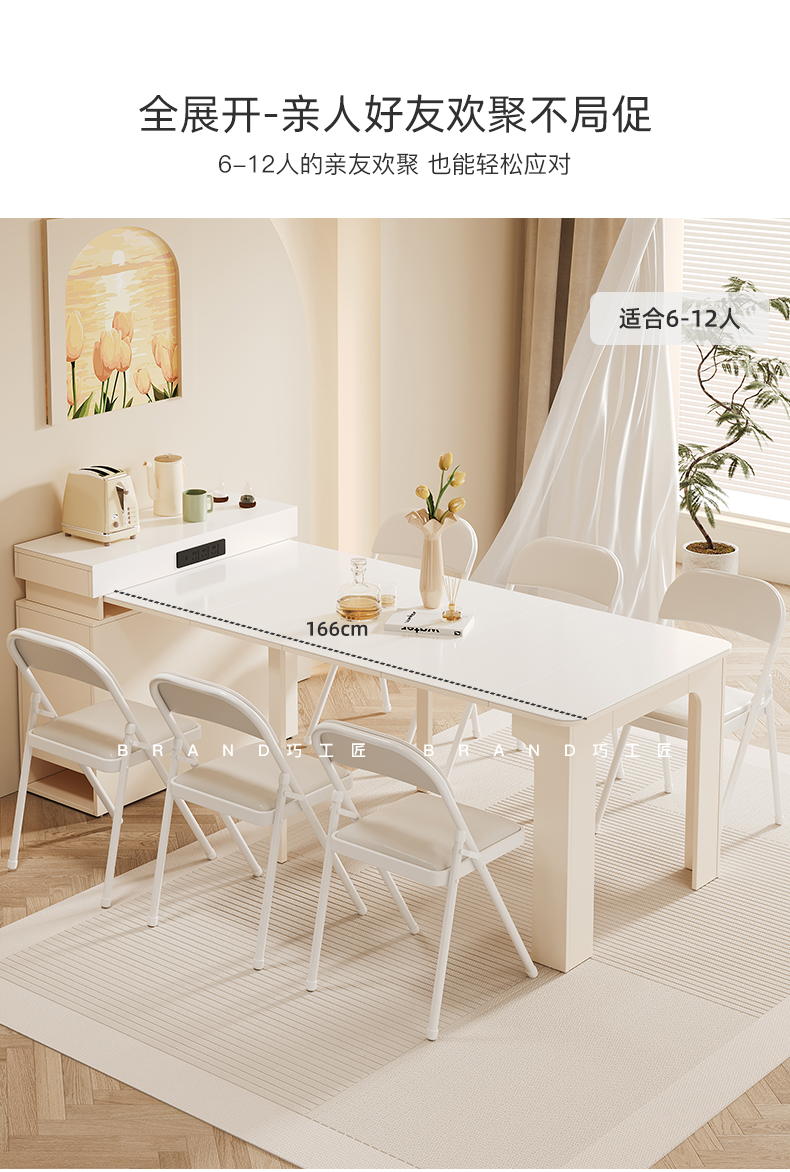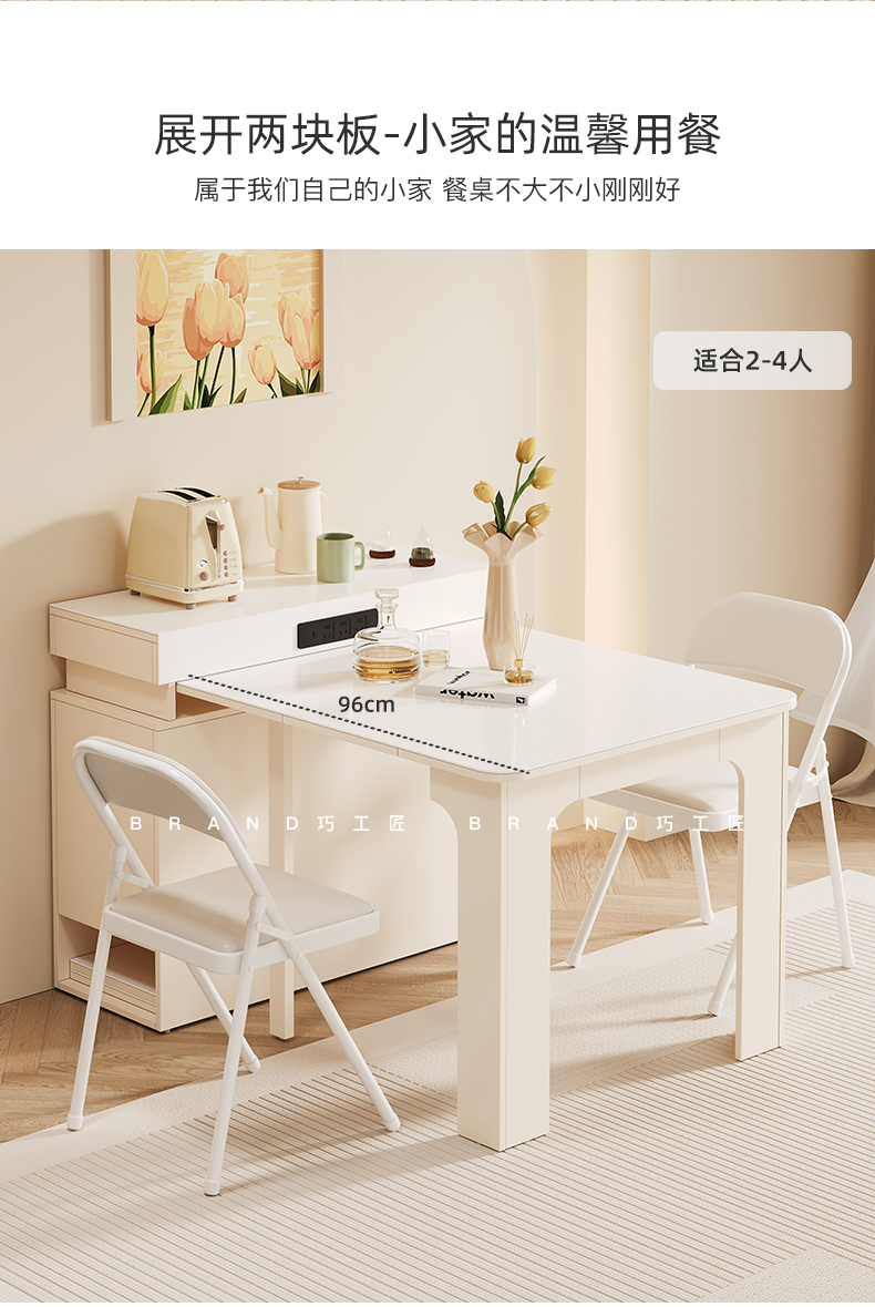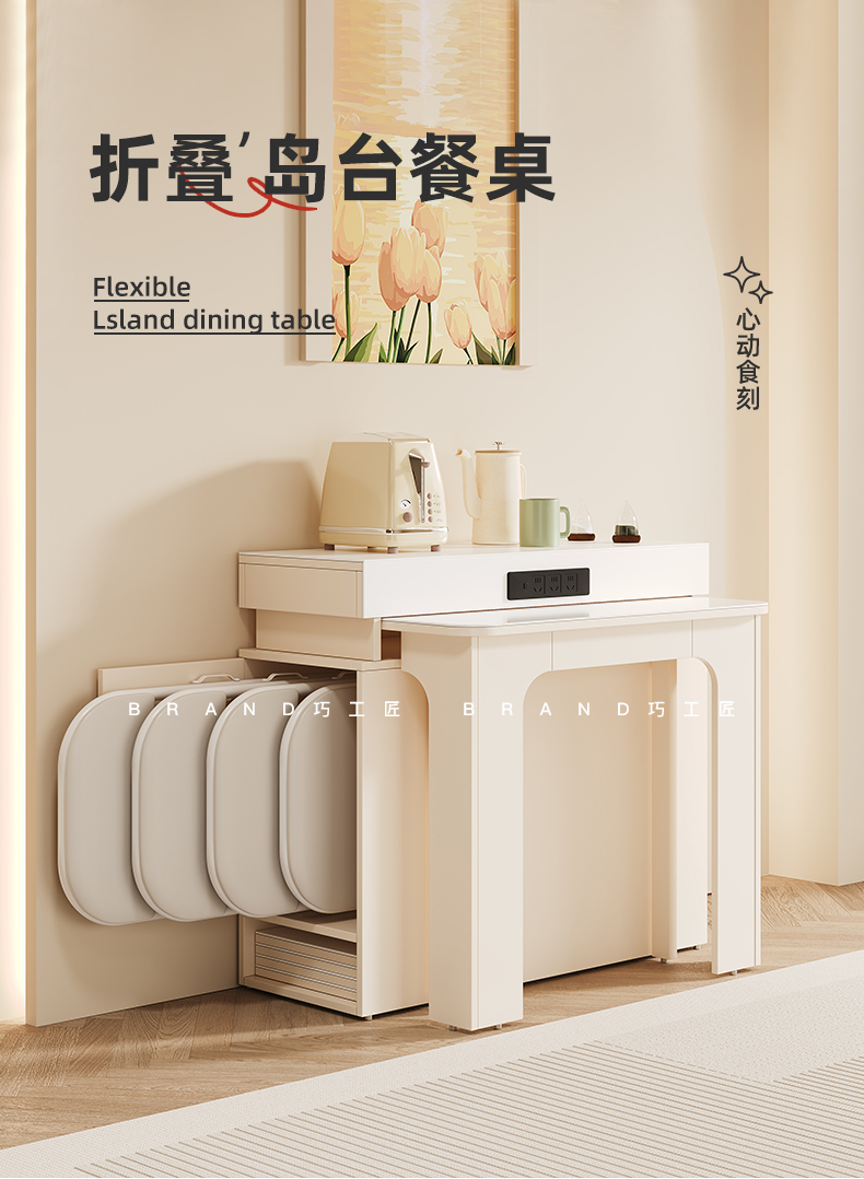 奶油风岛台岩板餐桌家用2025新款现代简约小户型客厅伸缩折叠饭桌