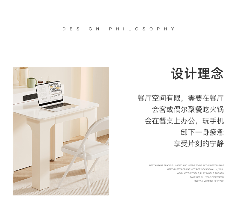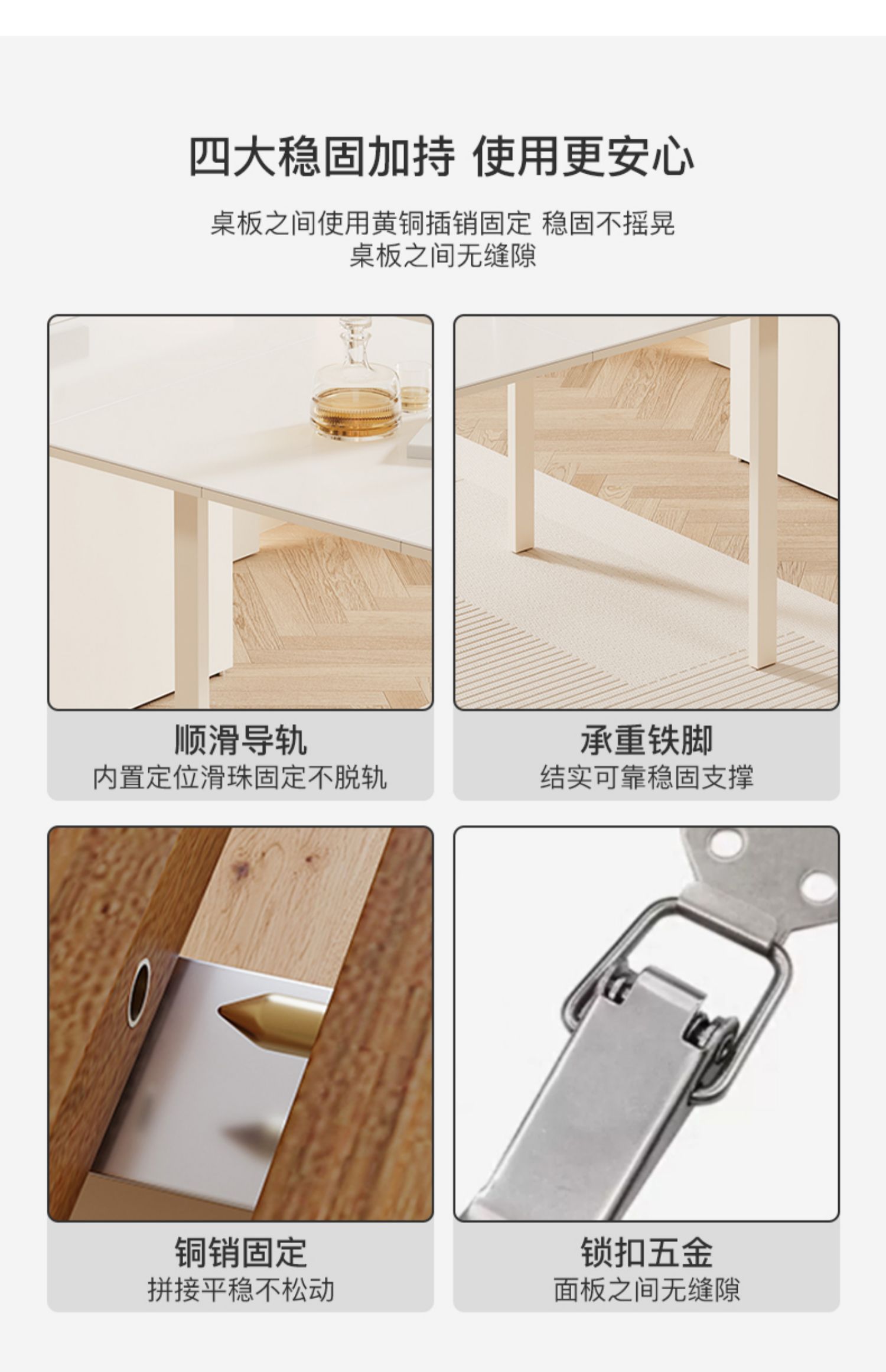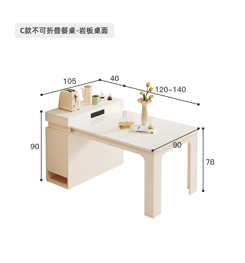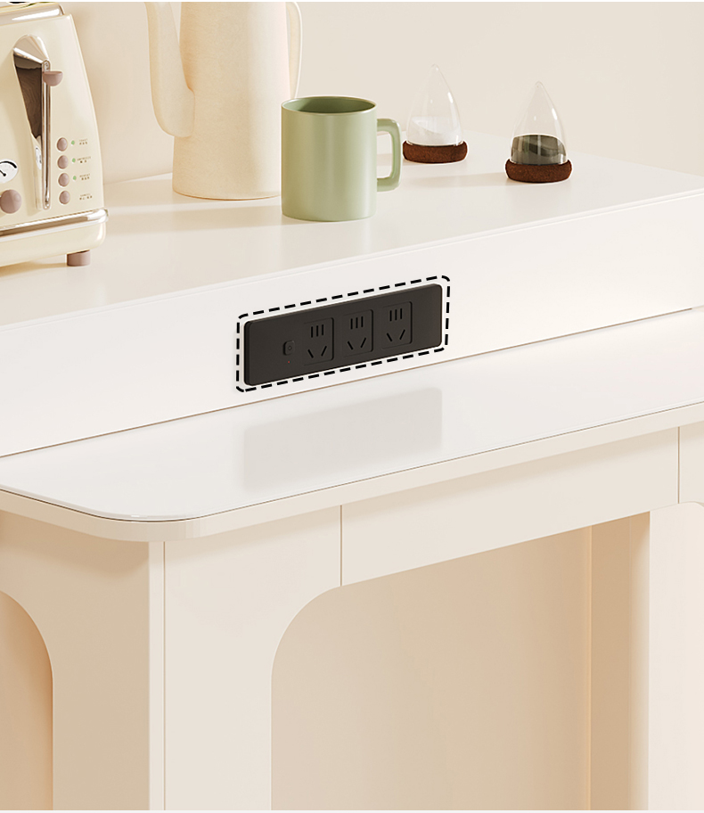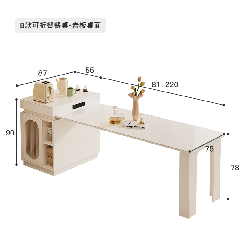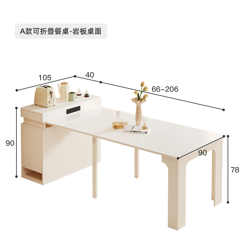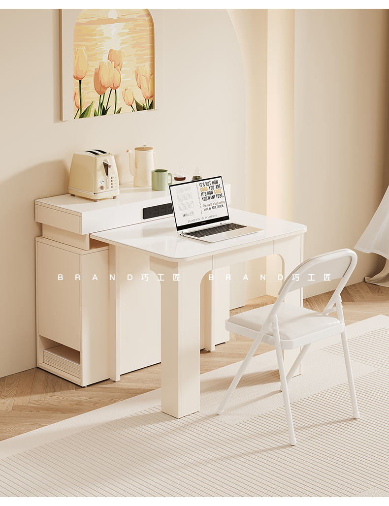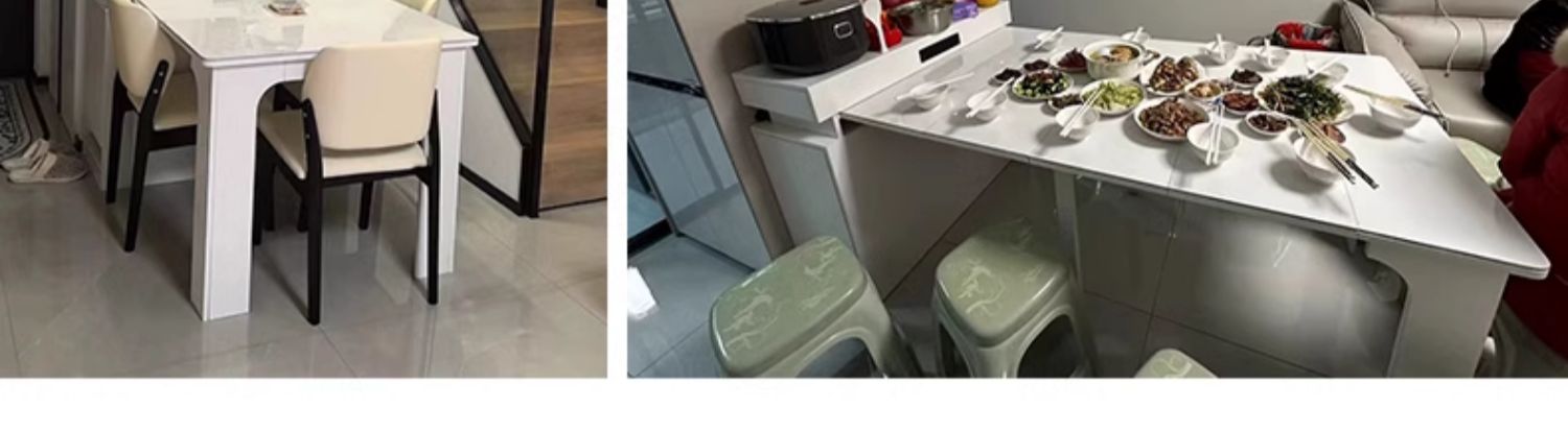 奶油风岛台岩板餐桌家用2025新款现代简约小户型客厅伸缩折叠饭桌