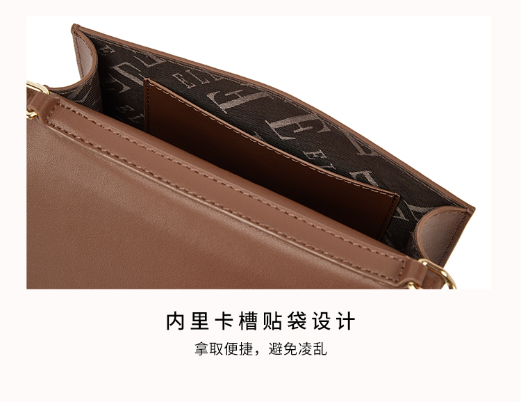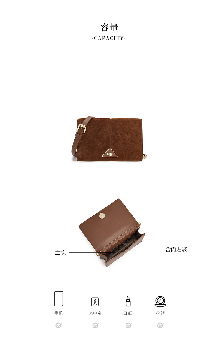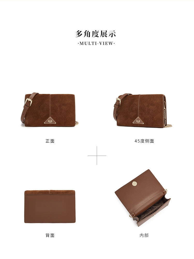 ELLE女包2025新款包包秋冬反绒牛皮翻盖链条包小方包信封斜挎包