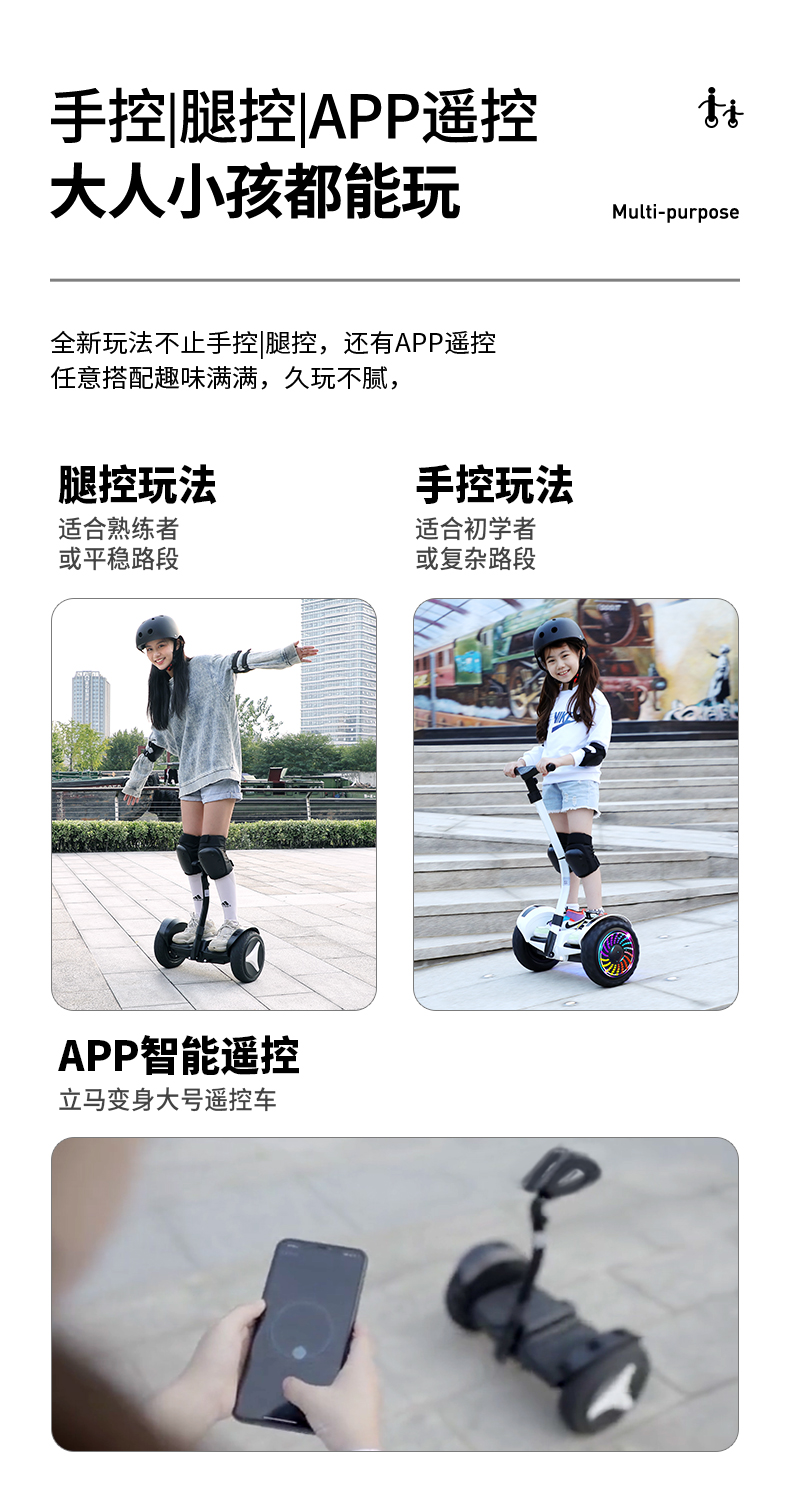 领奥电动儿童智能自动平衡车6一10到15岁以上2024新款成人平行车